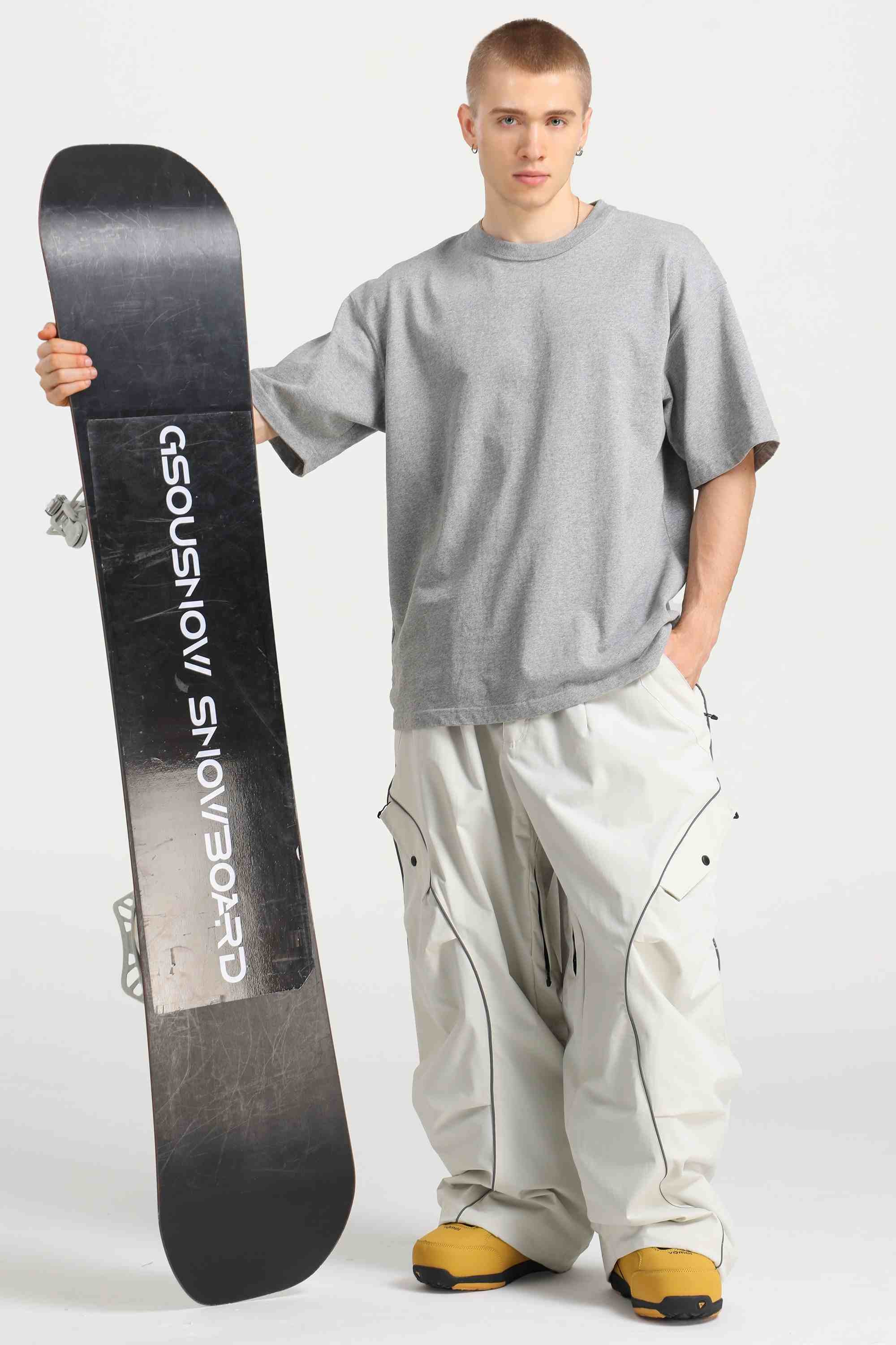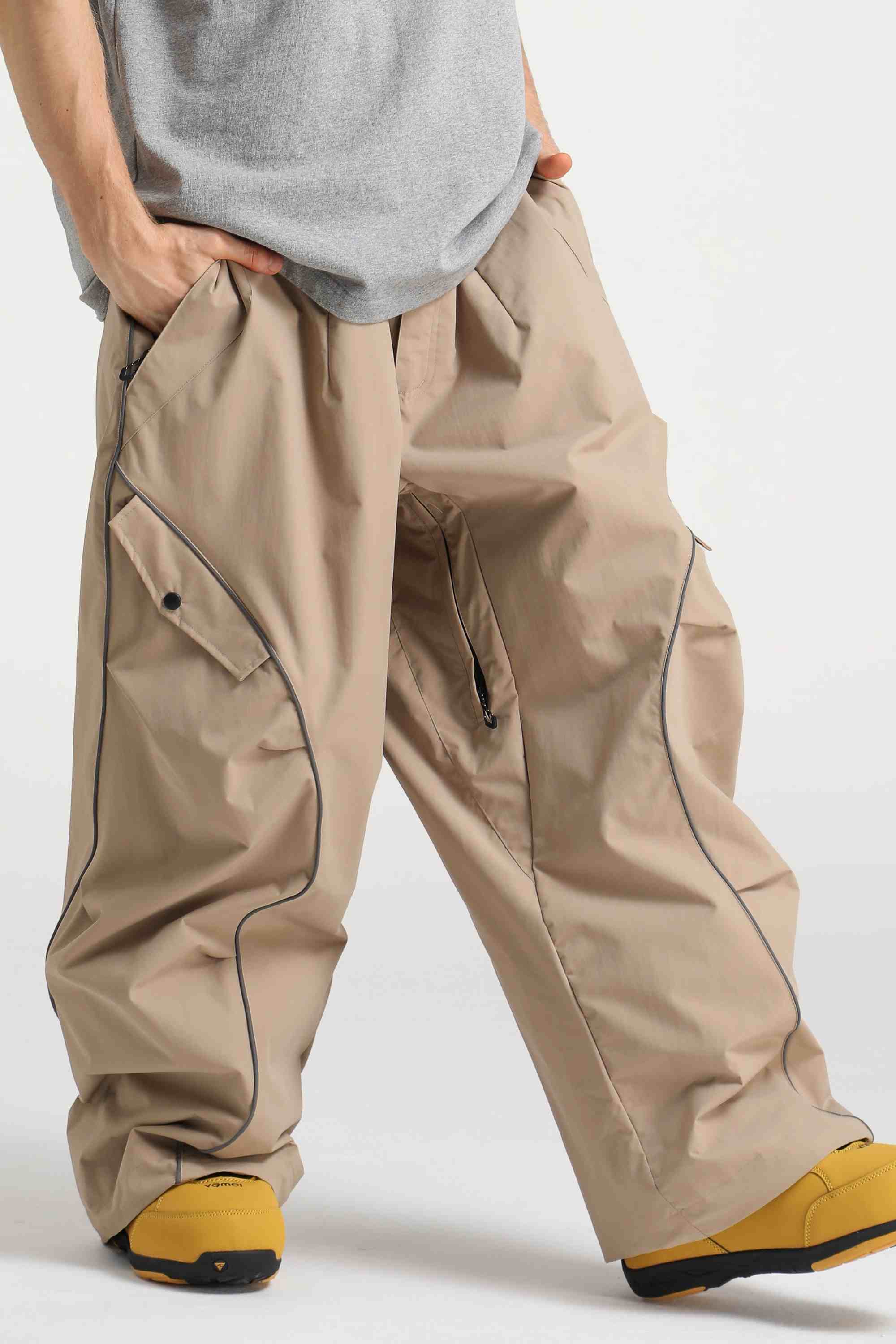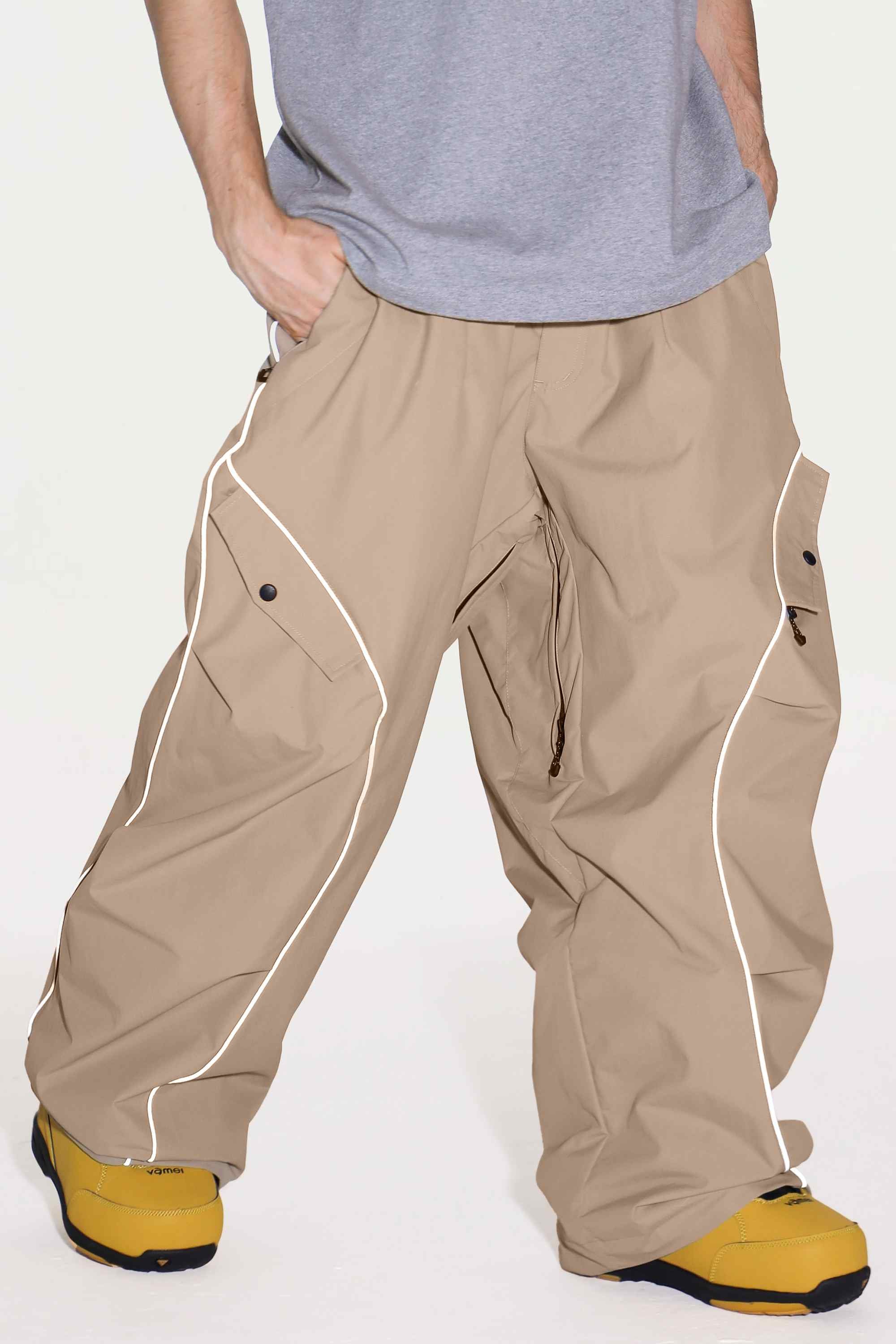 Men’s Khaki Durable Reflective Stripe Baggy Snow Pants