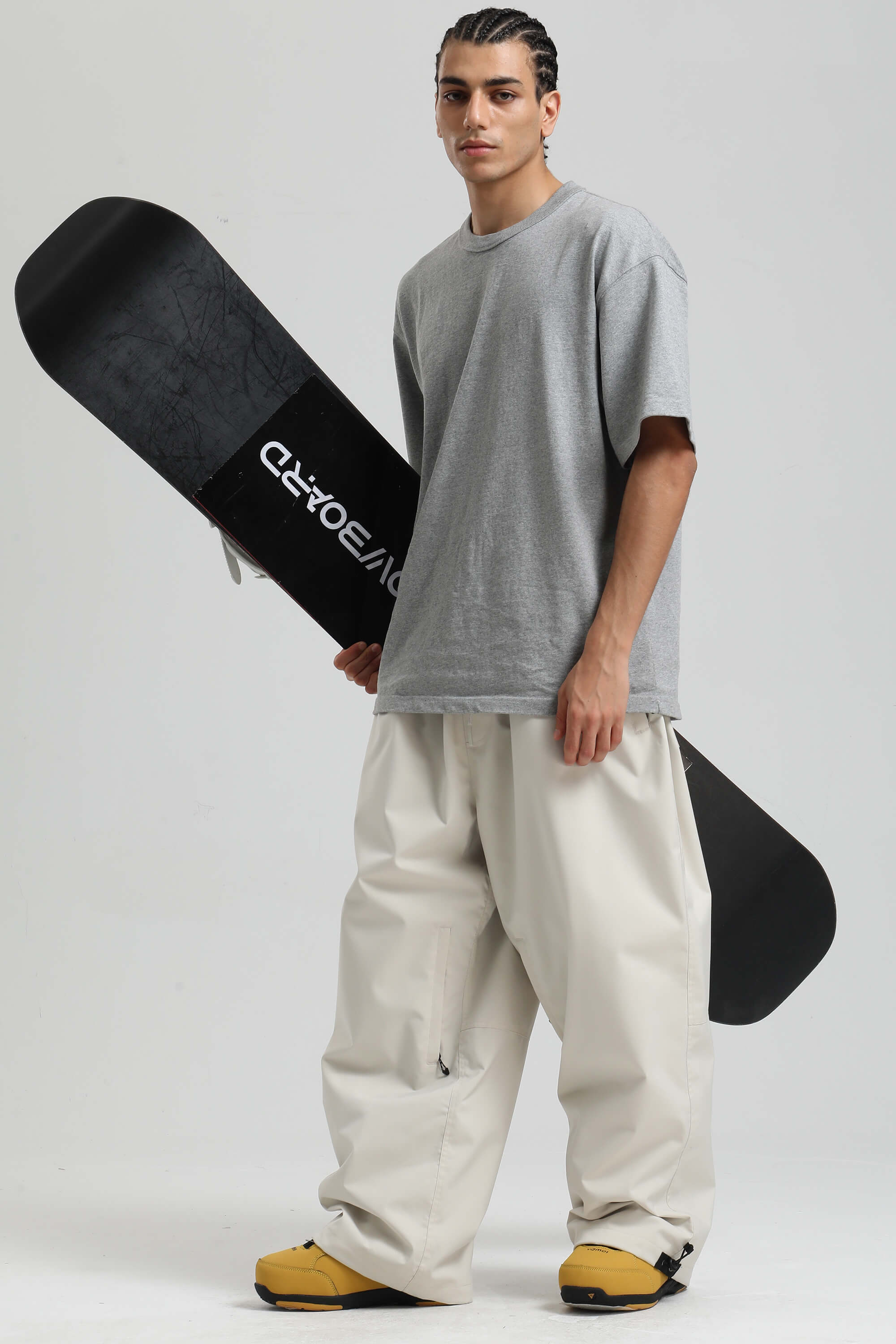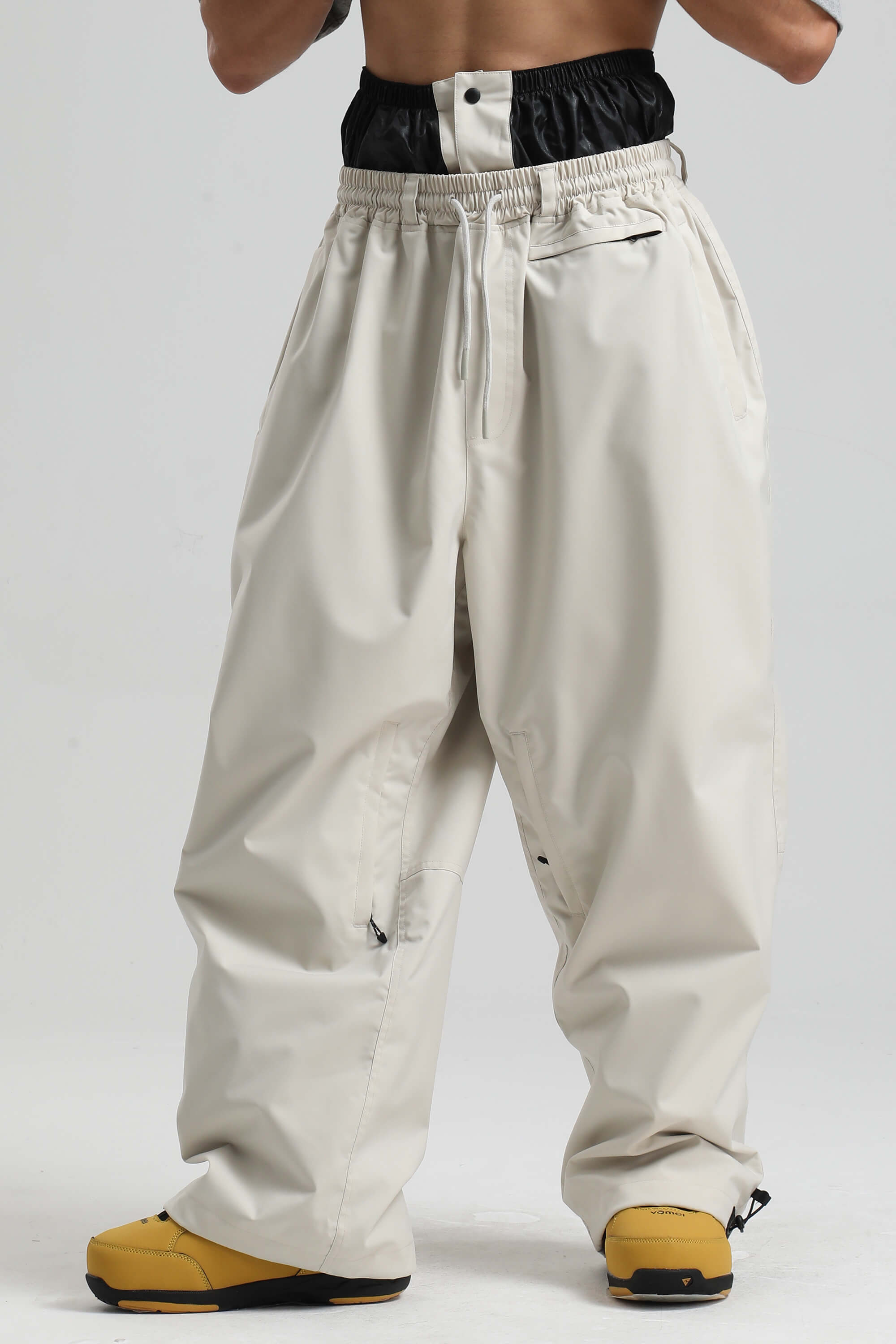 Men's Beige Baggy Soft Brushed Retro Snow Pants