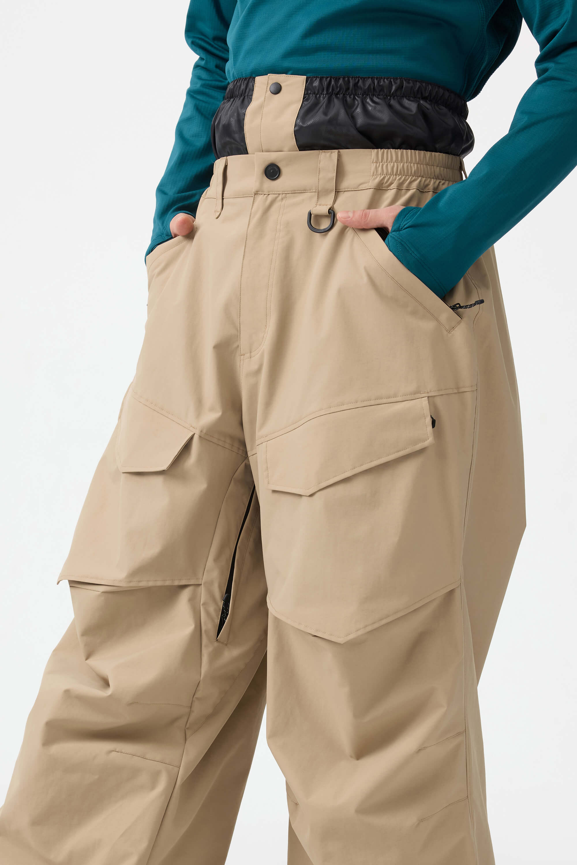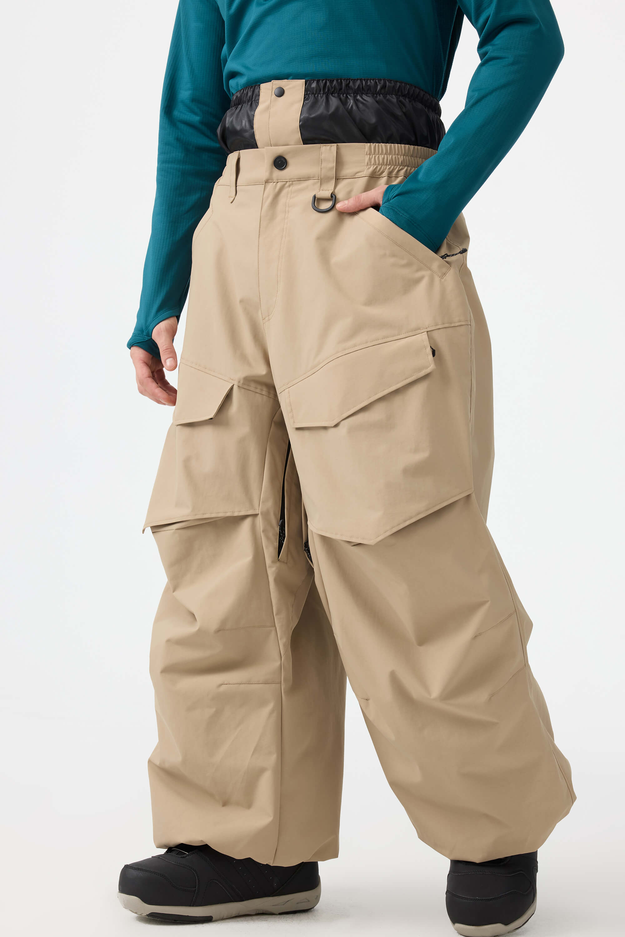 Men's Dark Brown Baggy Utility Wear-resistant Snow Pants