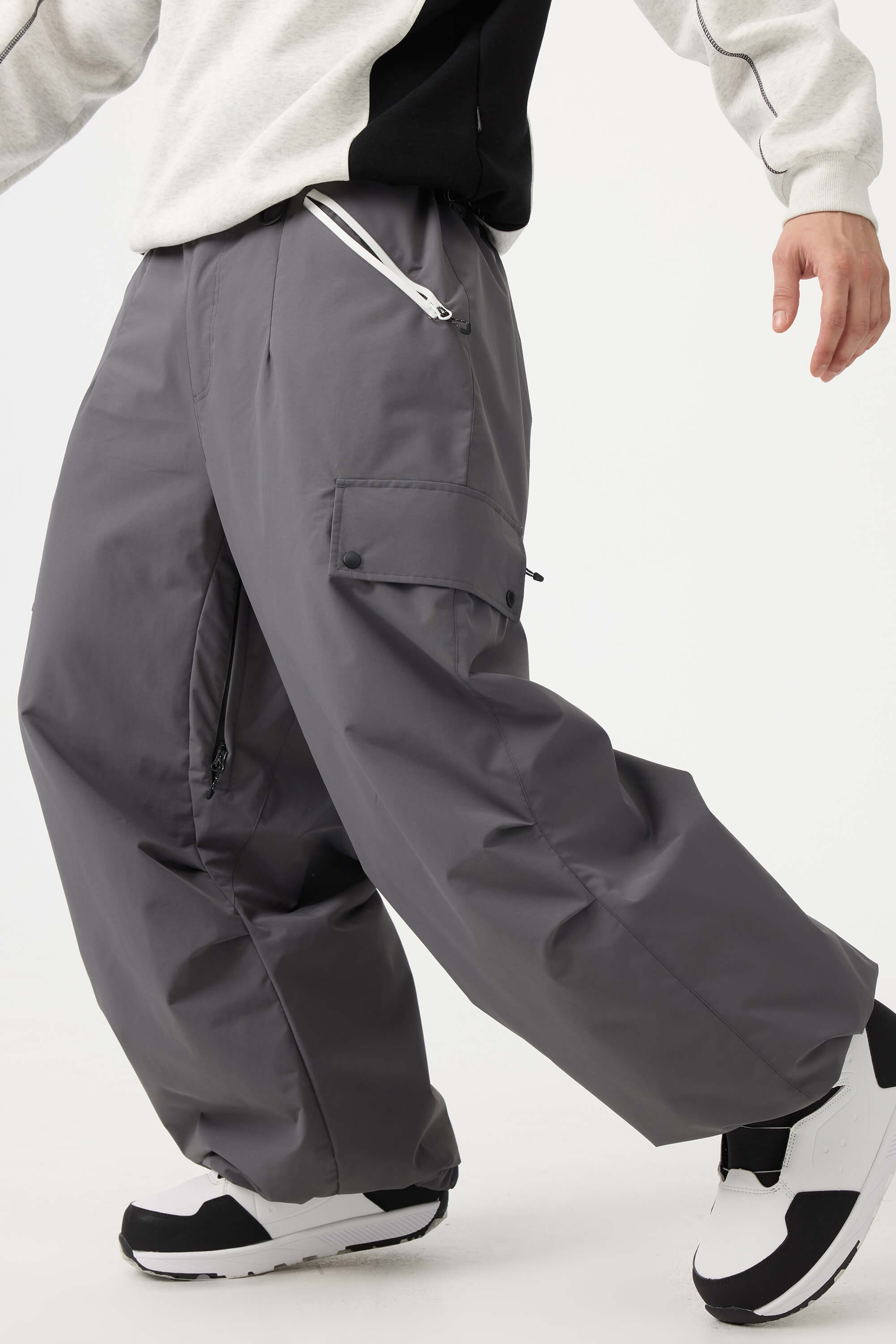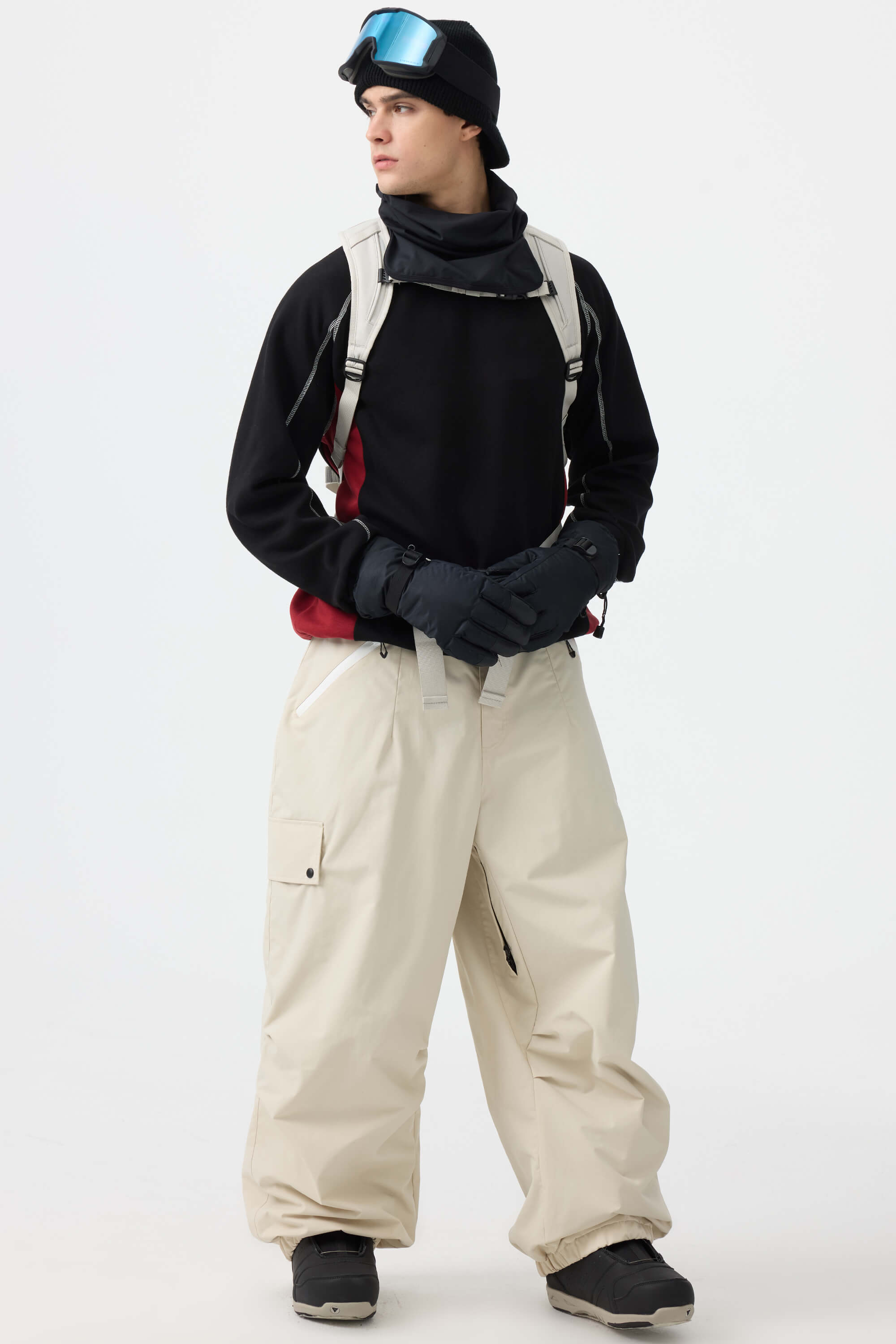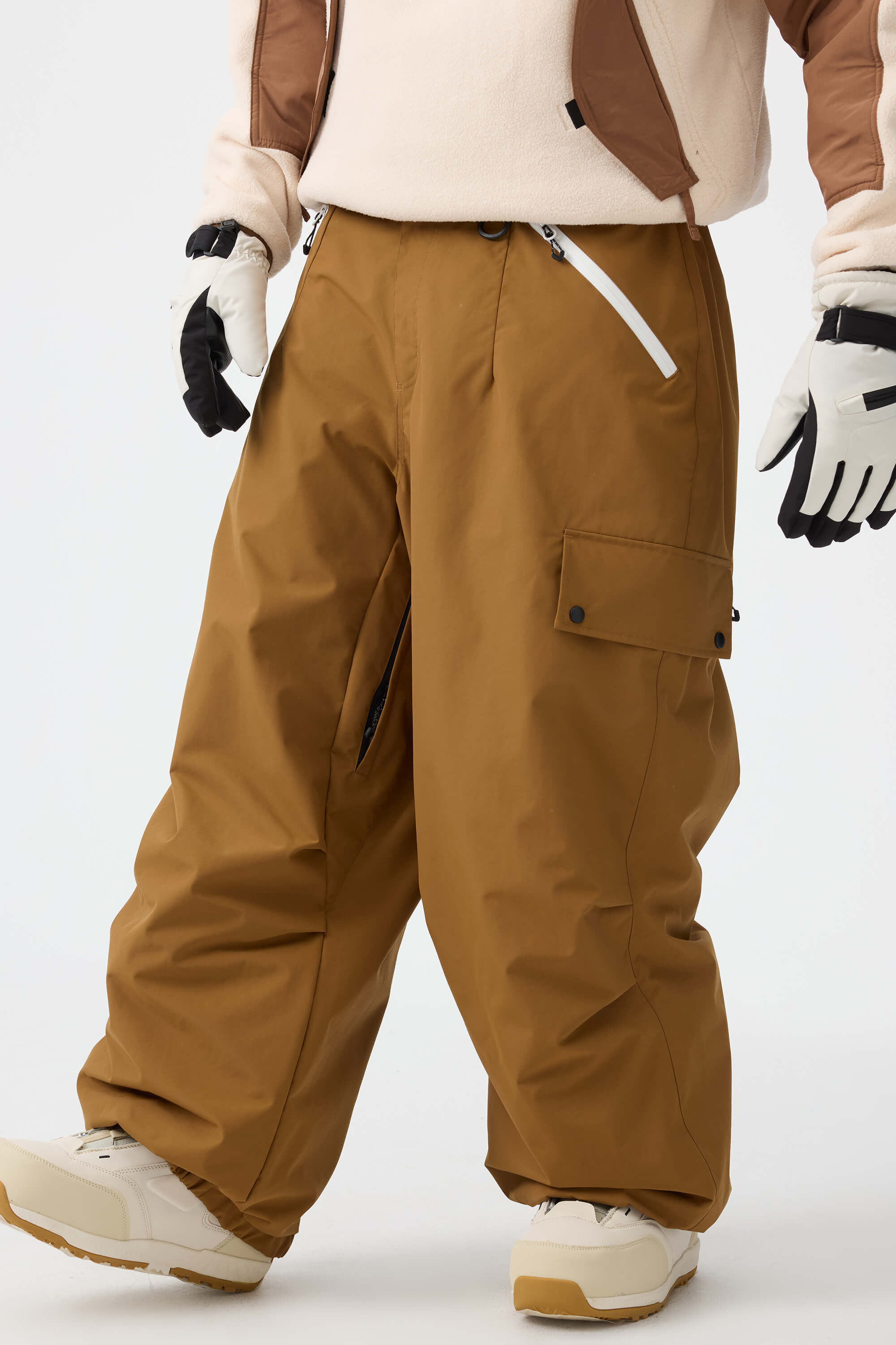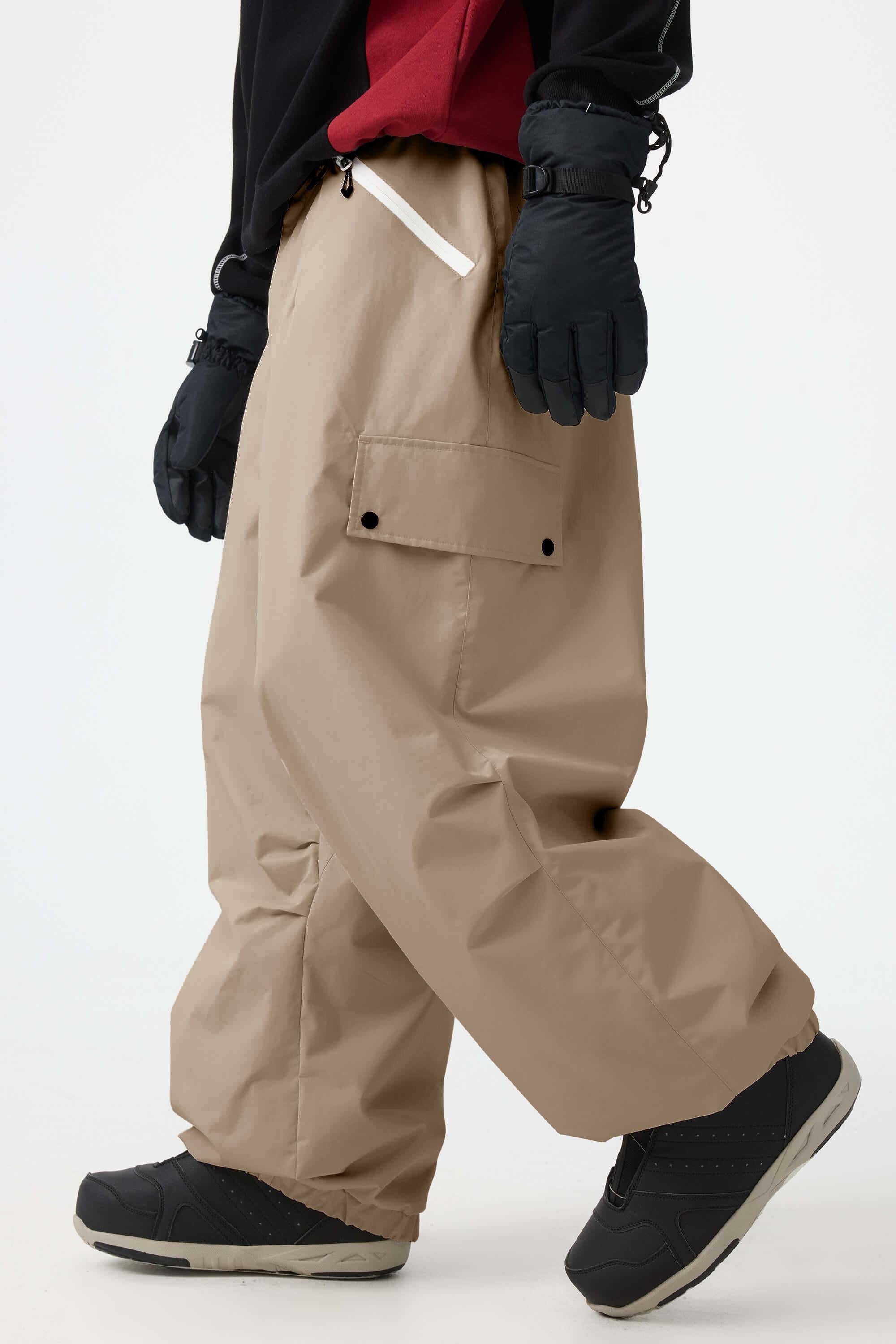 Men's Khaki Baggy Wear-resistant Waterproof Snow Pants