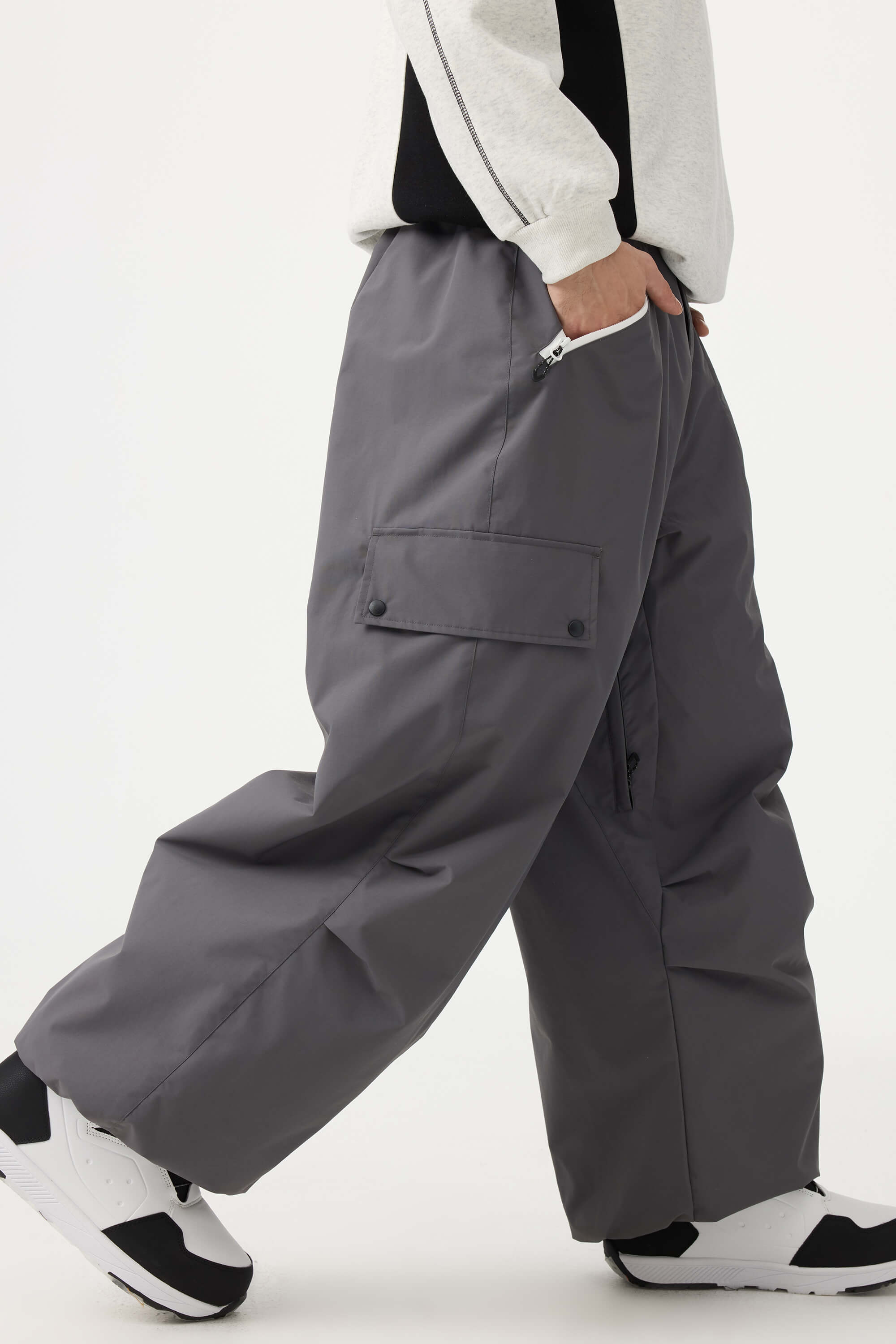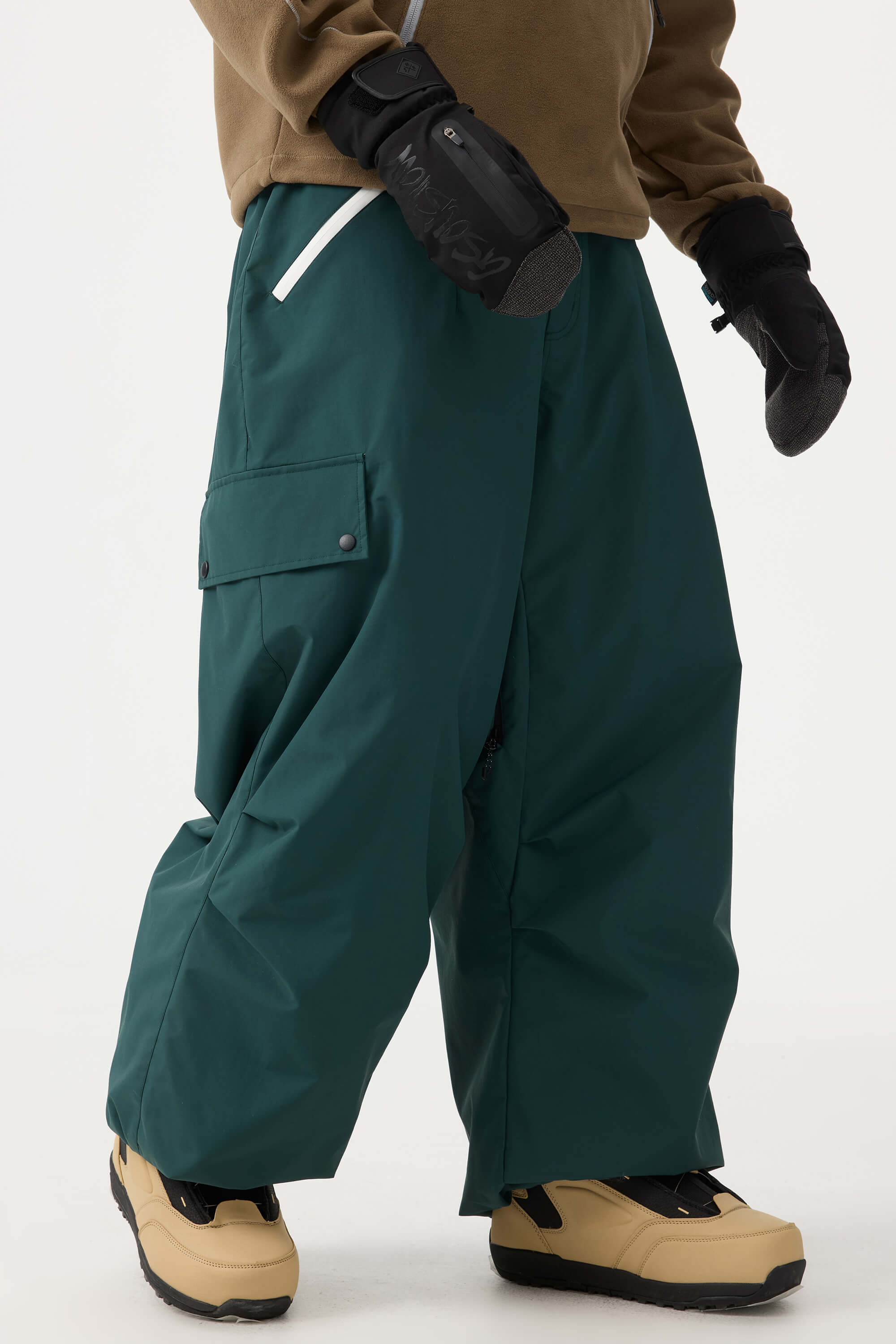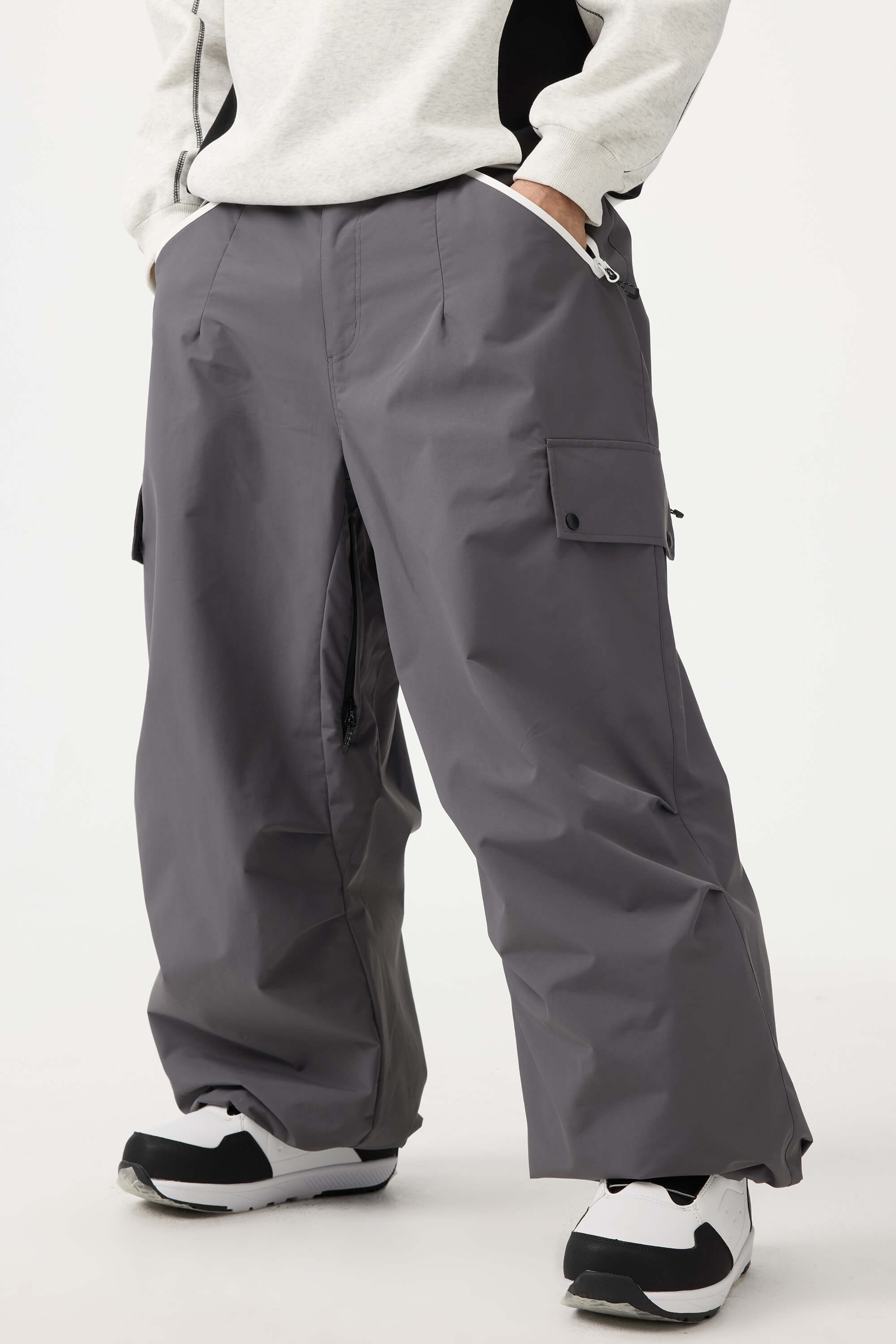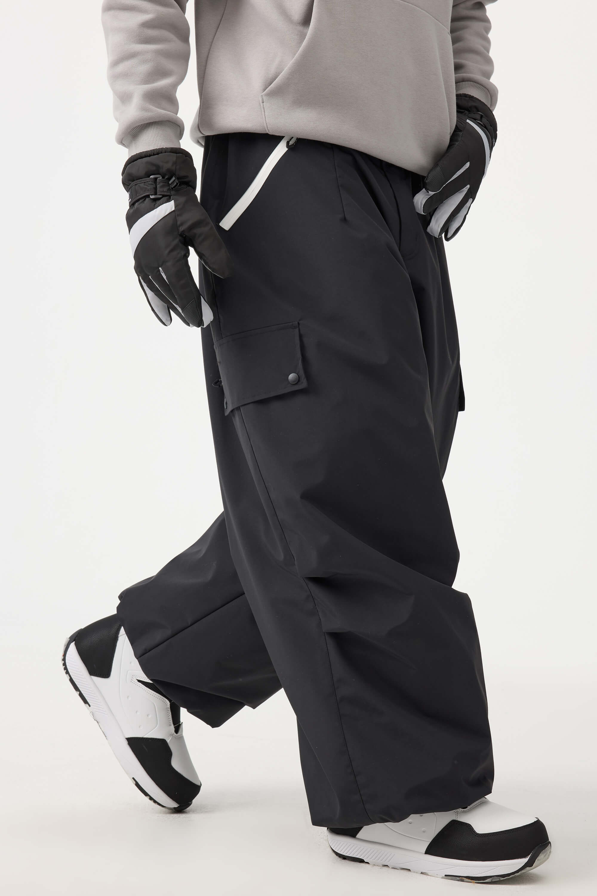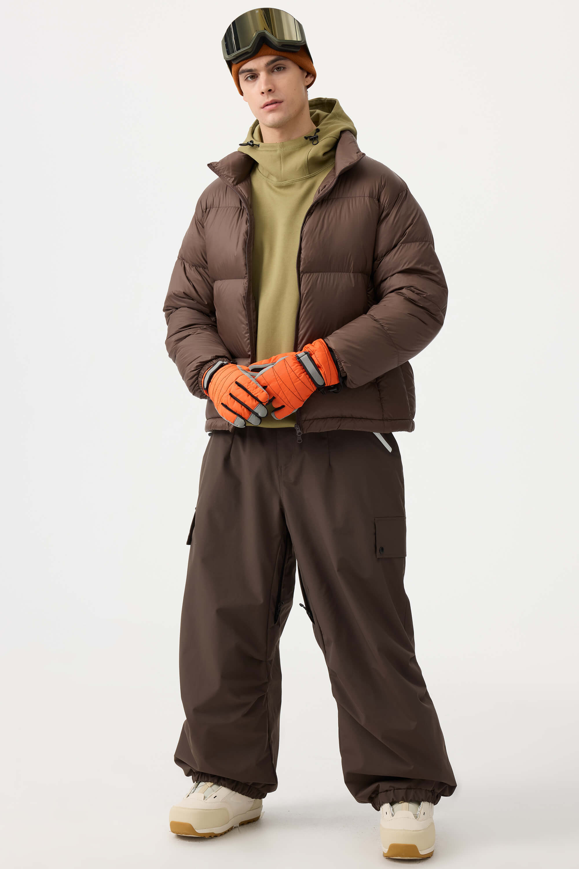 Men's Khaki Baggy Wear-resistant Waterproof Snow Pants