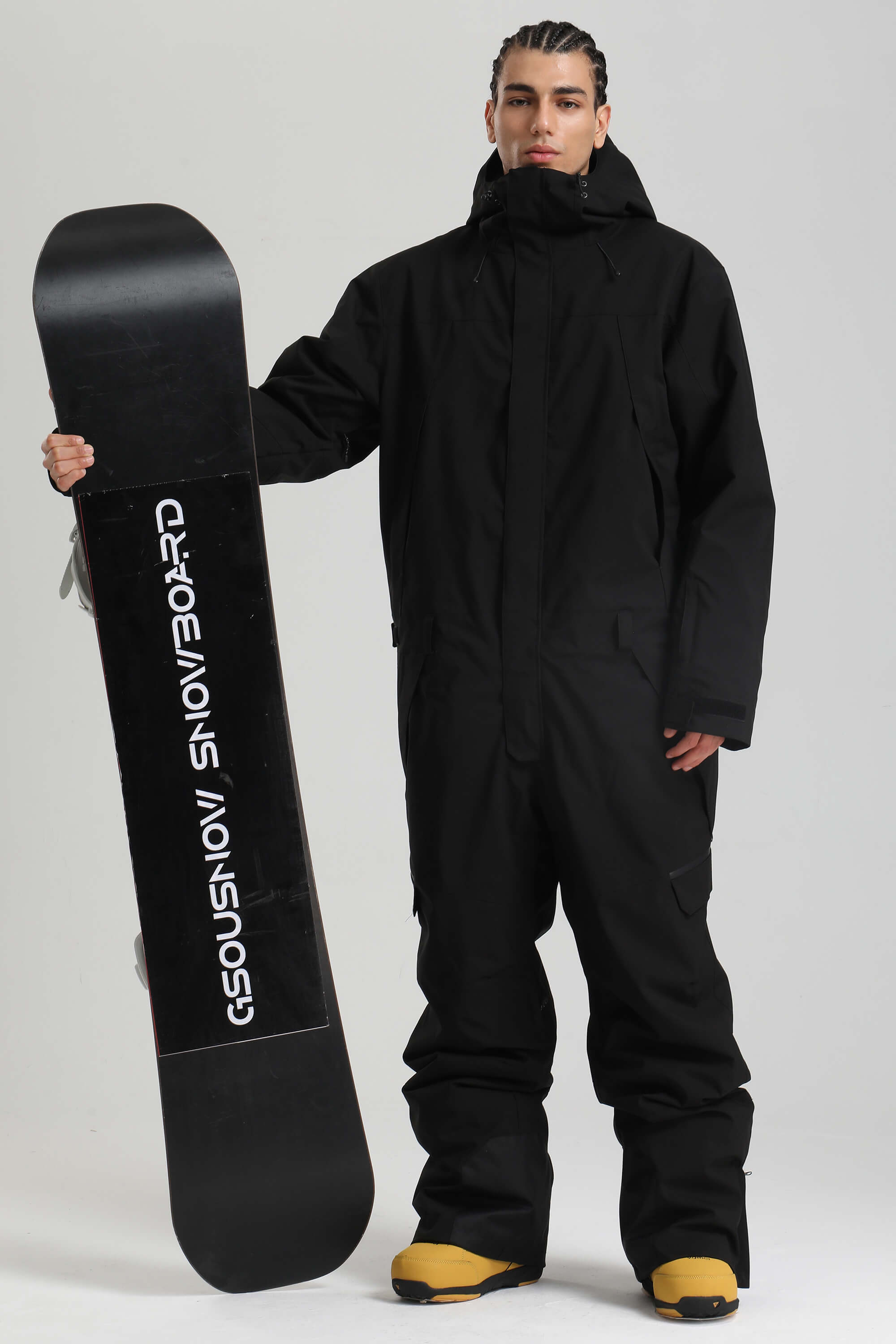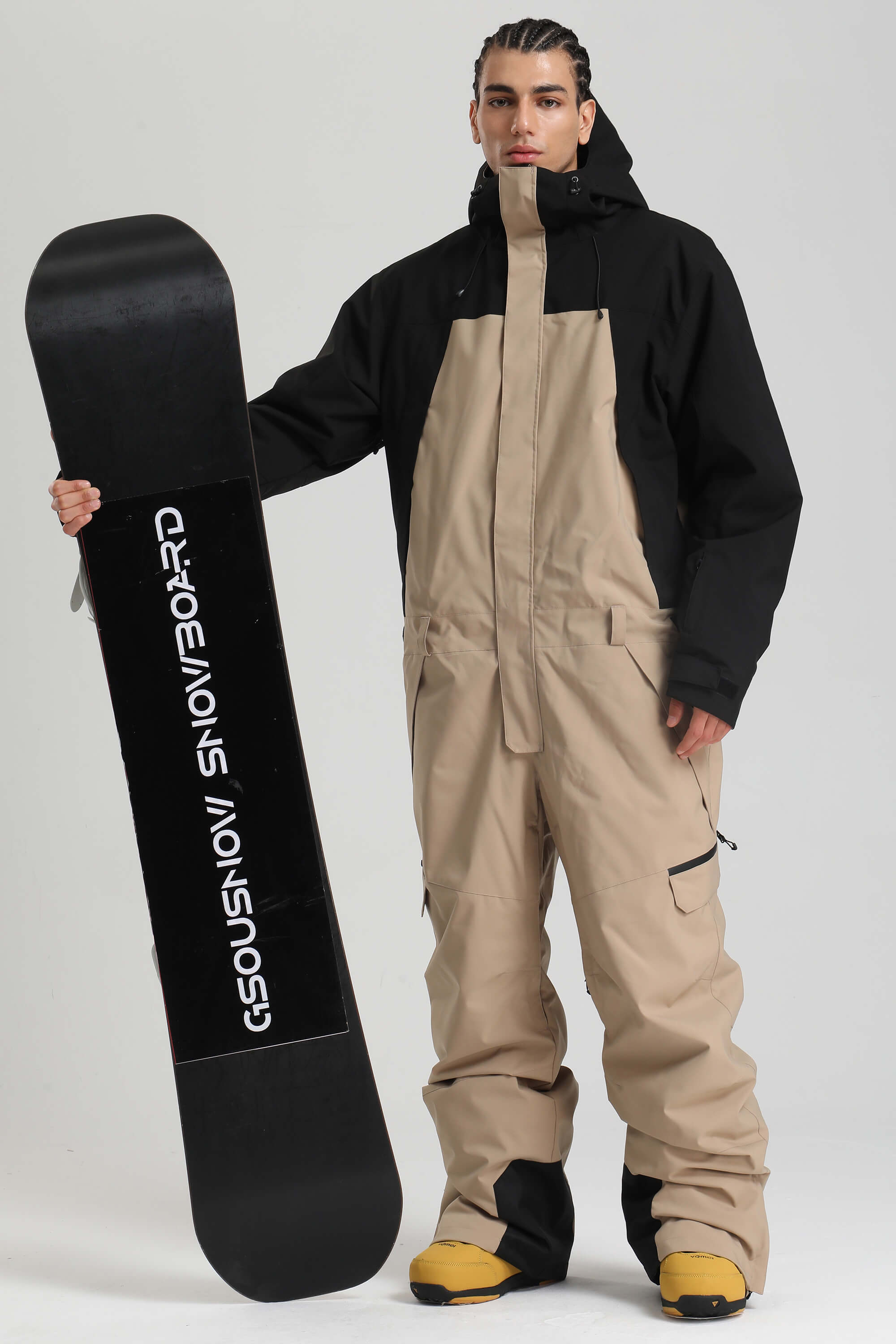 Men's White & Black Insulated Color-block Utility Baggy One-Piece Ski Suit