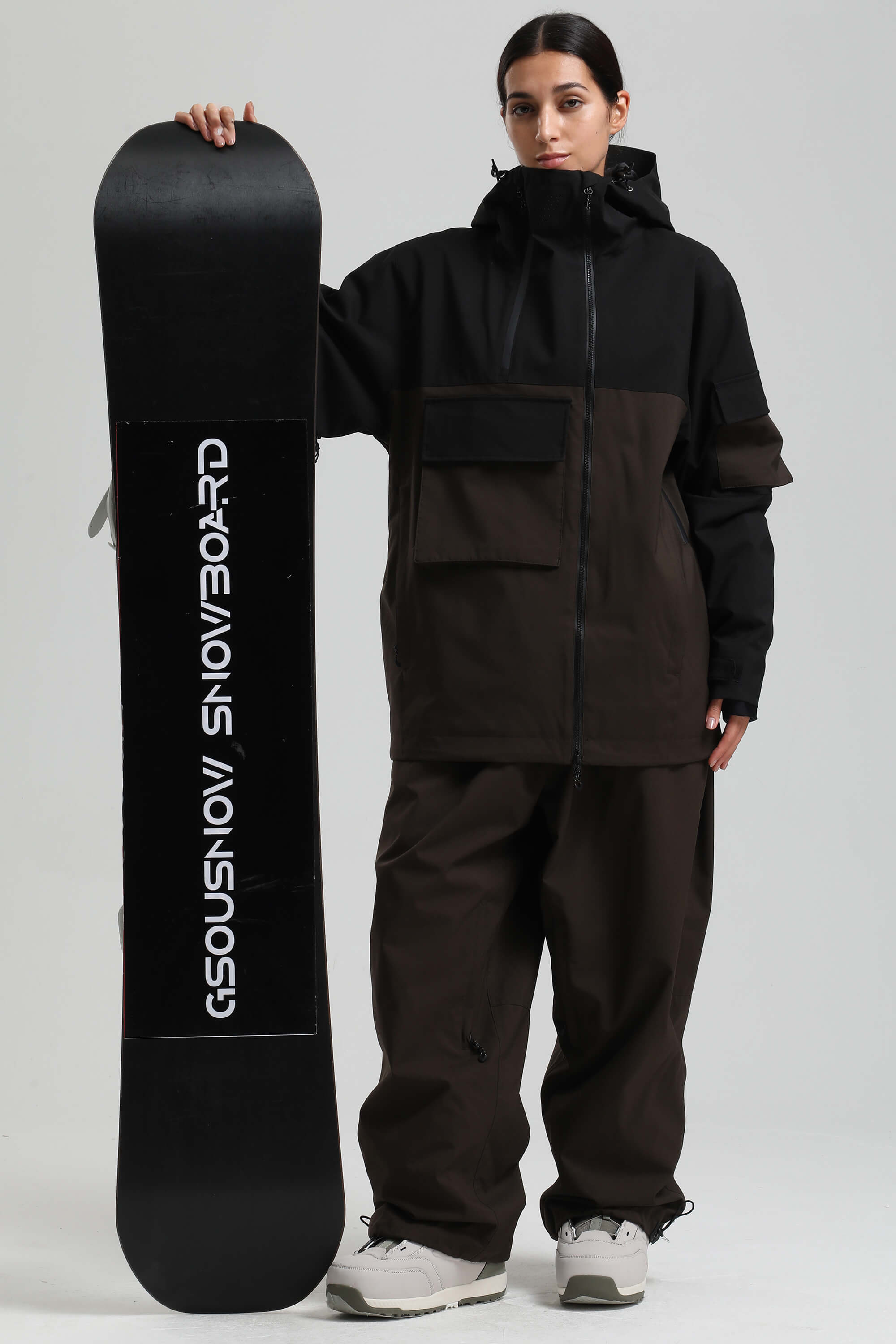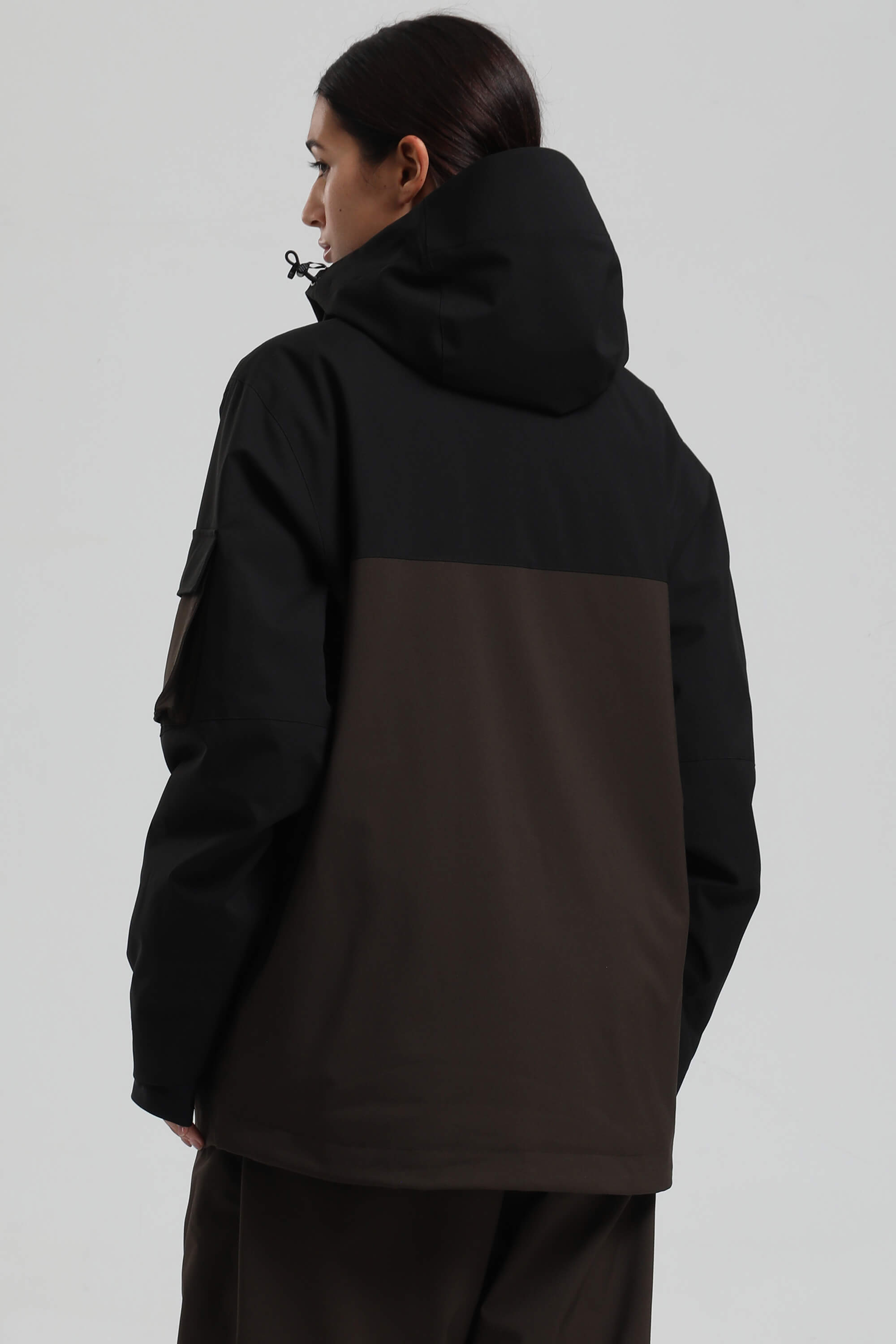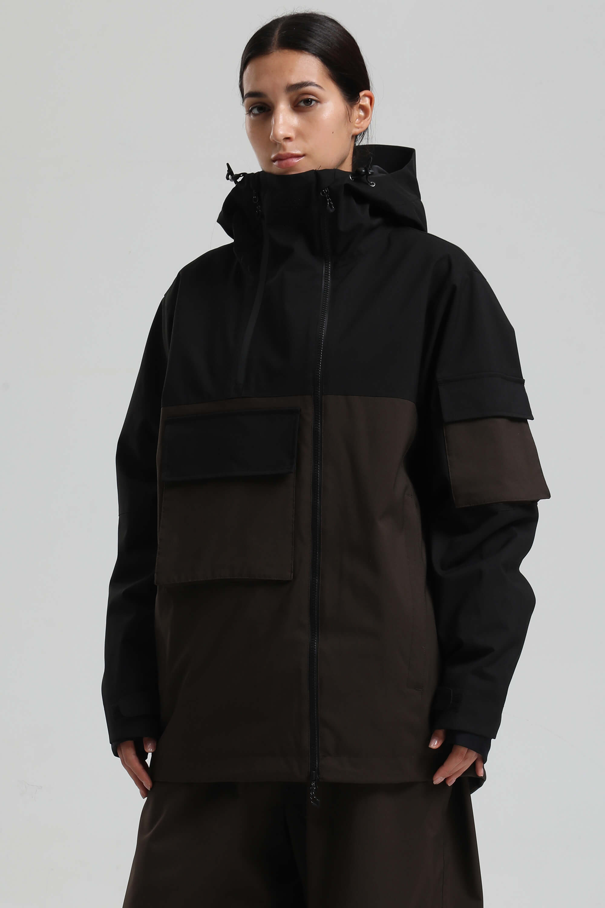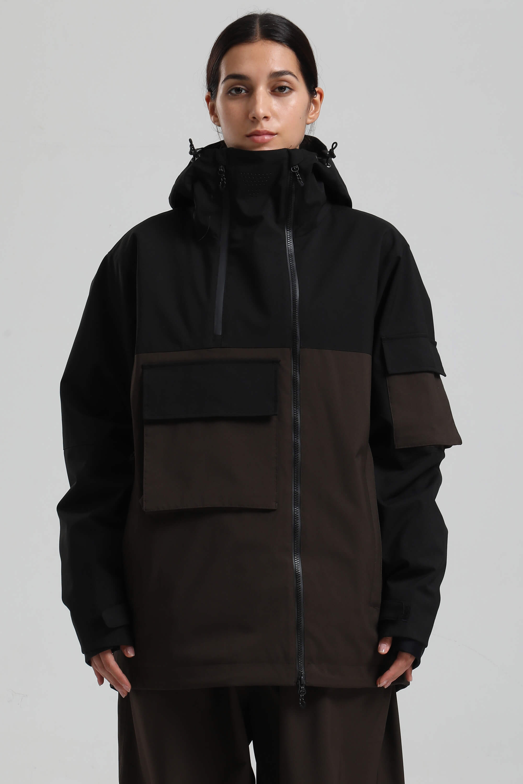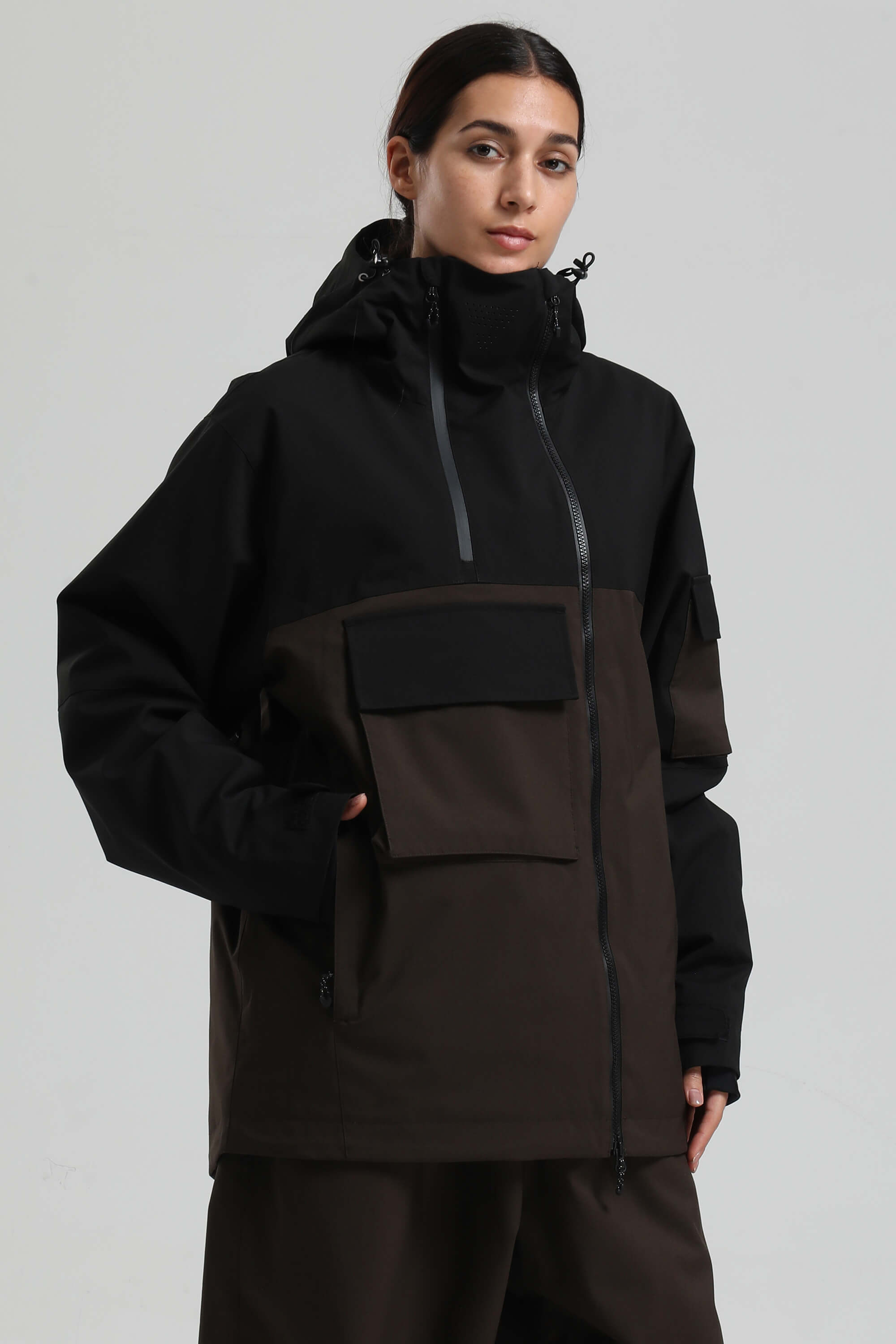 Women's Black & Coffee Asym-Zip Utility Pocket Waterproof Snow Jacket