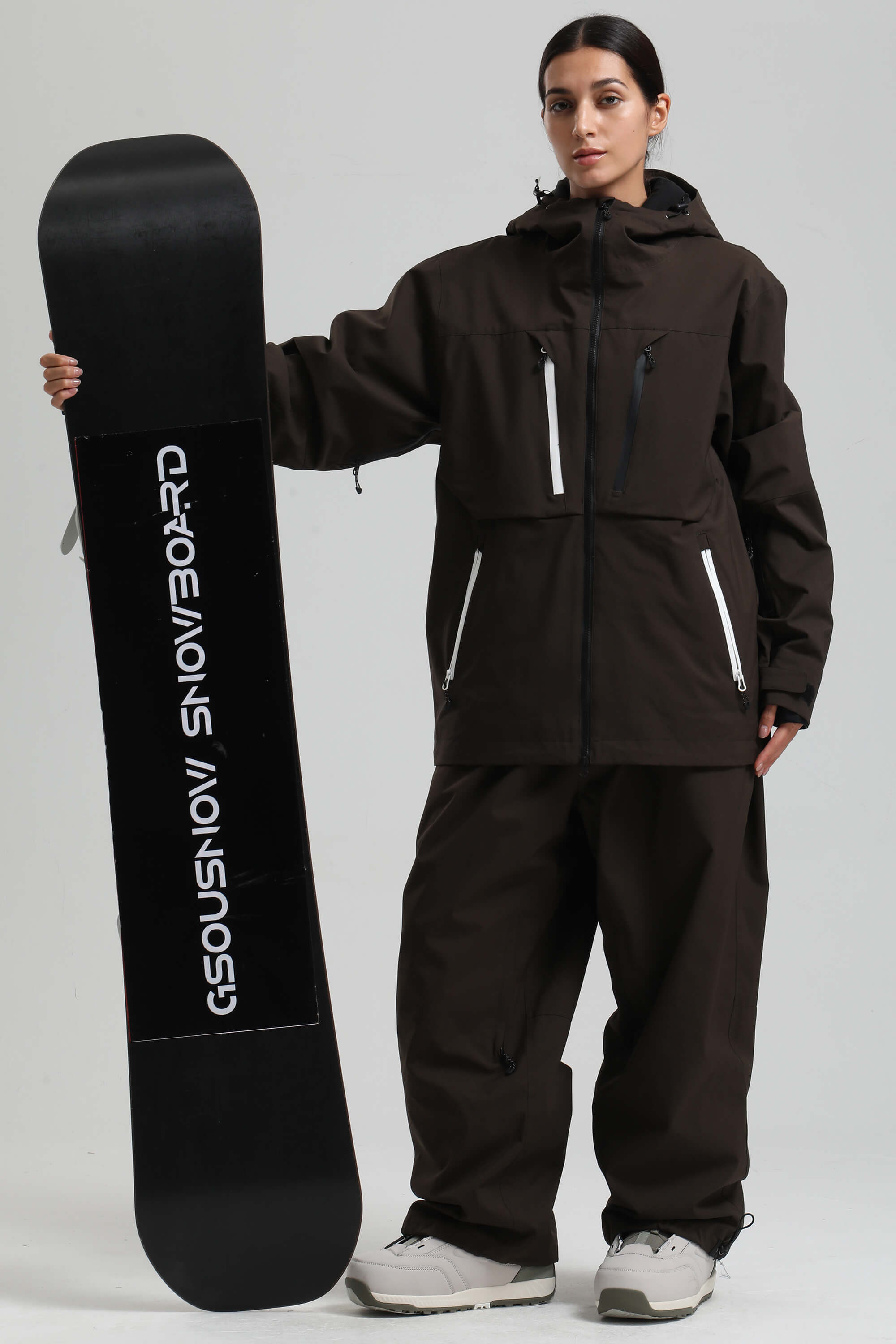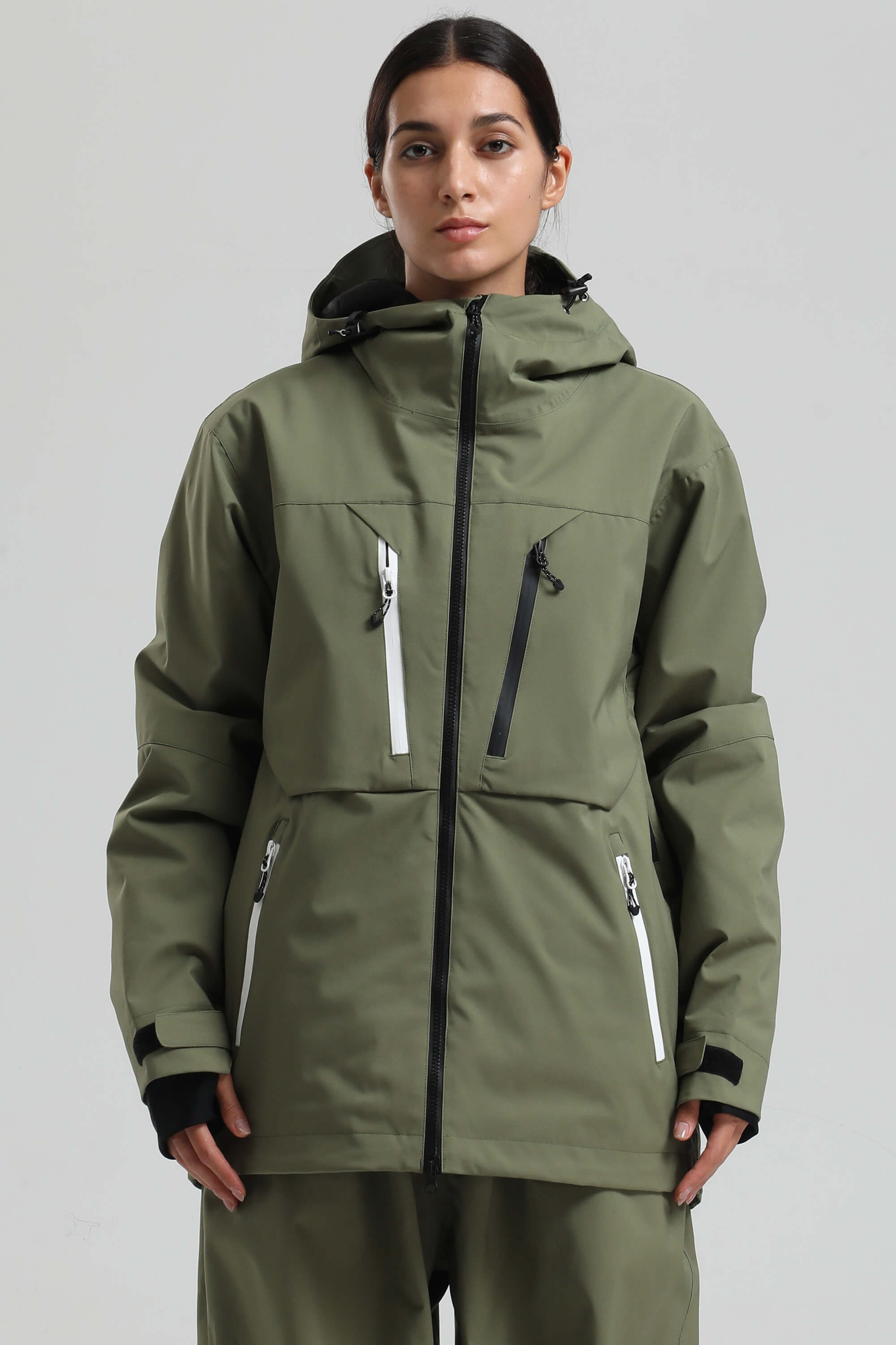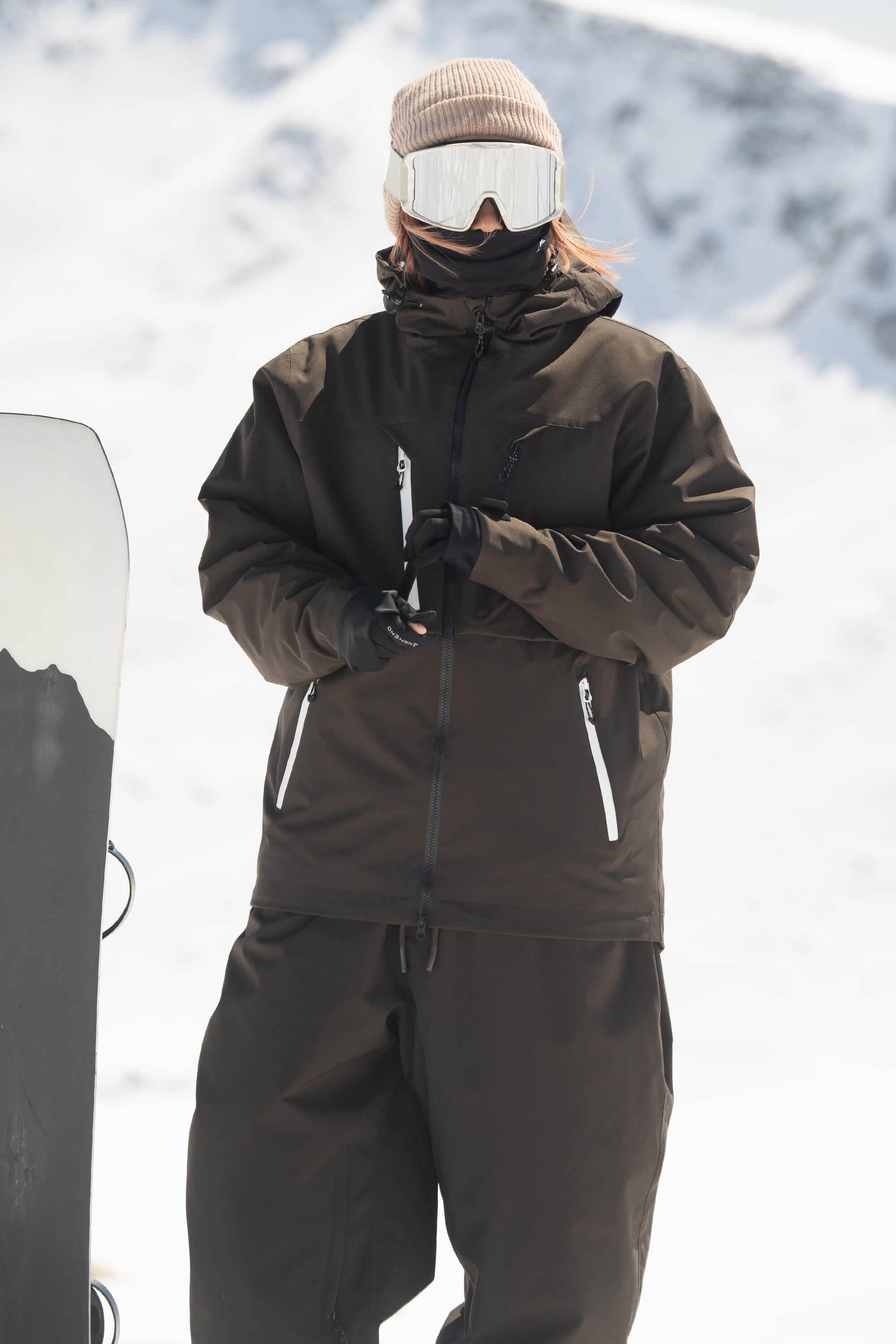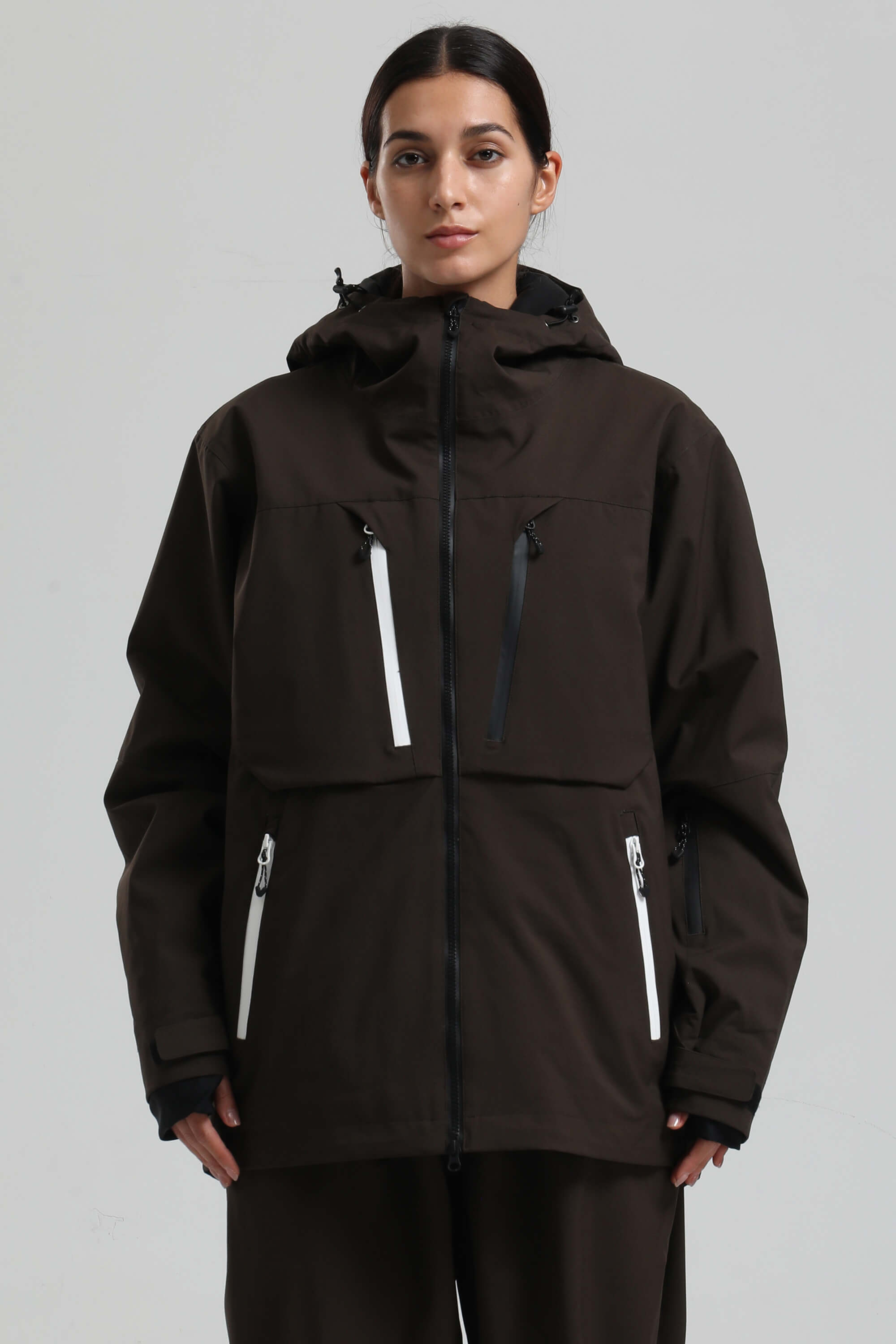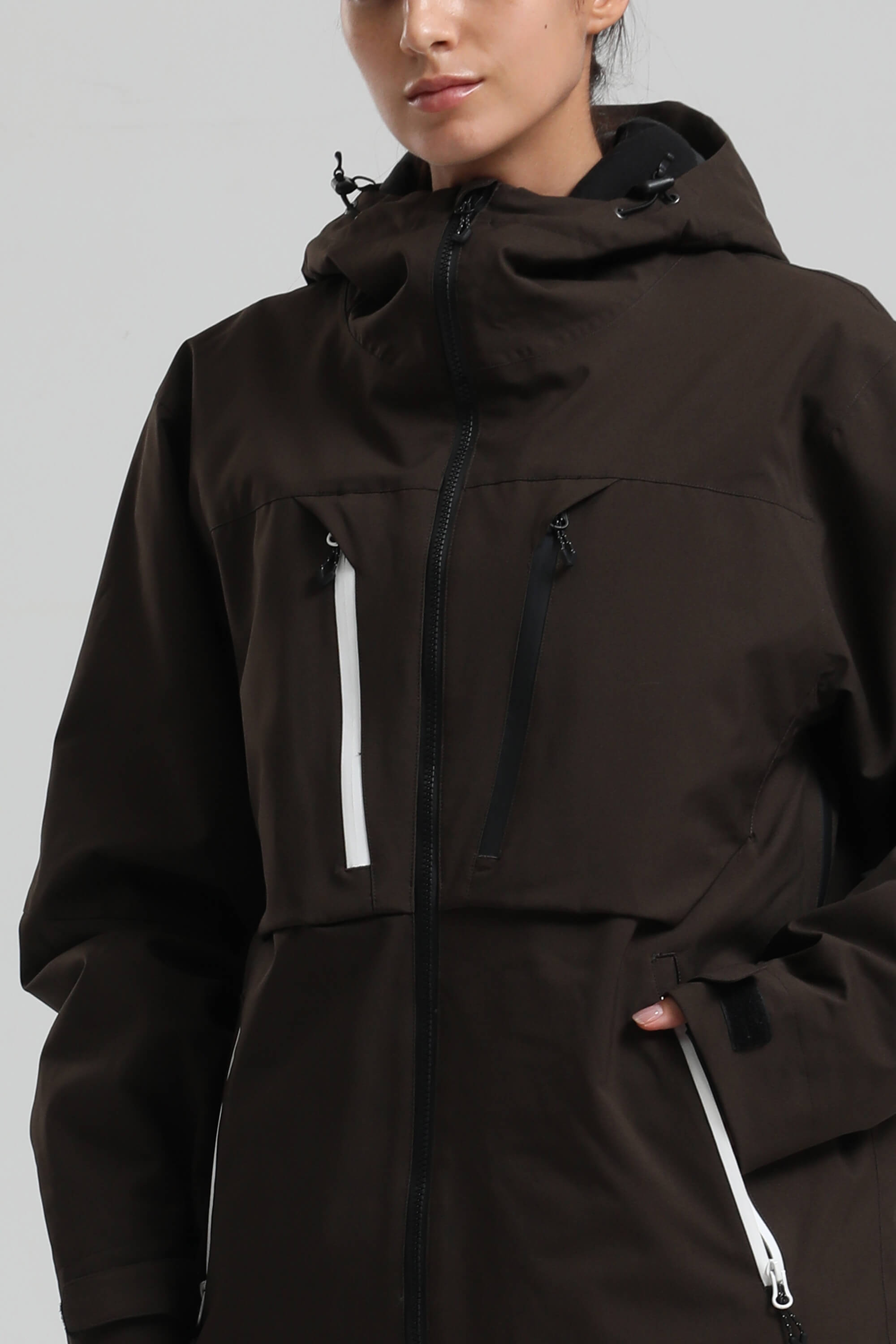 Women's Coffee Contrast-Zip Fully Sealed Waterproof Insulated Snow Jacket