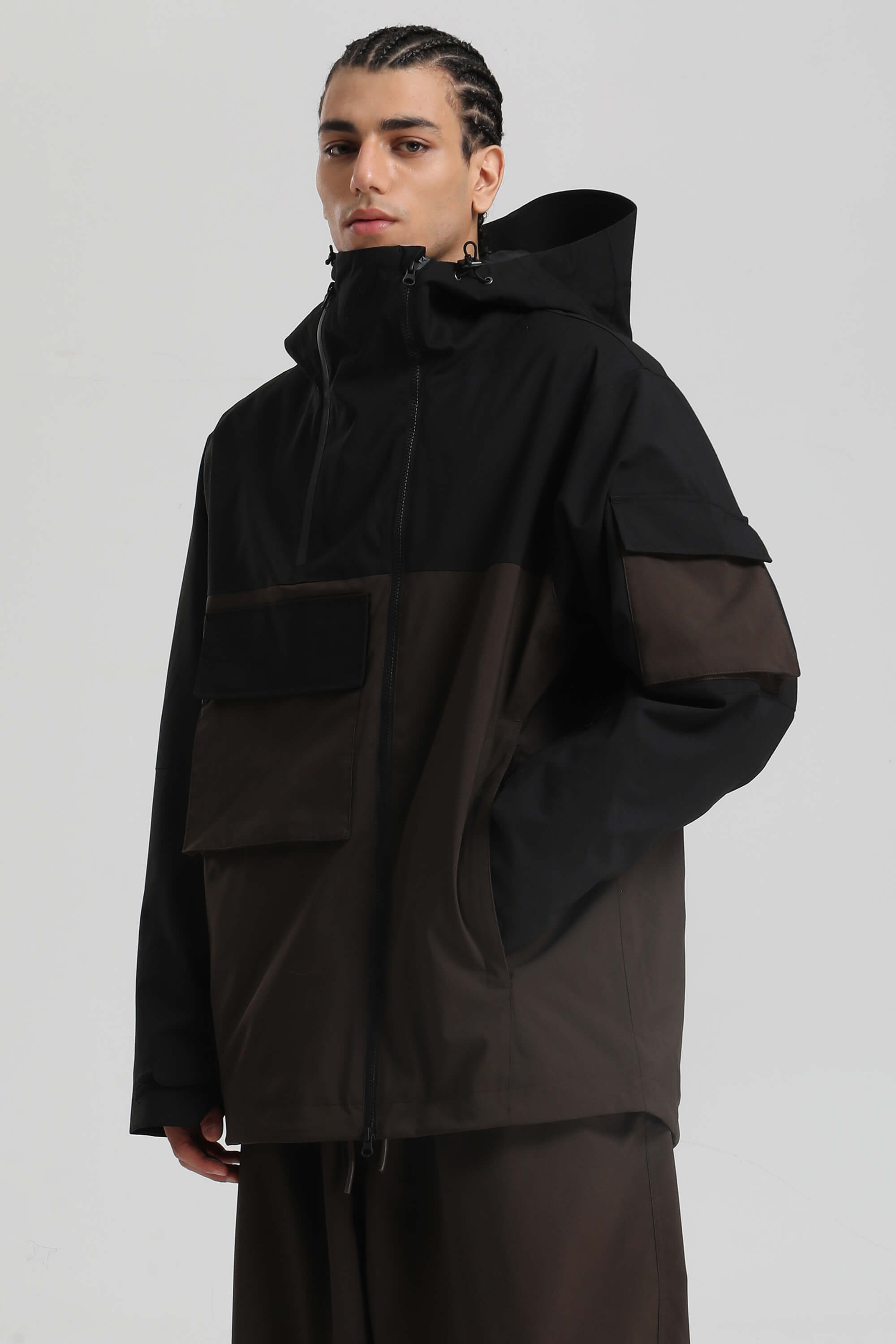 Men's Black & Coffee Asym-Zip Utility Pocket Waterproof Snow Jacket