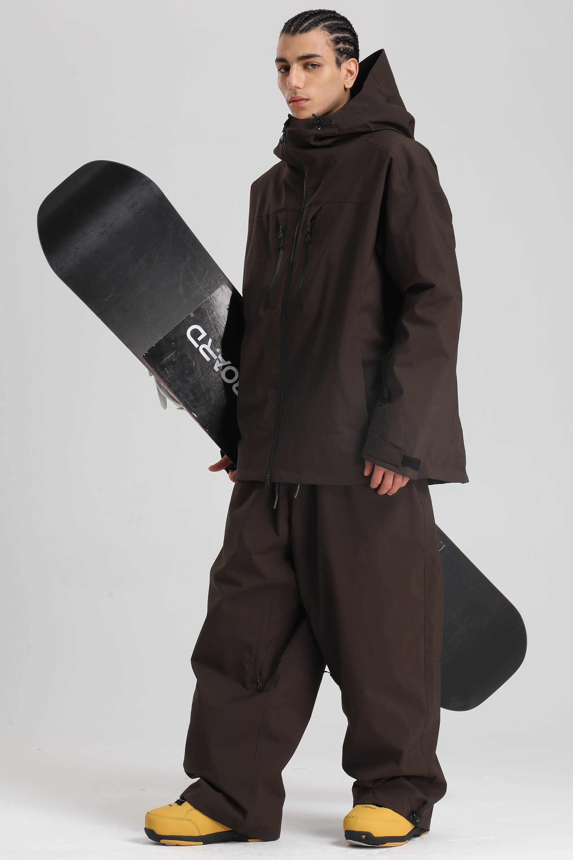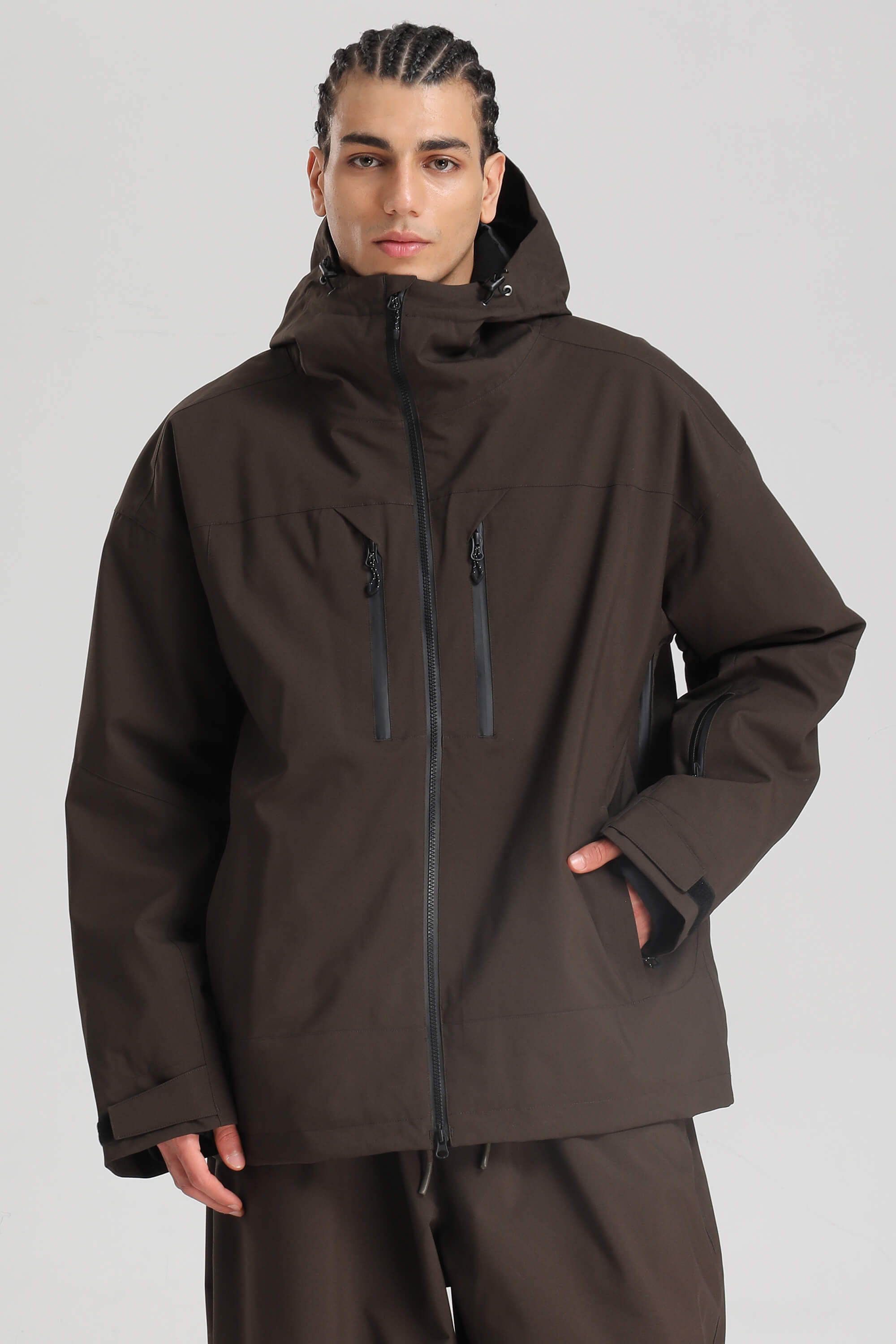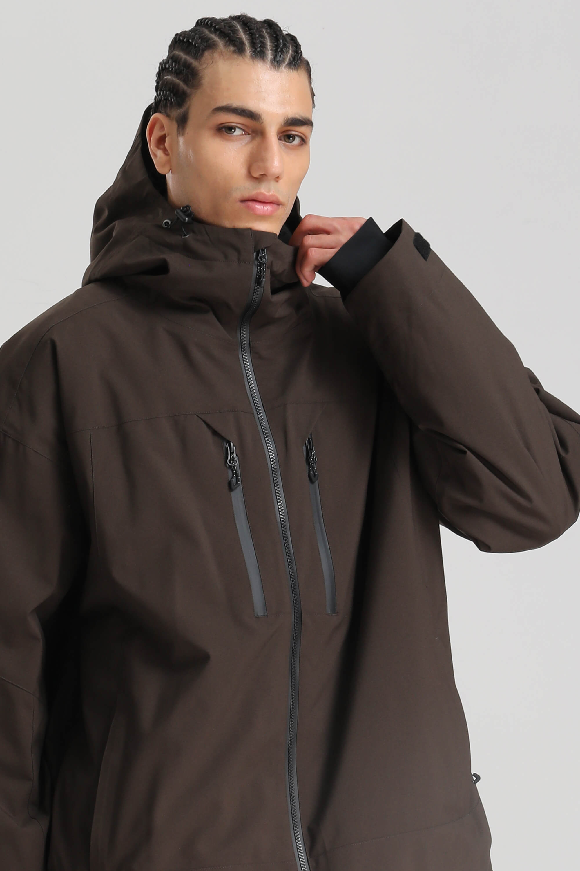Men's Coffee Multi-Pocket Dual-Vent Waterproof Insulated Snow Jacket
