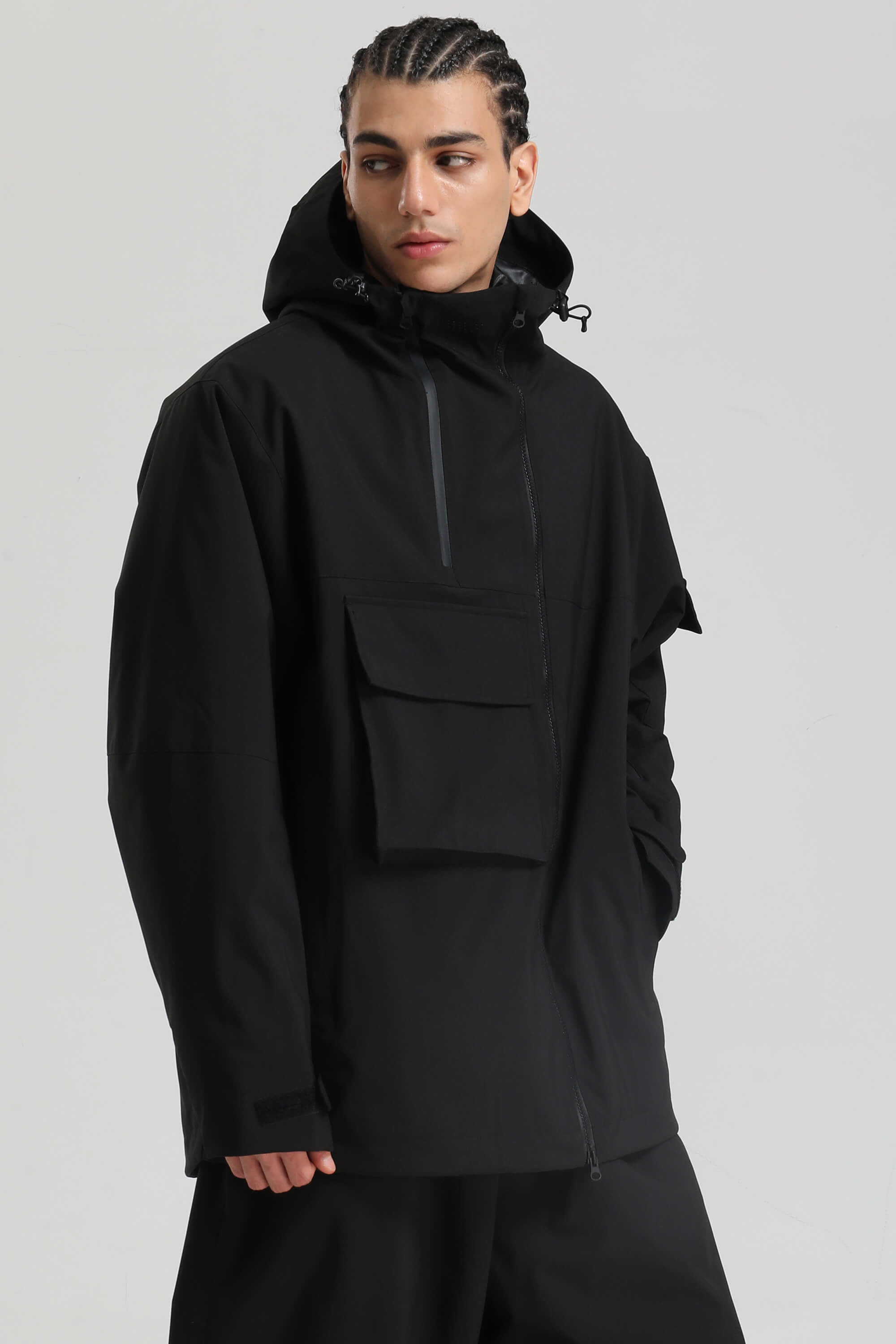 Men's Green & Black Asym-Zip Utility Pocket Waterproof Snow Jacket