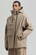 Men's Khaki & White Asym-Zip Utility Pocket Waterproof Snow Jacket