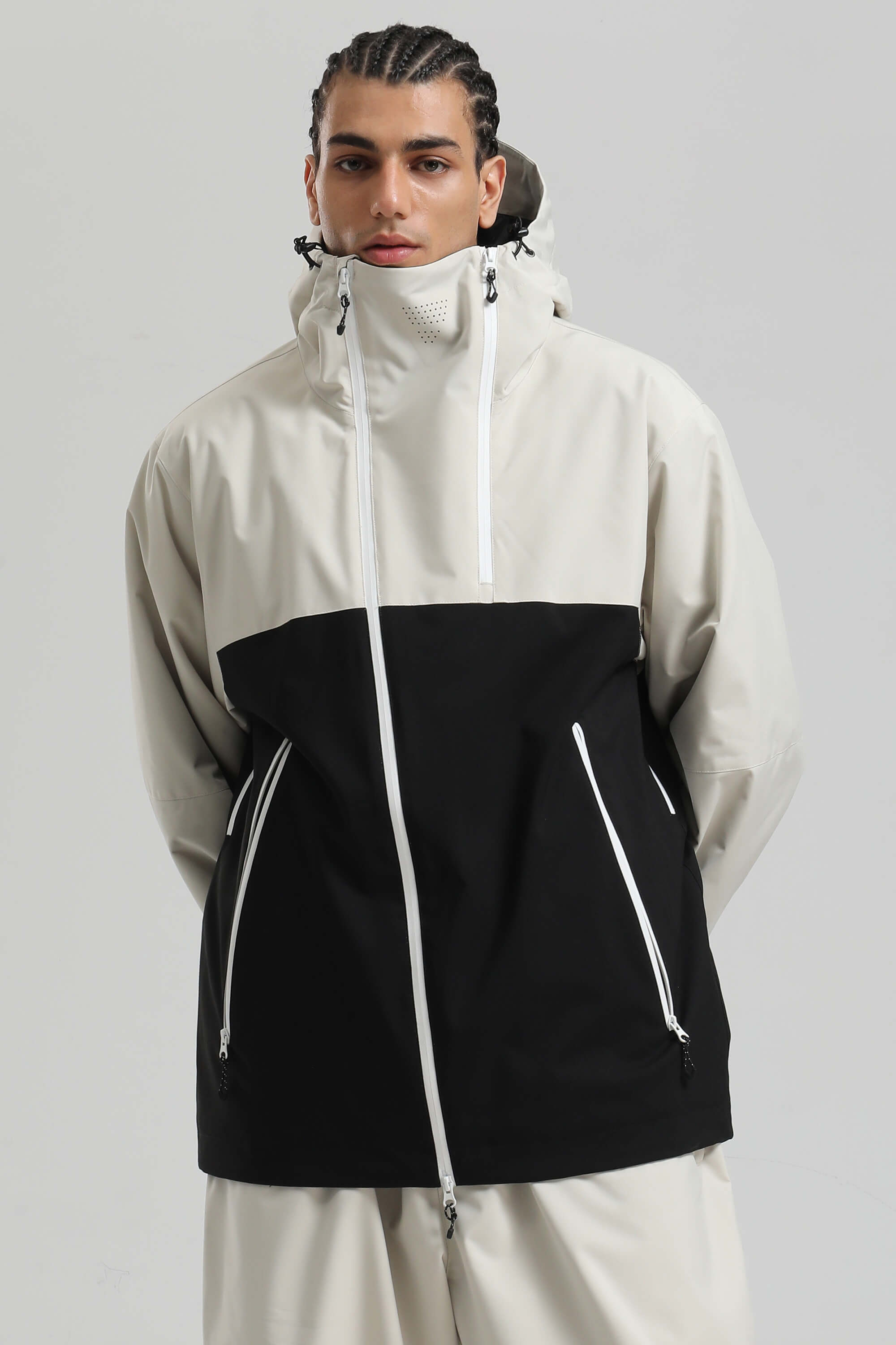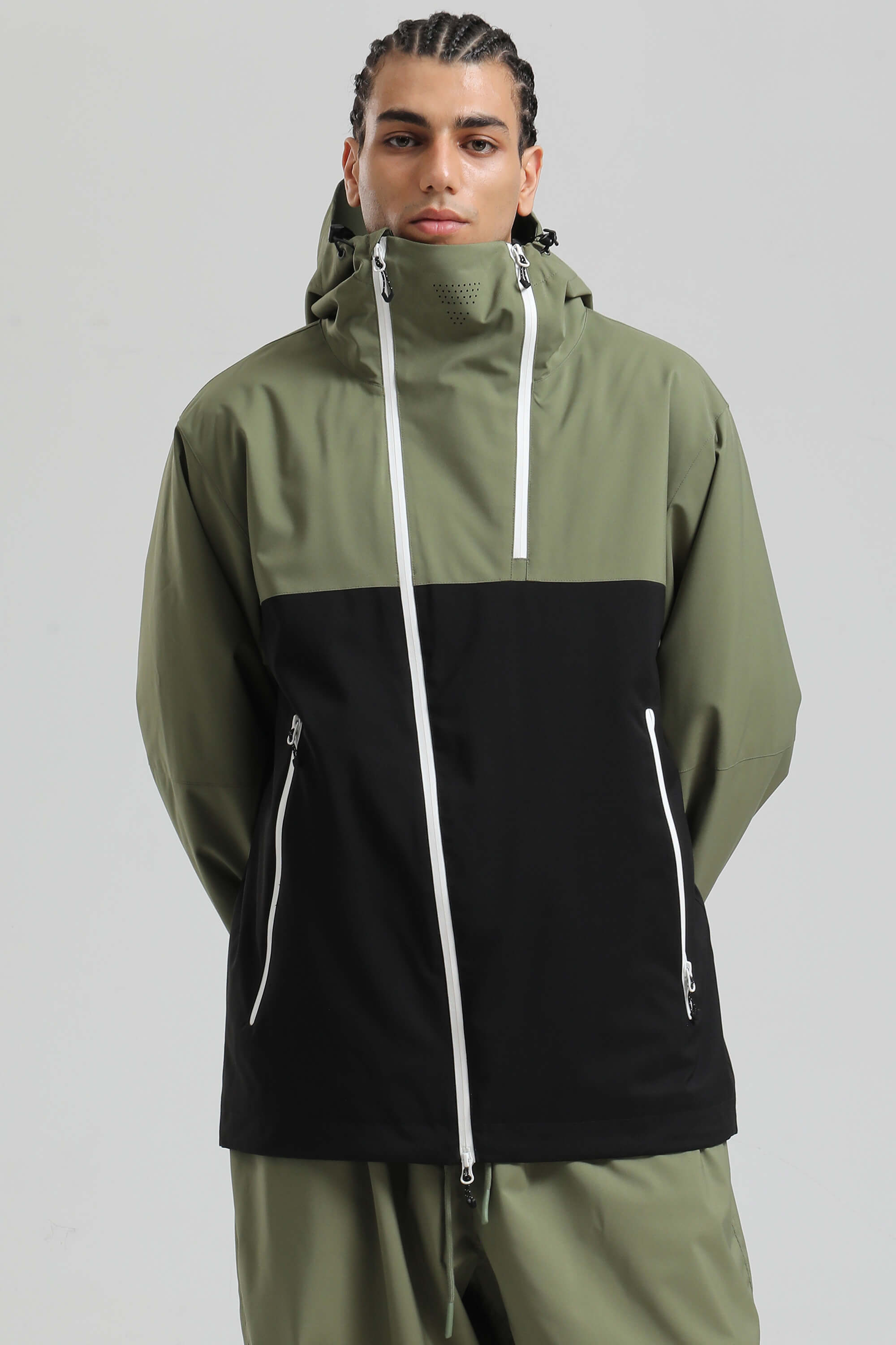 Men's Khaki & White Face Vent Asym-Zip Waterproof Insulated Snow Jacket