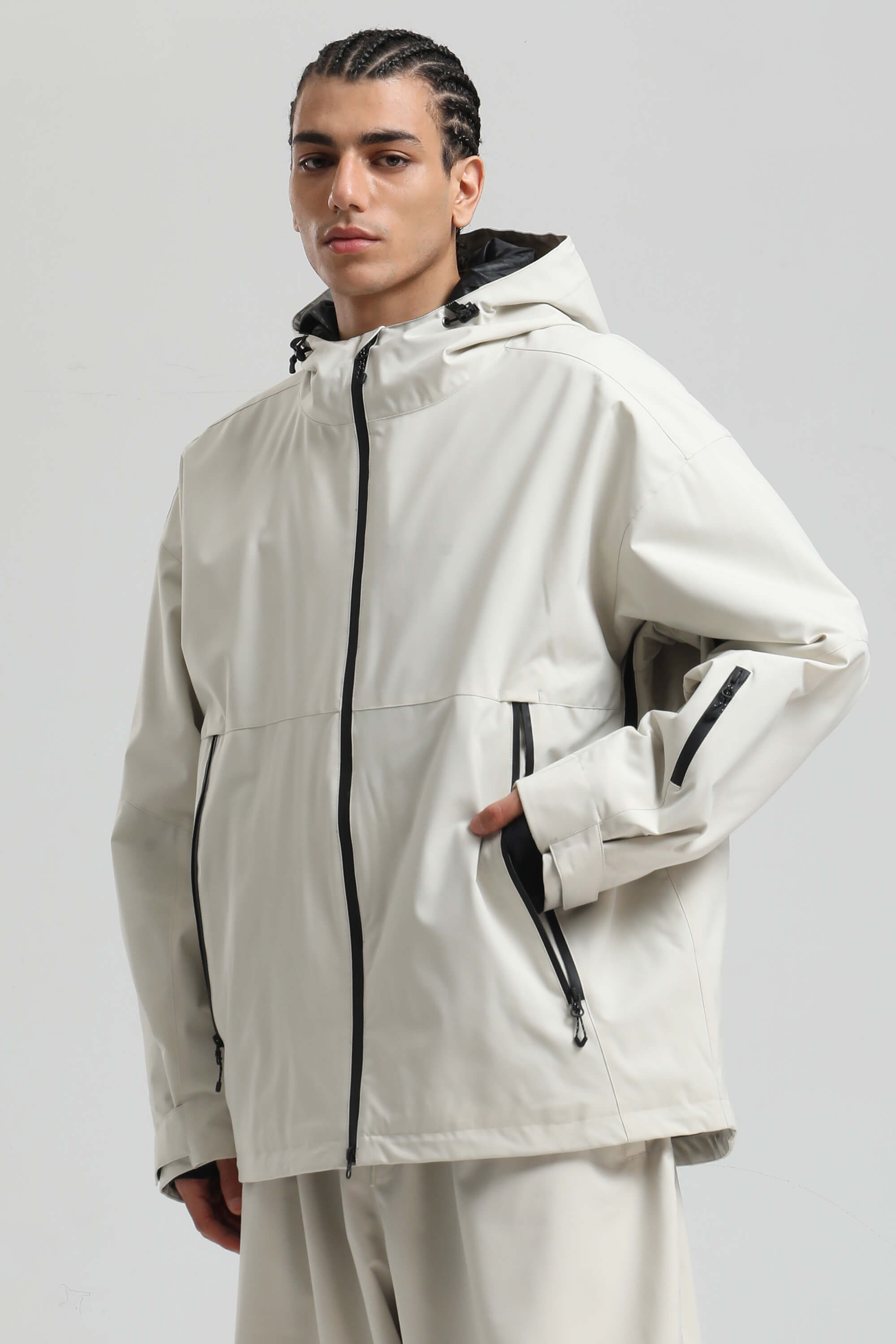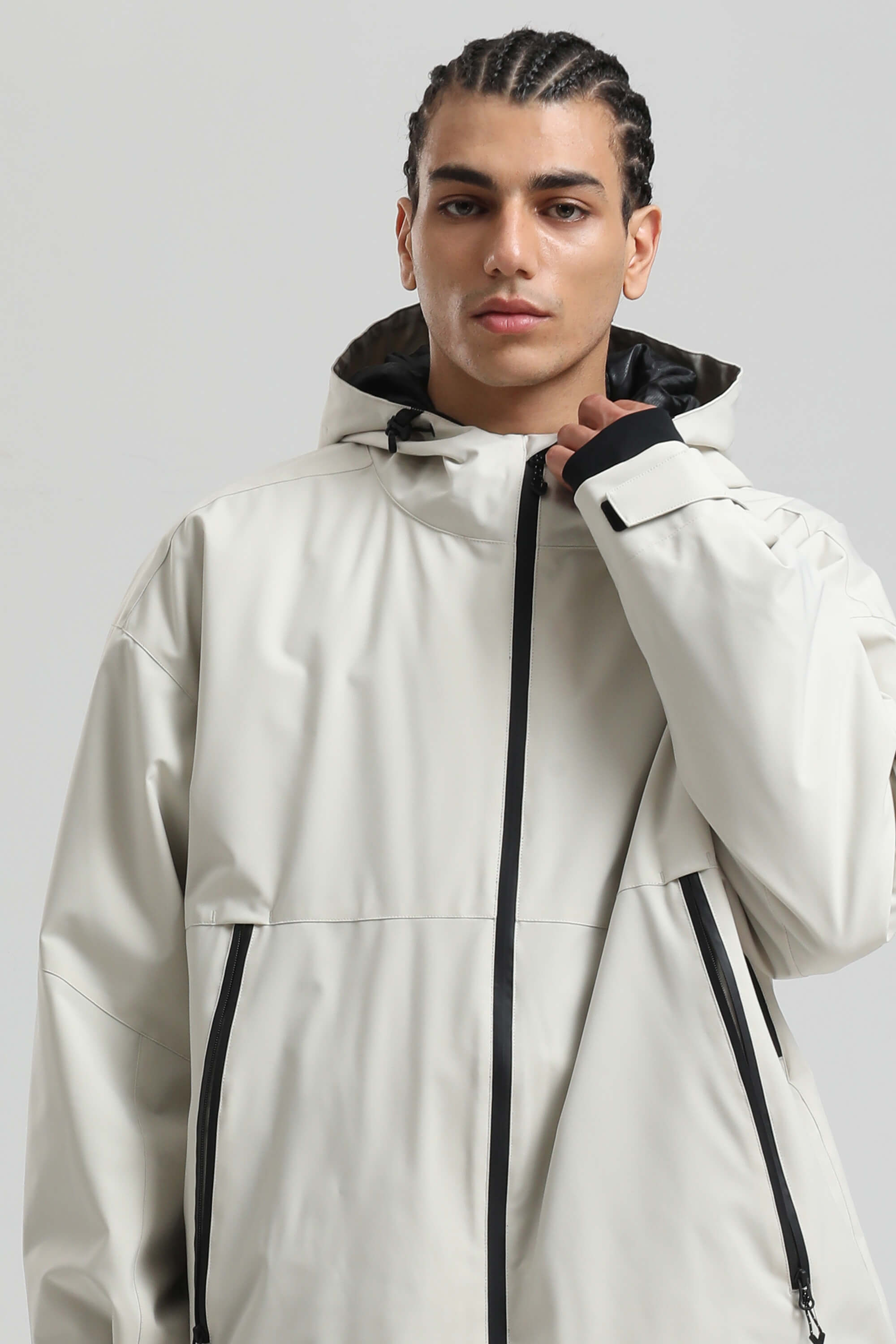 Men's Off White Fully Sealed Dual-Vent Minimalist Insulated Snow Jacket