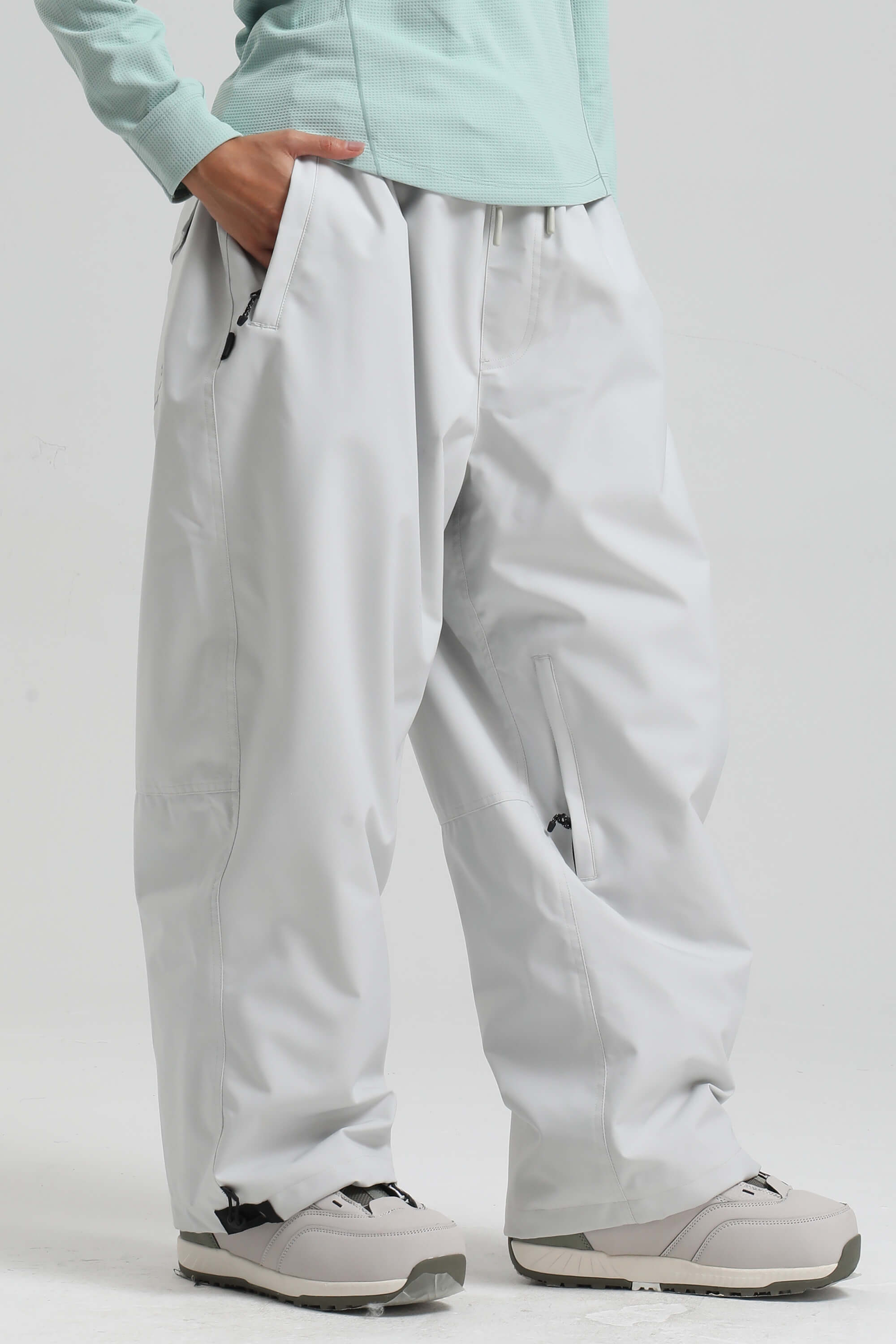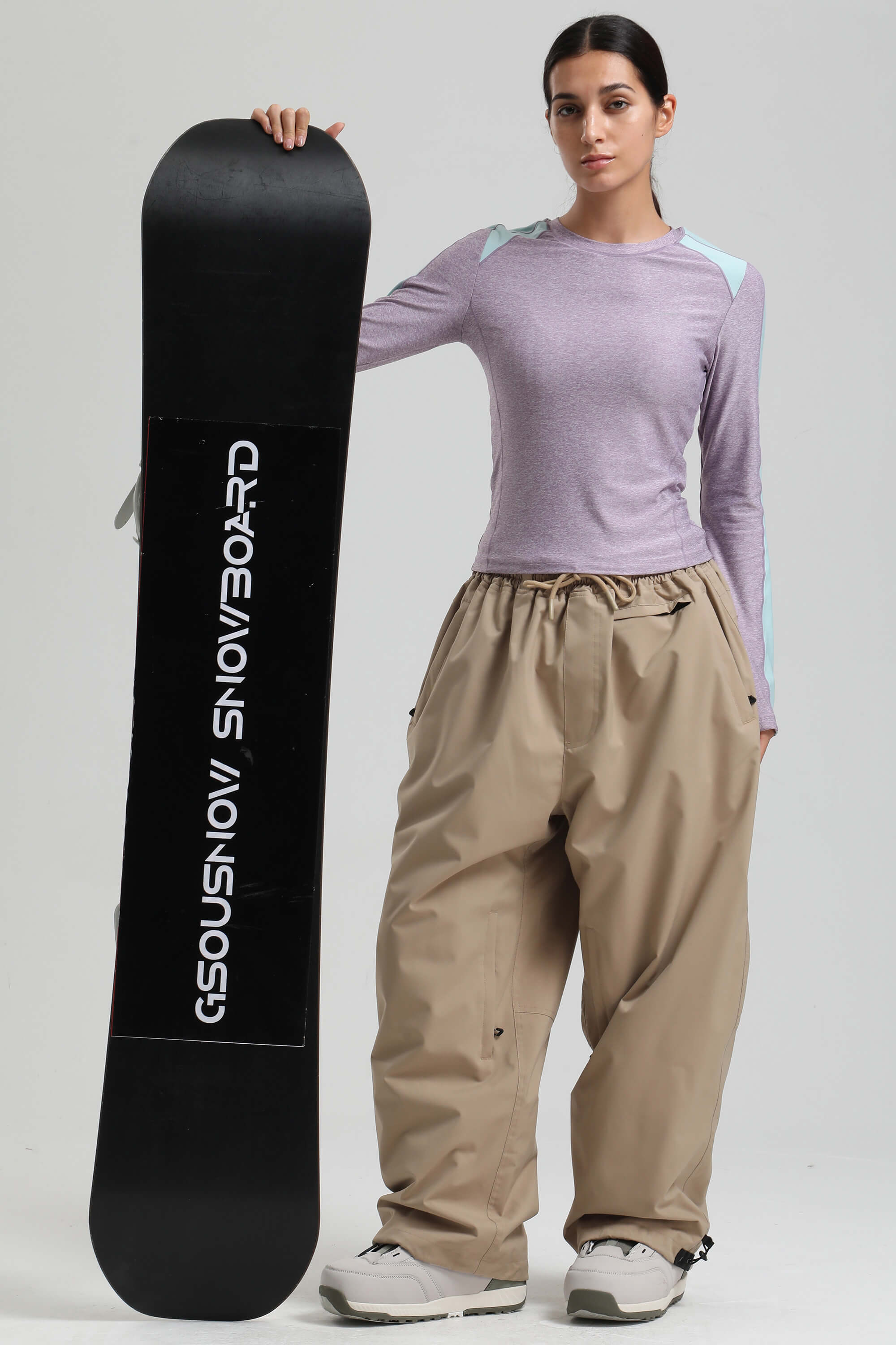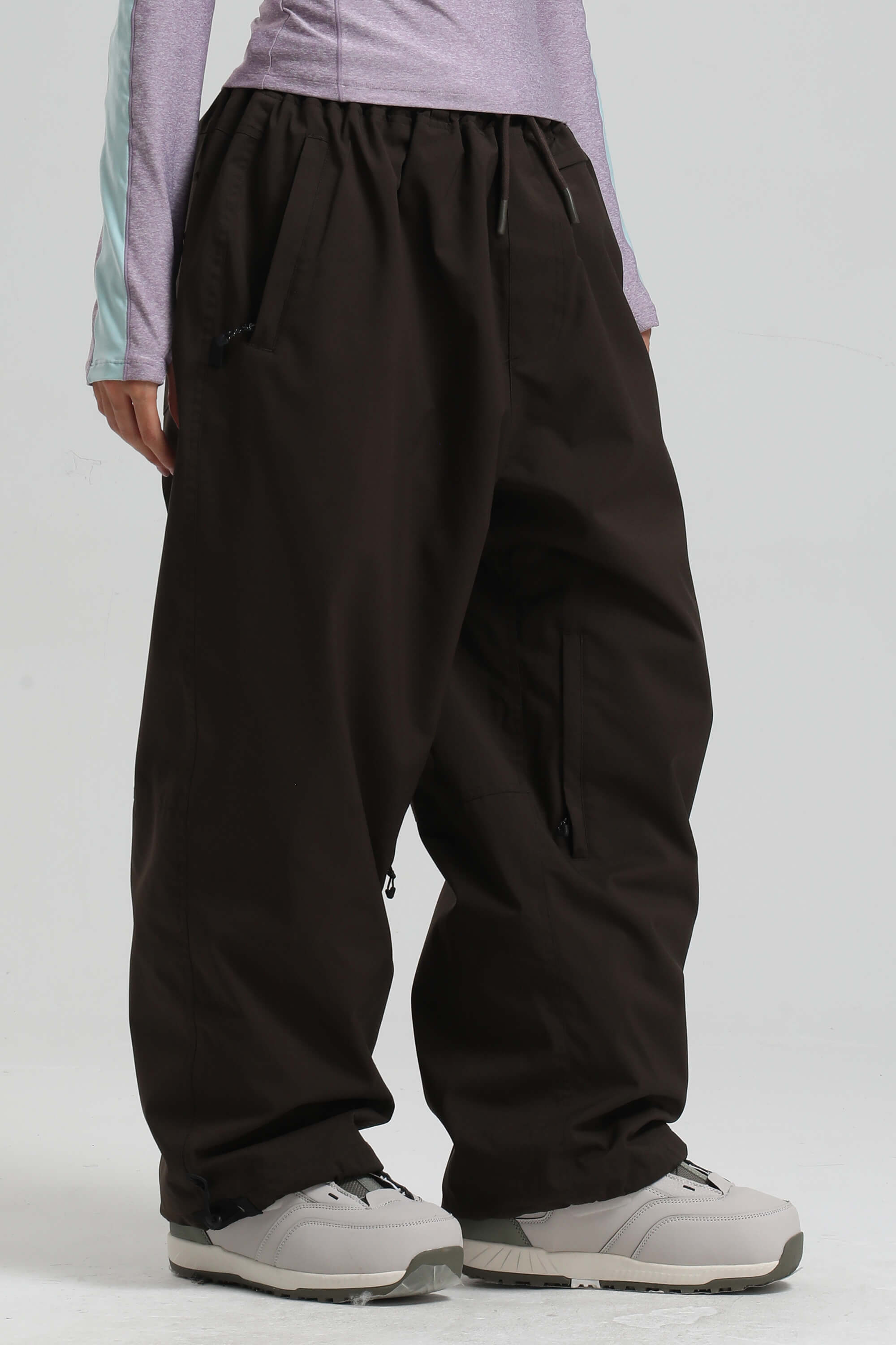 Women's Khaki Baggy Drawstring Durable Snow Pants