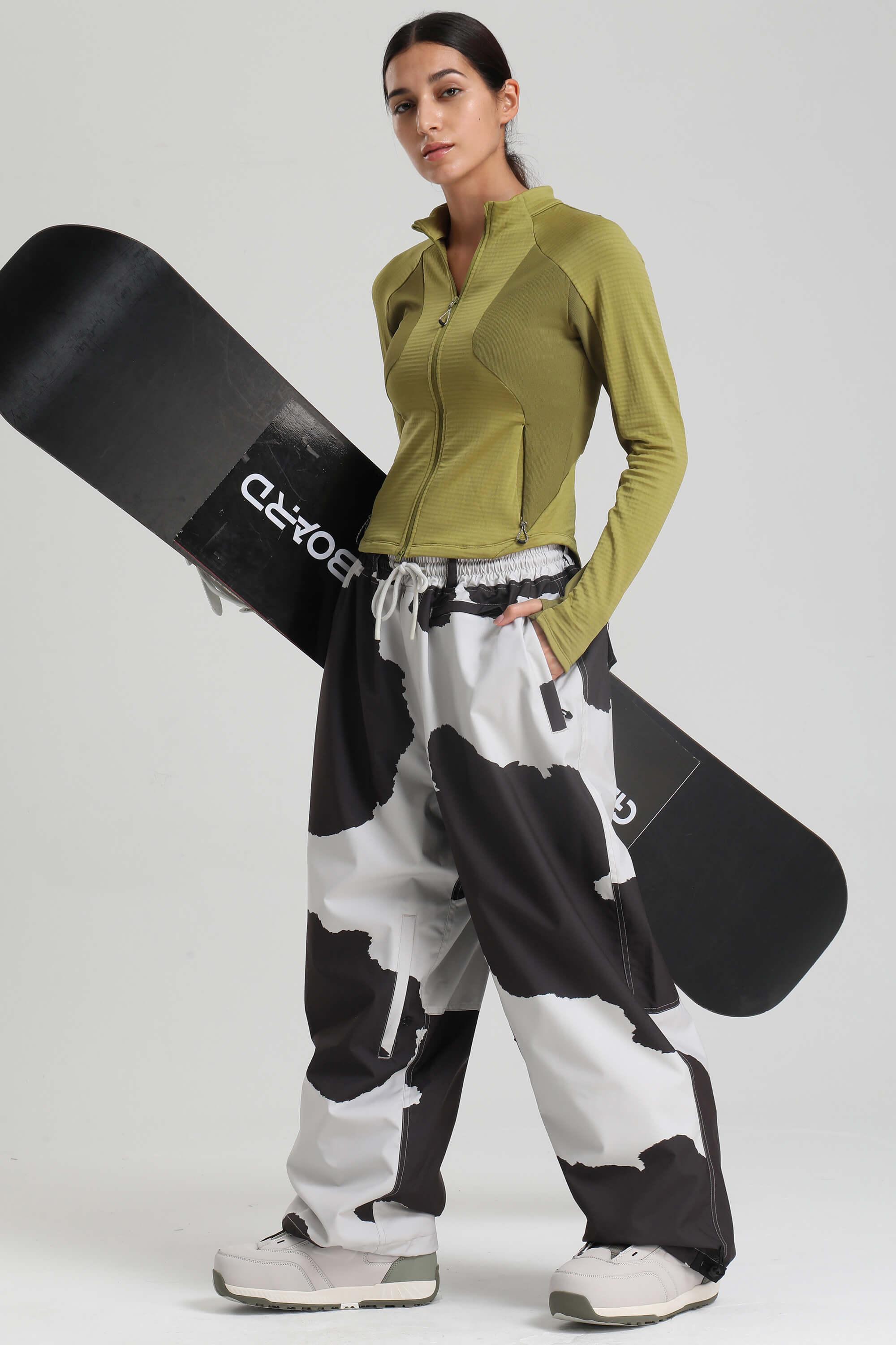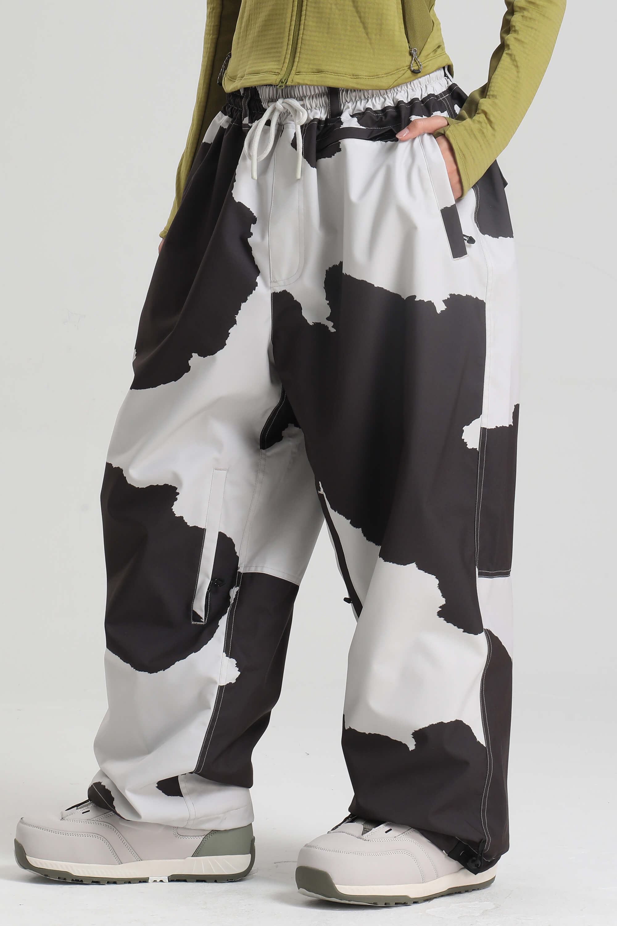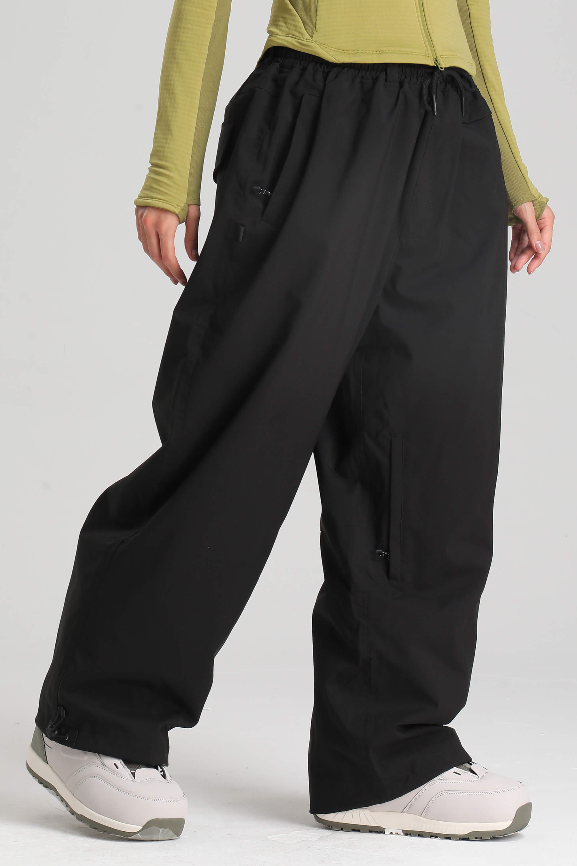 Women's Khaki Baggy Drawstring Durable Snow Pants