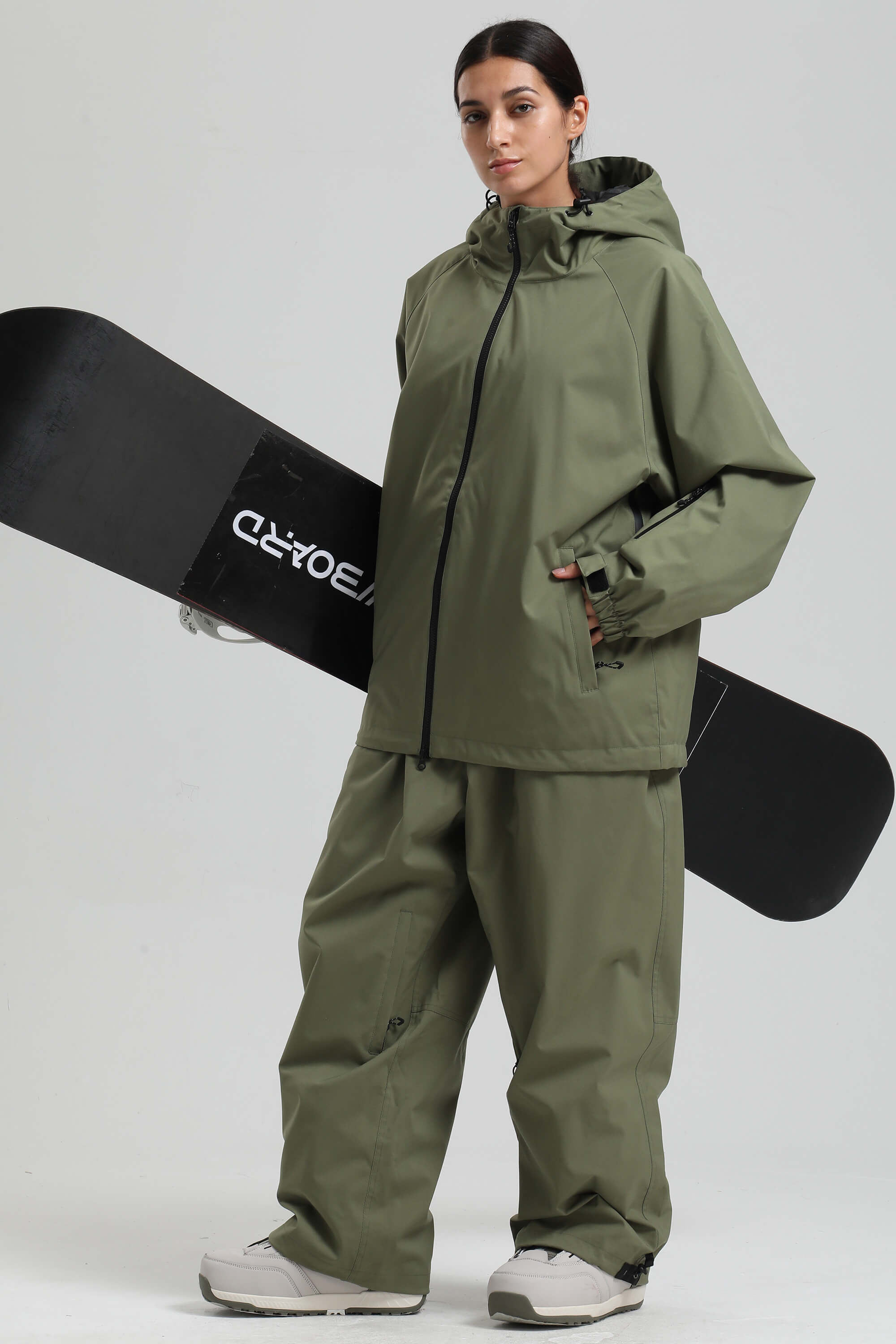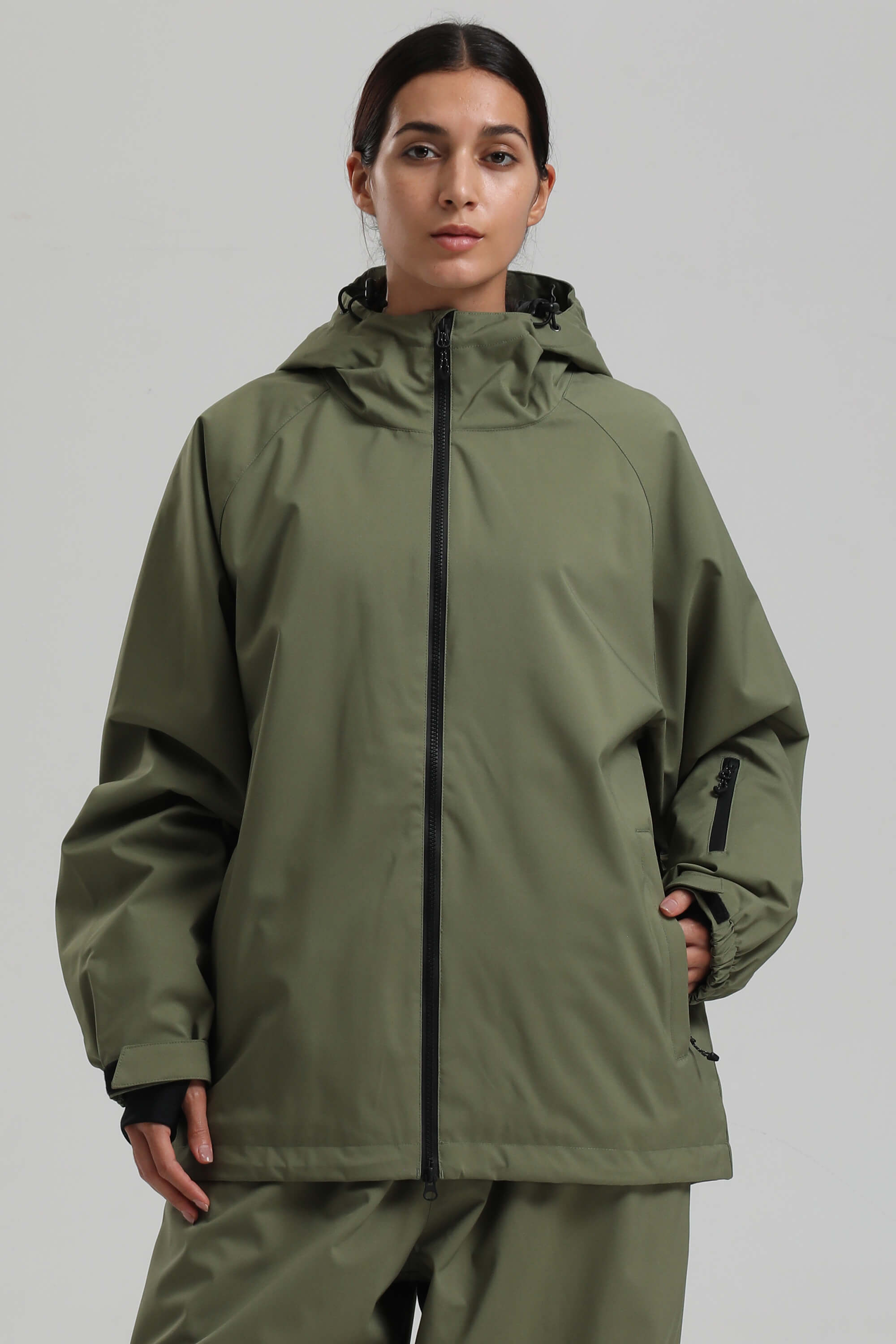Women's Army Green Dual-Vent Minimalist Waterproof Insulated Snow Jacket