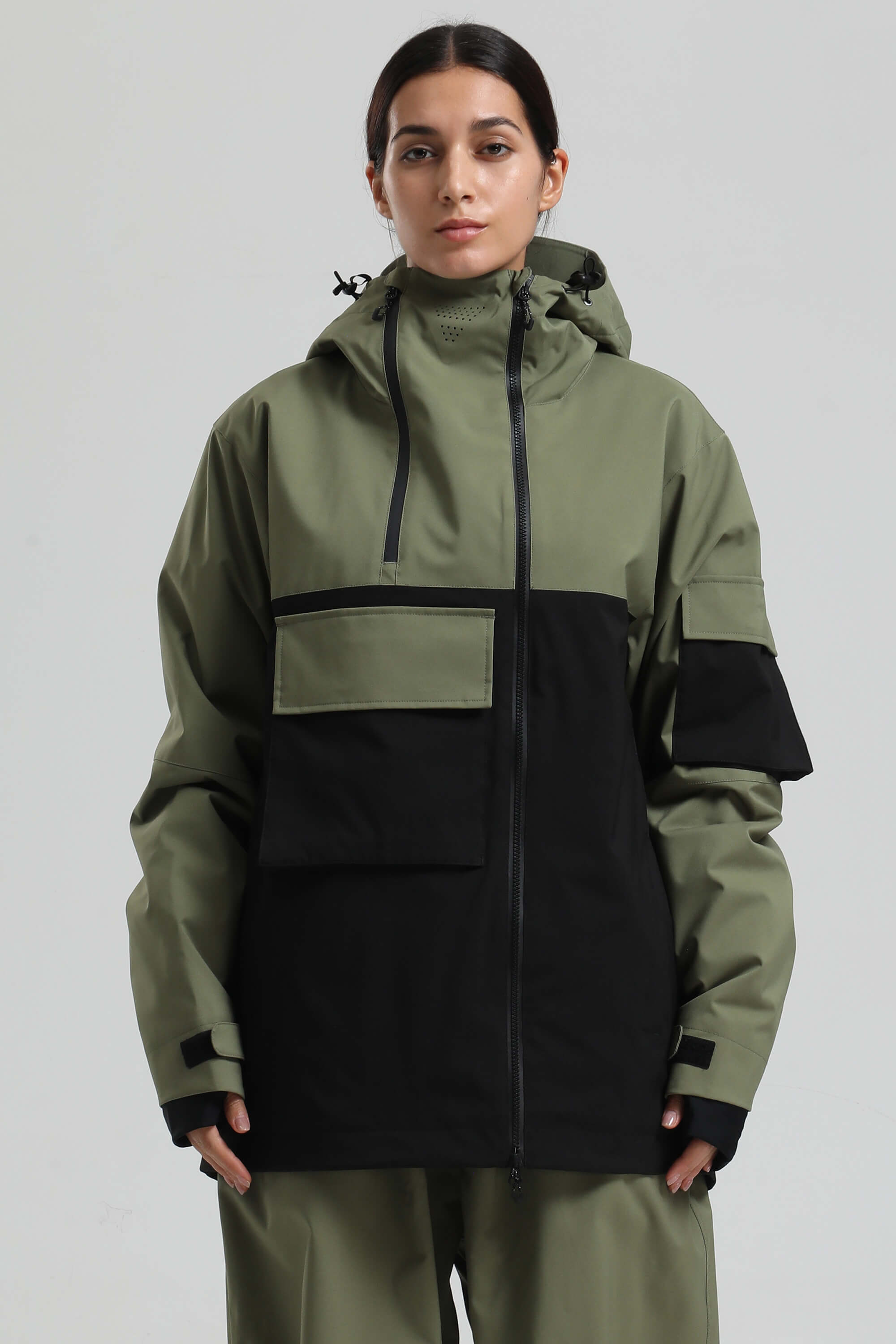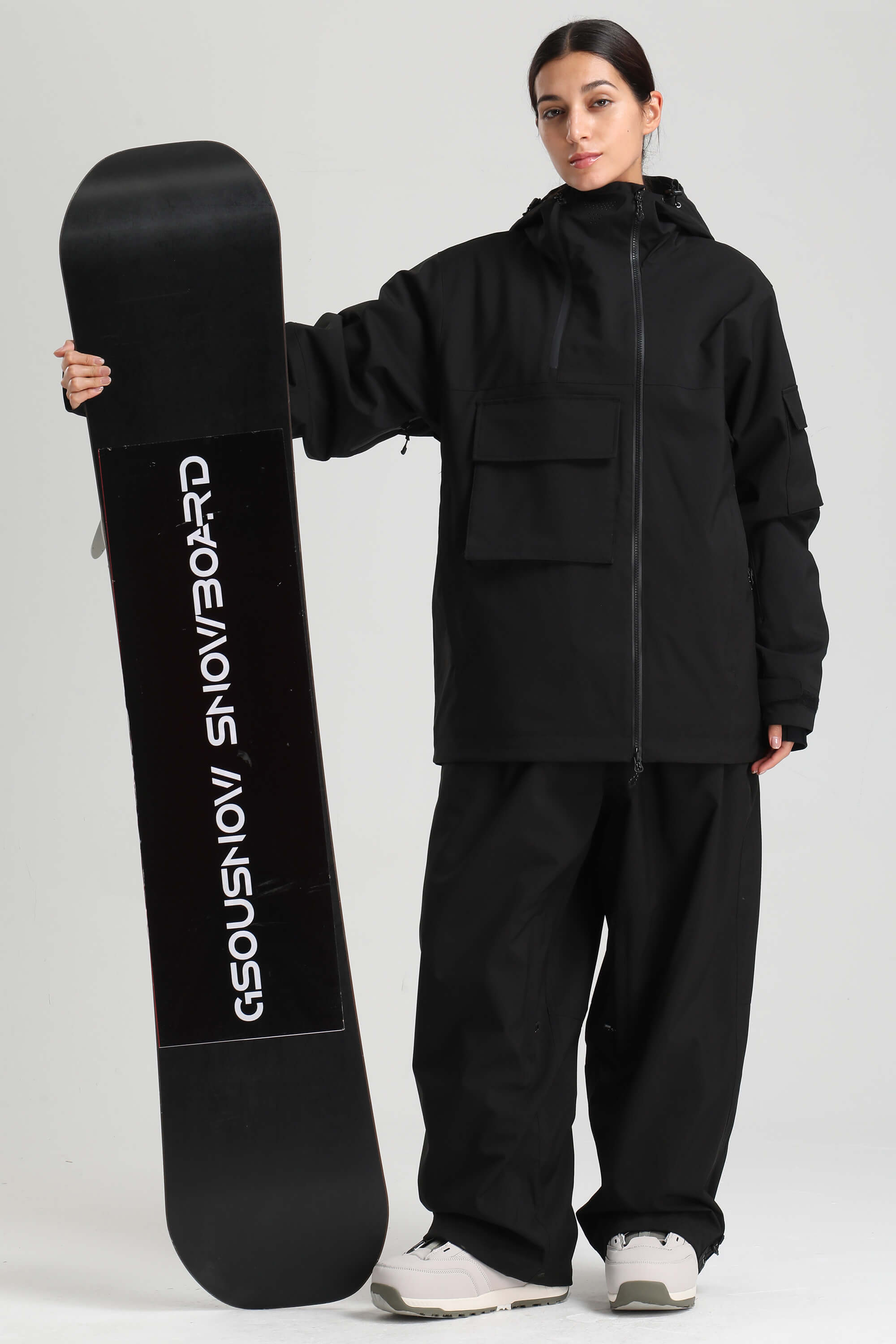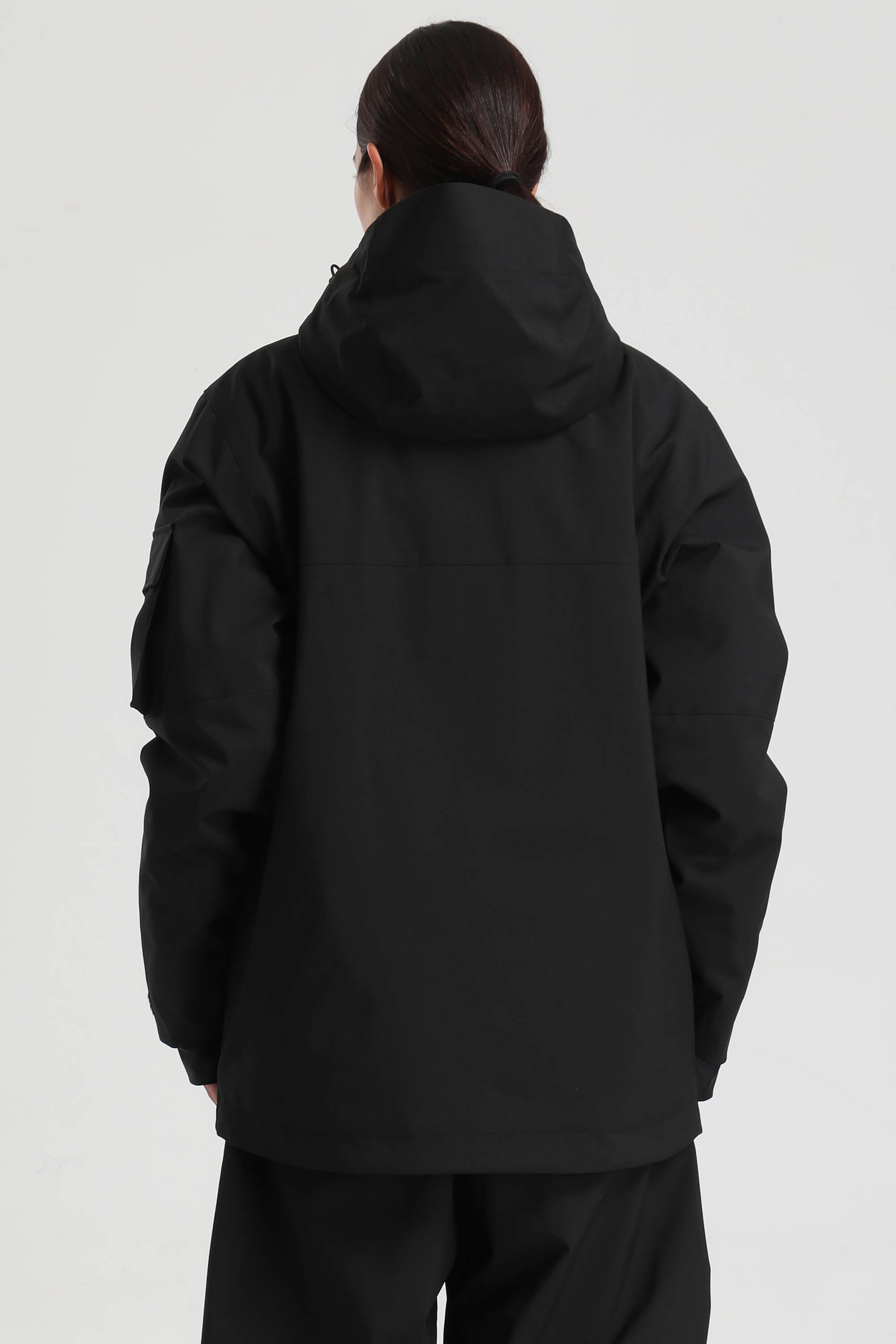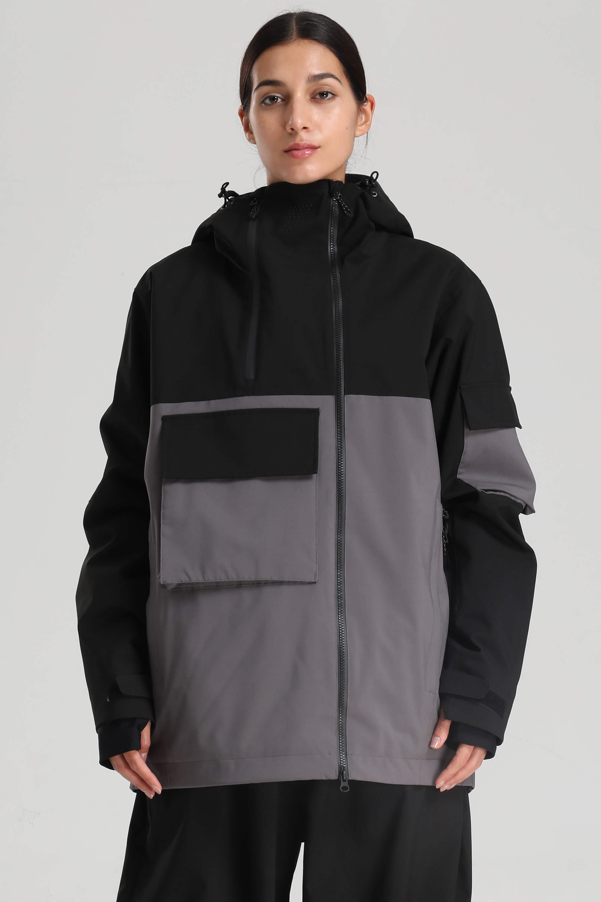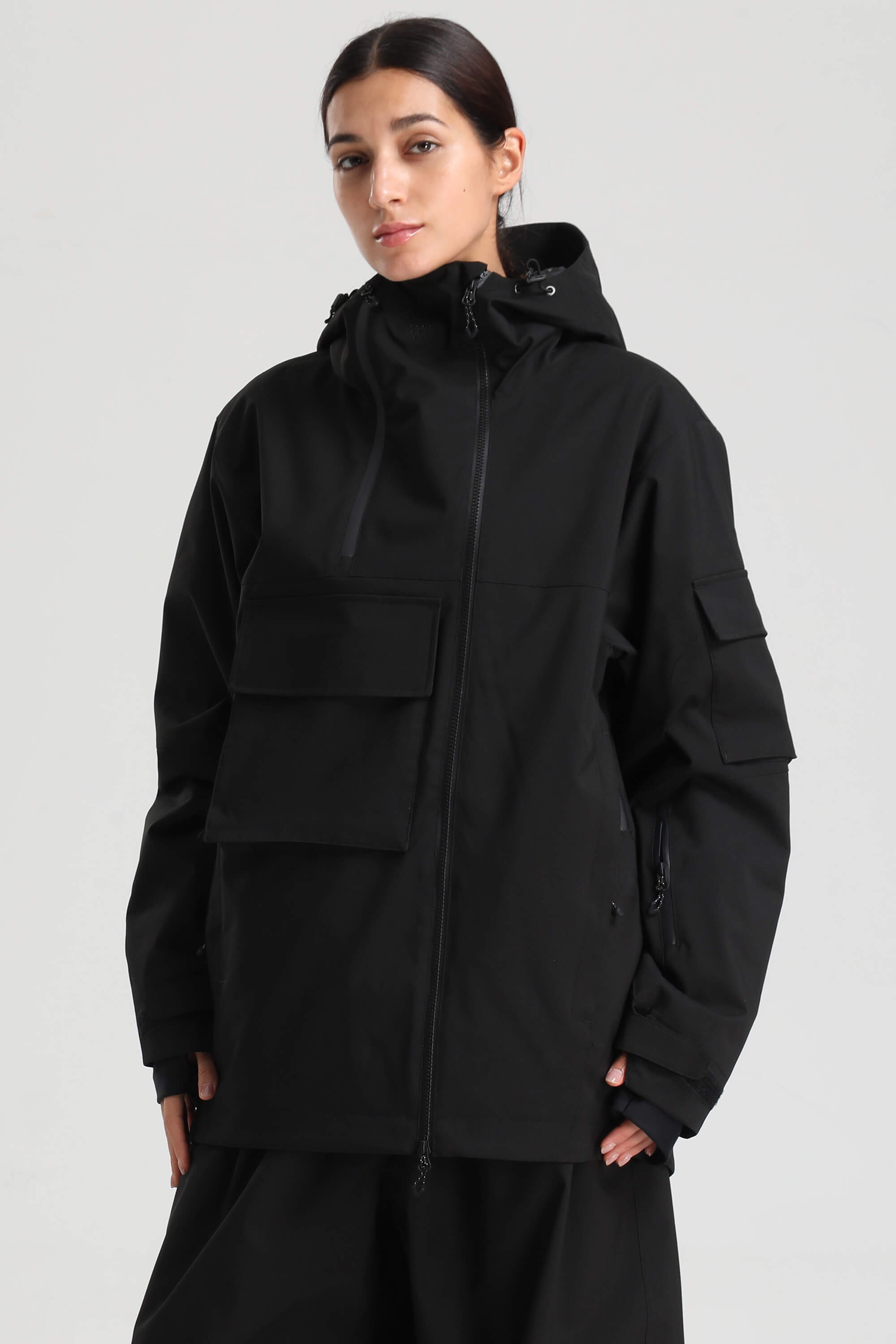 Women's Black Asym-Zip Utility Pocket Waterproof Snow Jacket