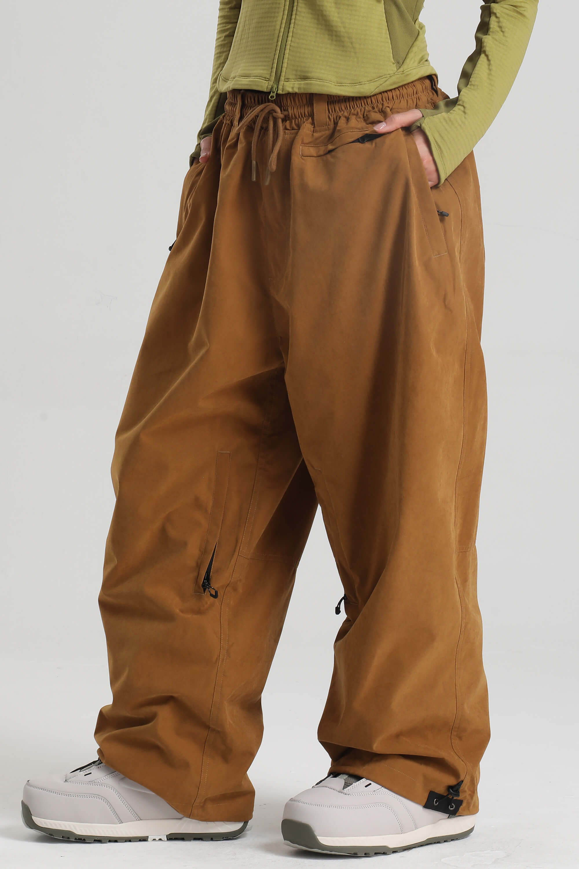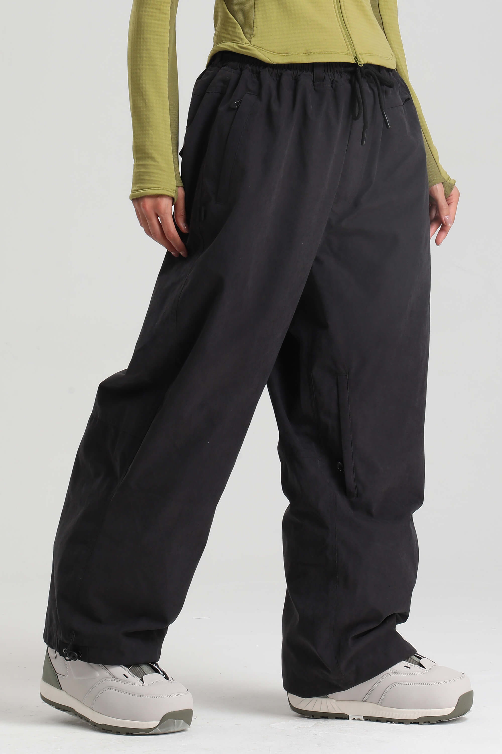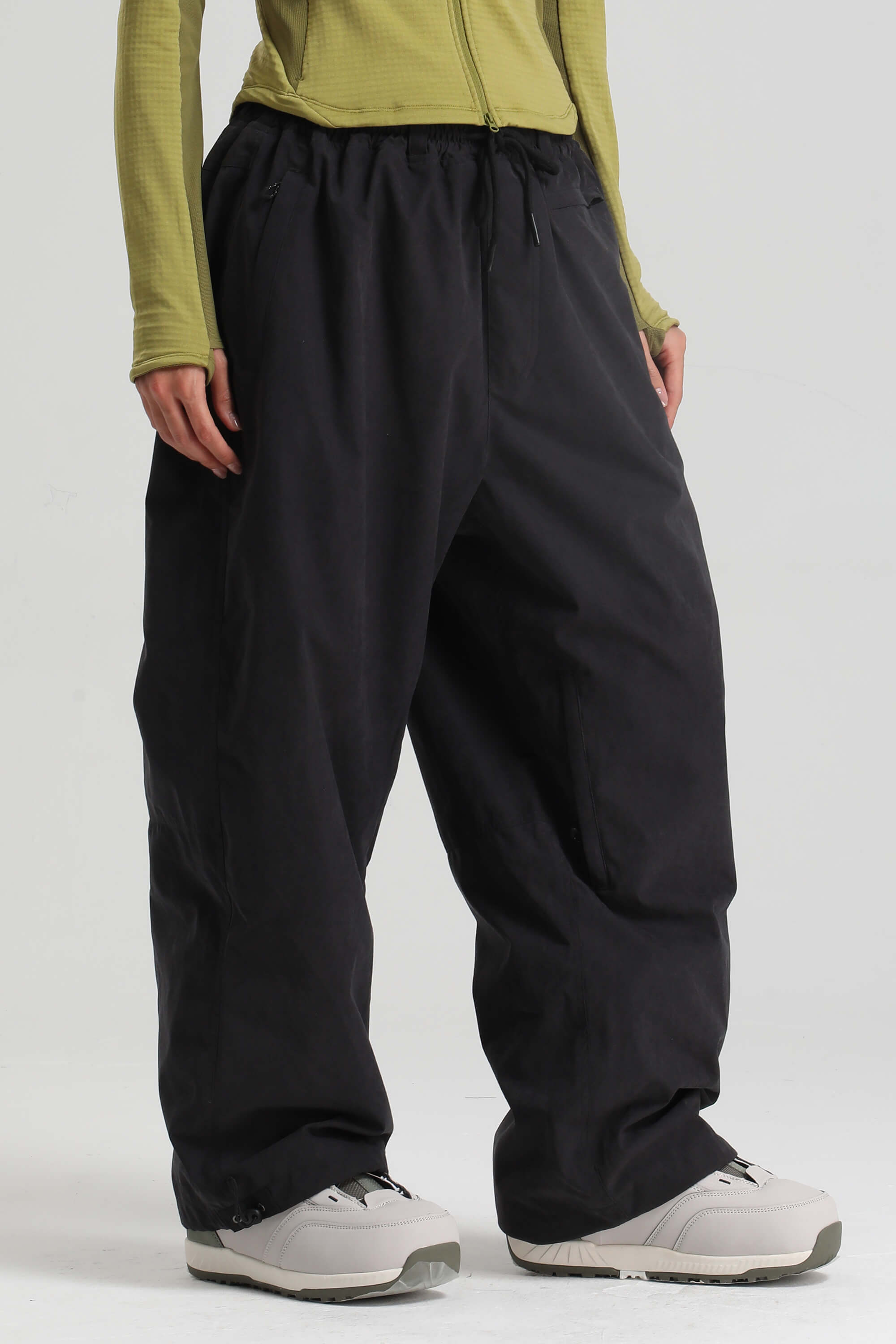 Women's Black Baggy Soft Brushed Retro Snow Pants