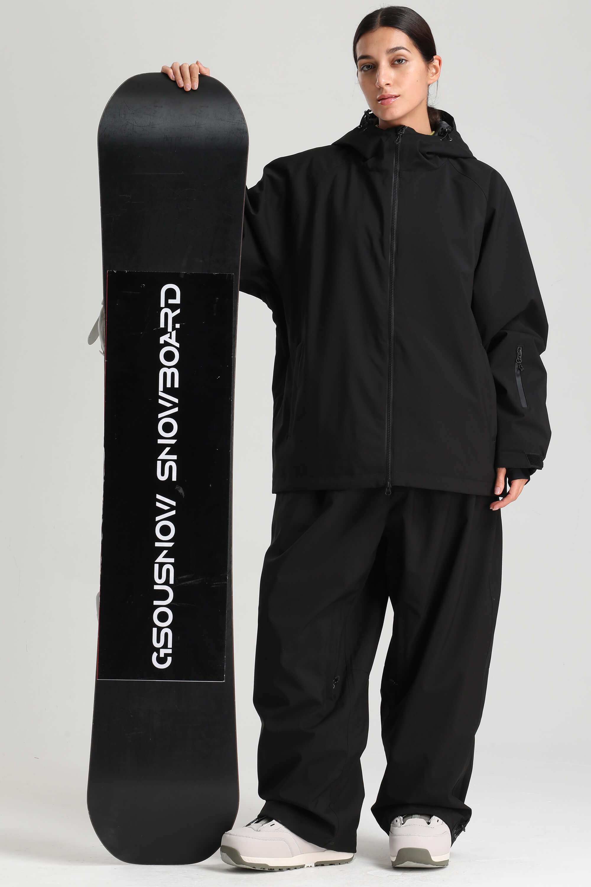 Women's Black Dual-Vent Minimalist Waterproof Insulated Snow Jacket