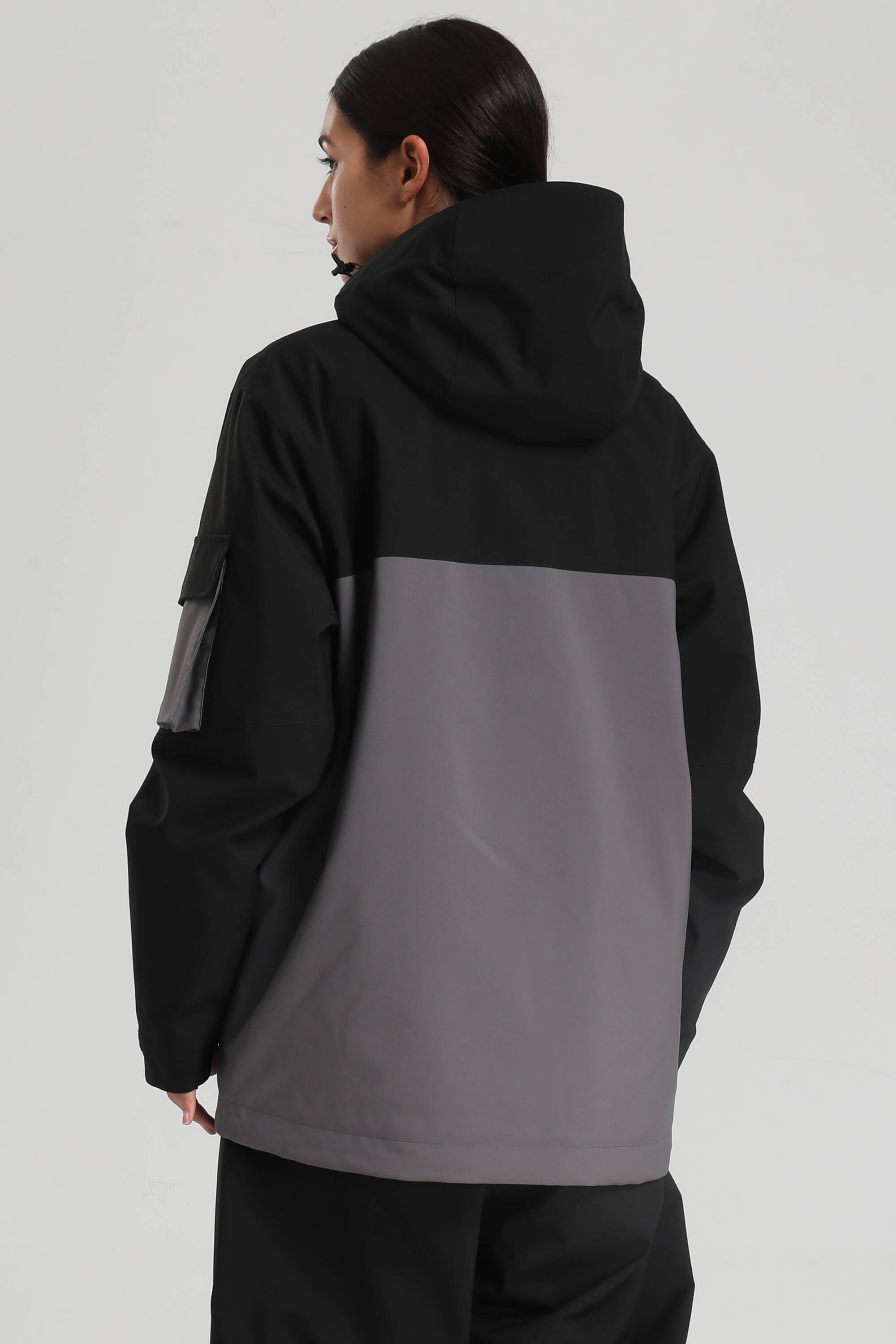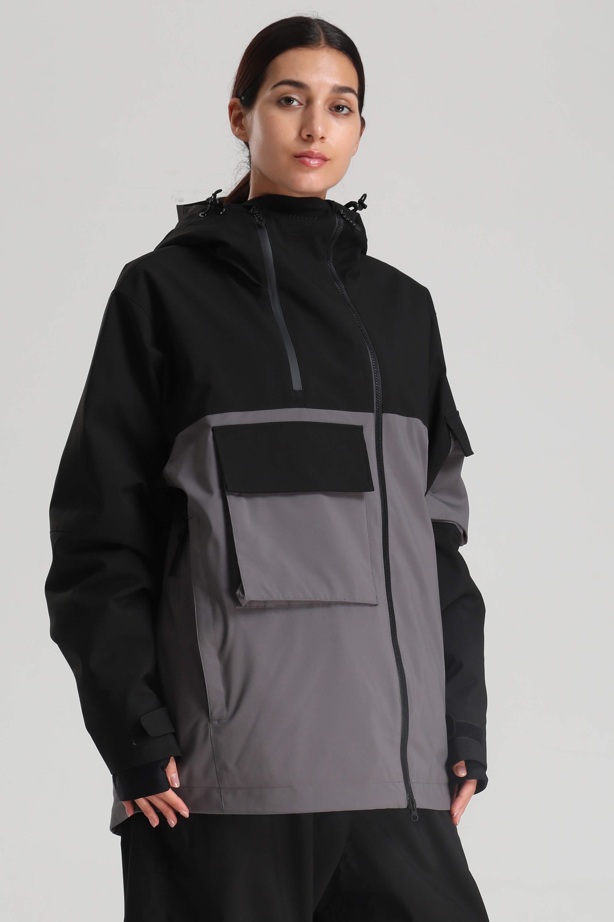 Women's Black & Grey Asym-Zip Utility Pocket Waterproof Snow Jacket
