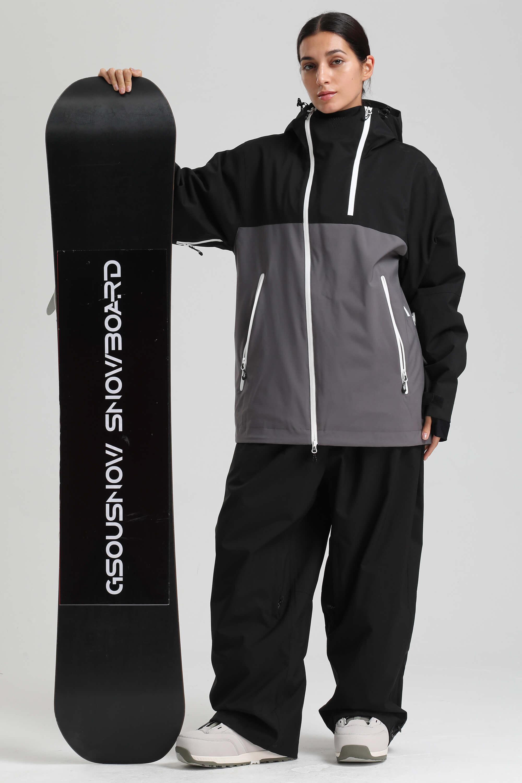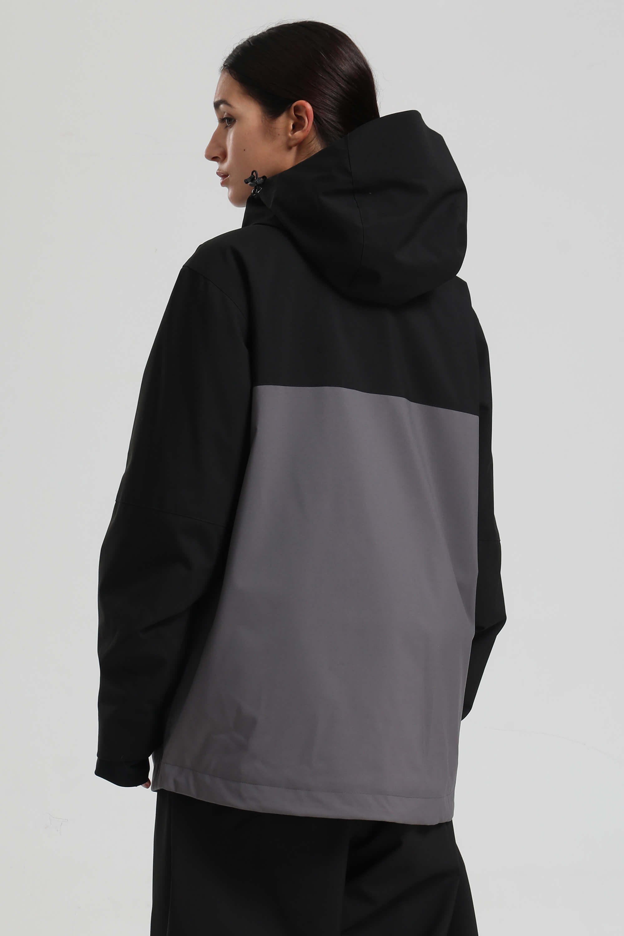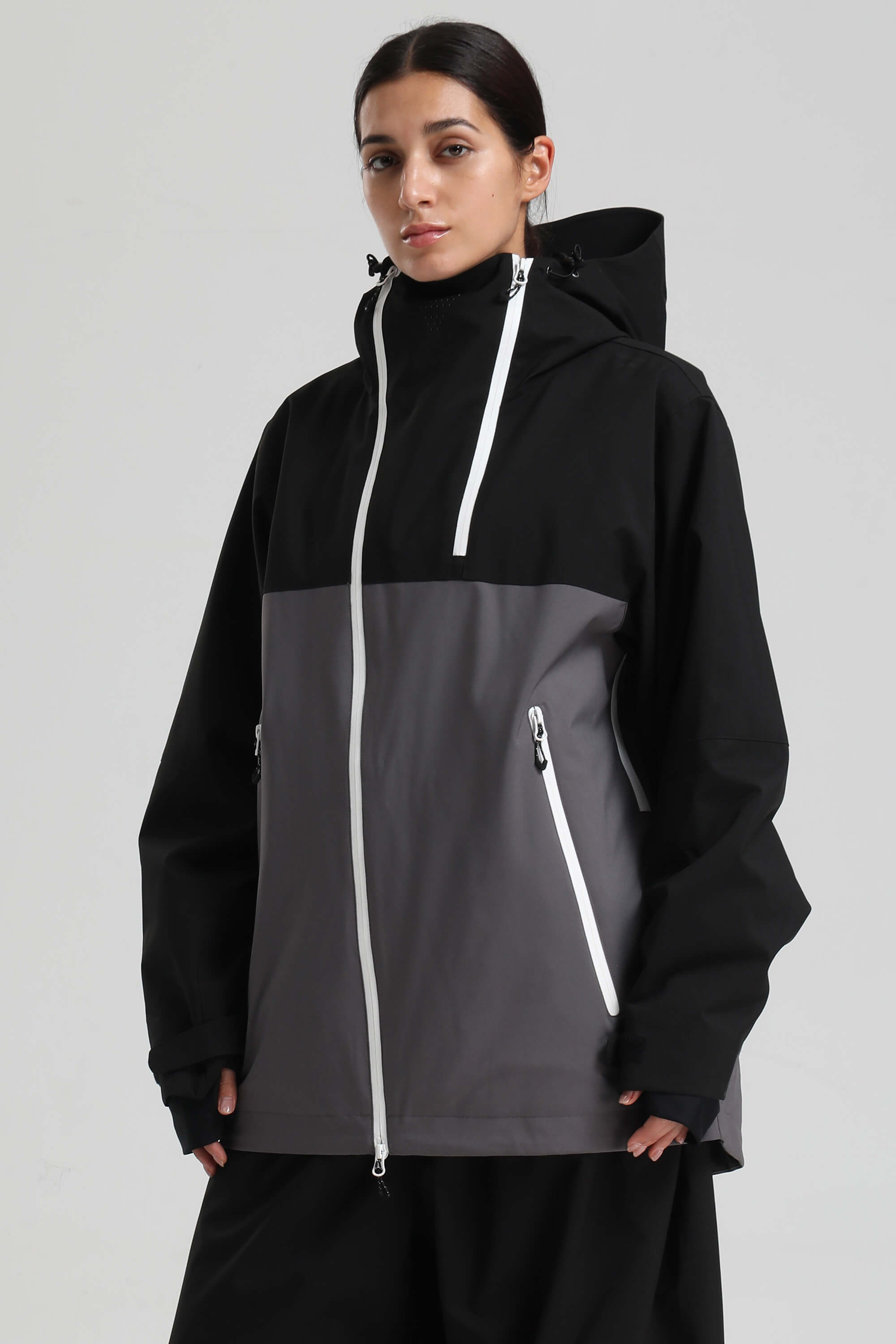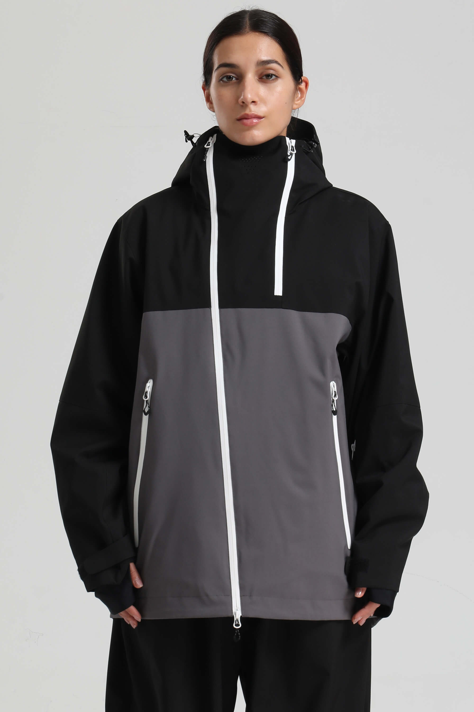 Women's Black & Grey Face Vent Asym-Zip Waterproof Insulated Snow Jacket