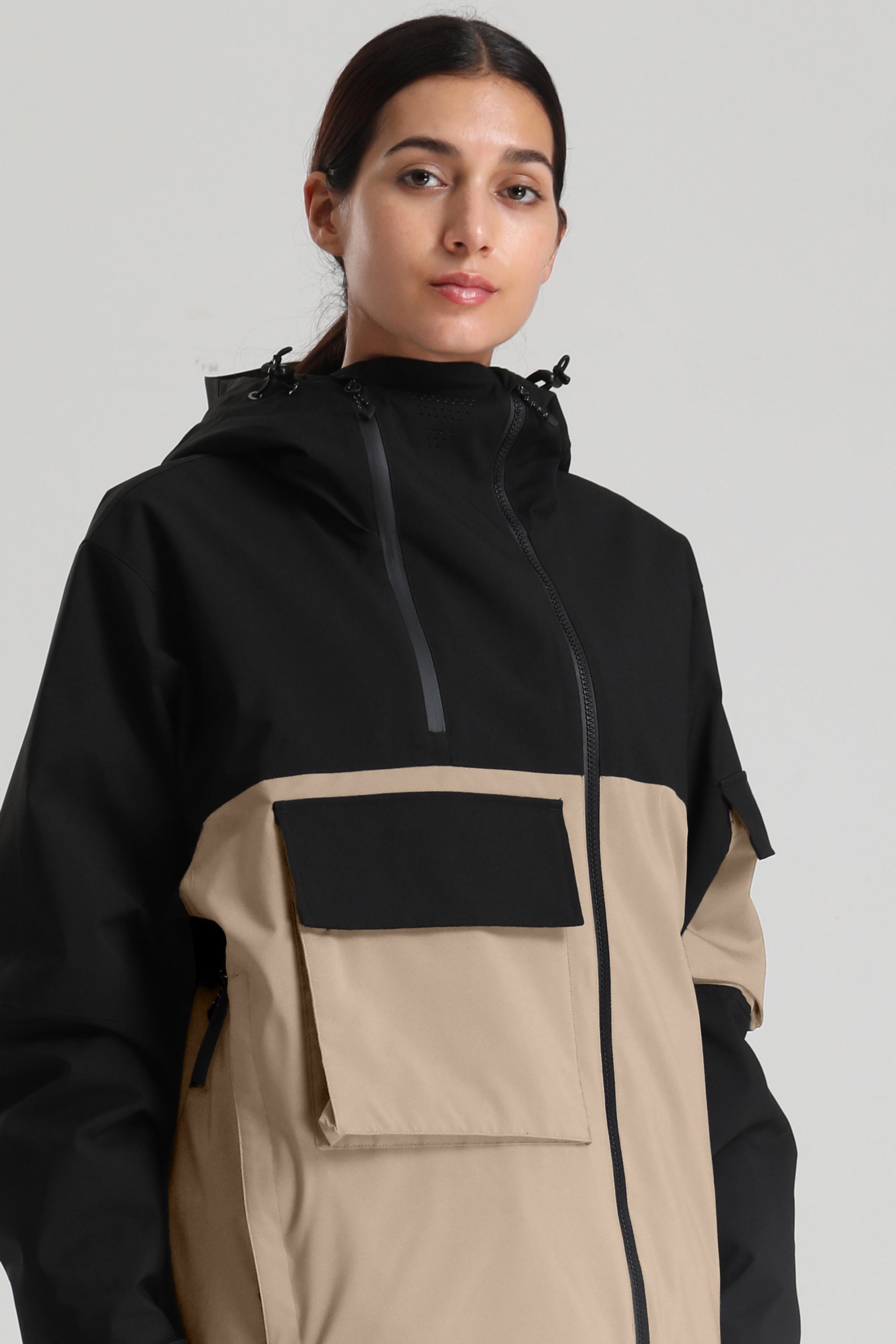 Women's Black & Khaki Asym-Zip Utility Pocket Waterproof Snow Jacket