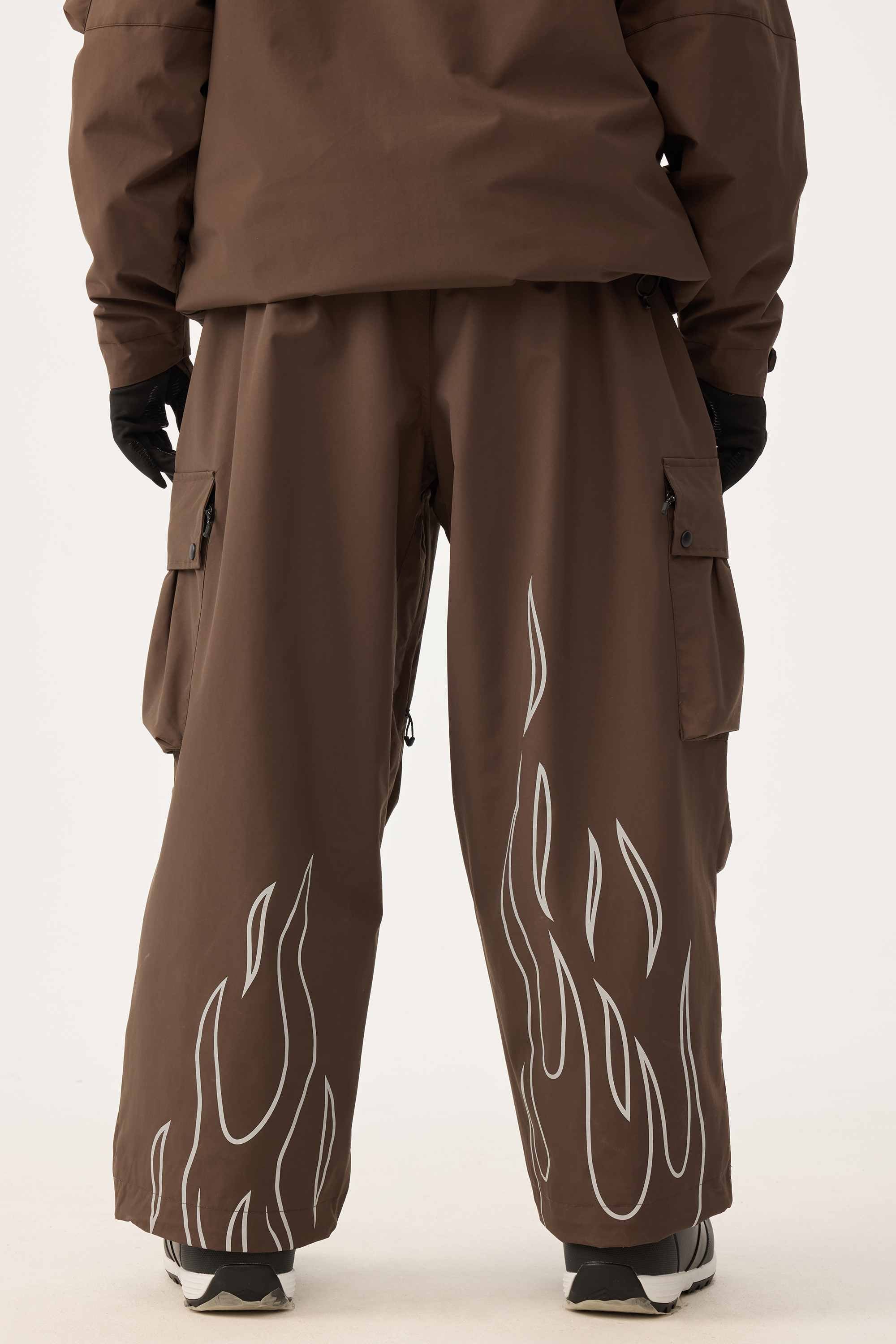Women's Black Reflective Flame Baggy Utility Snow Pants