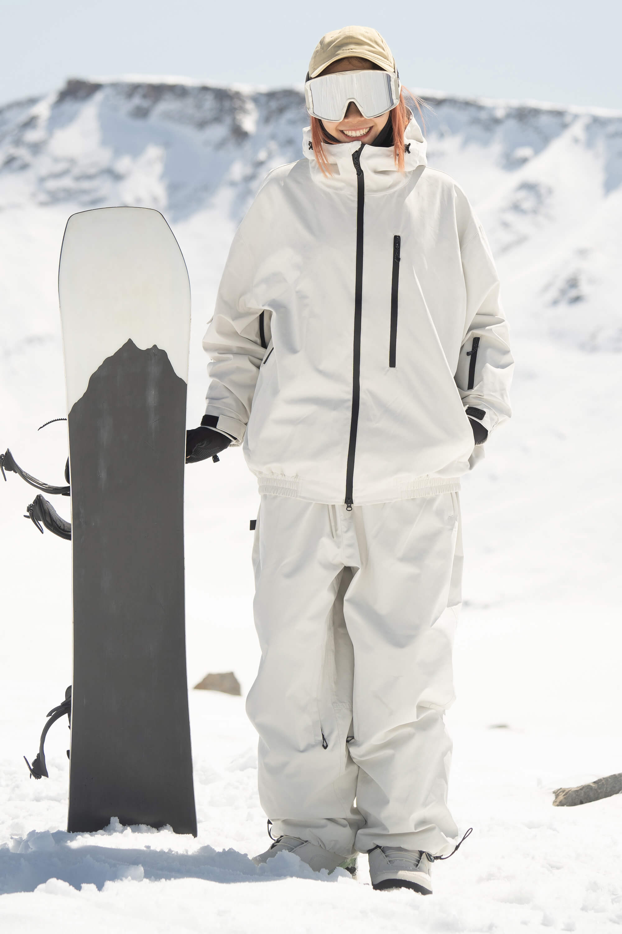 Women's Black Washed Effect Minimalist Multi-Pocket Waterproof Snow Jacket
