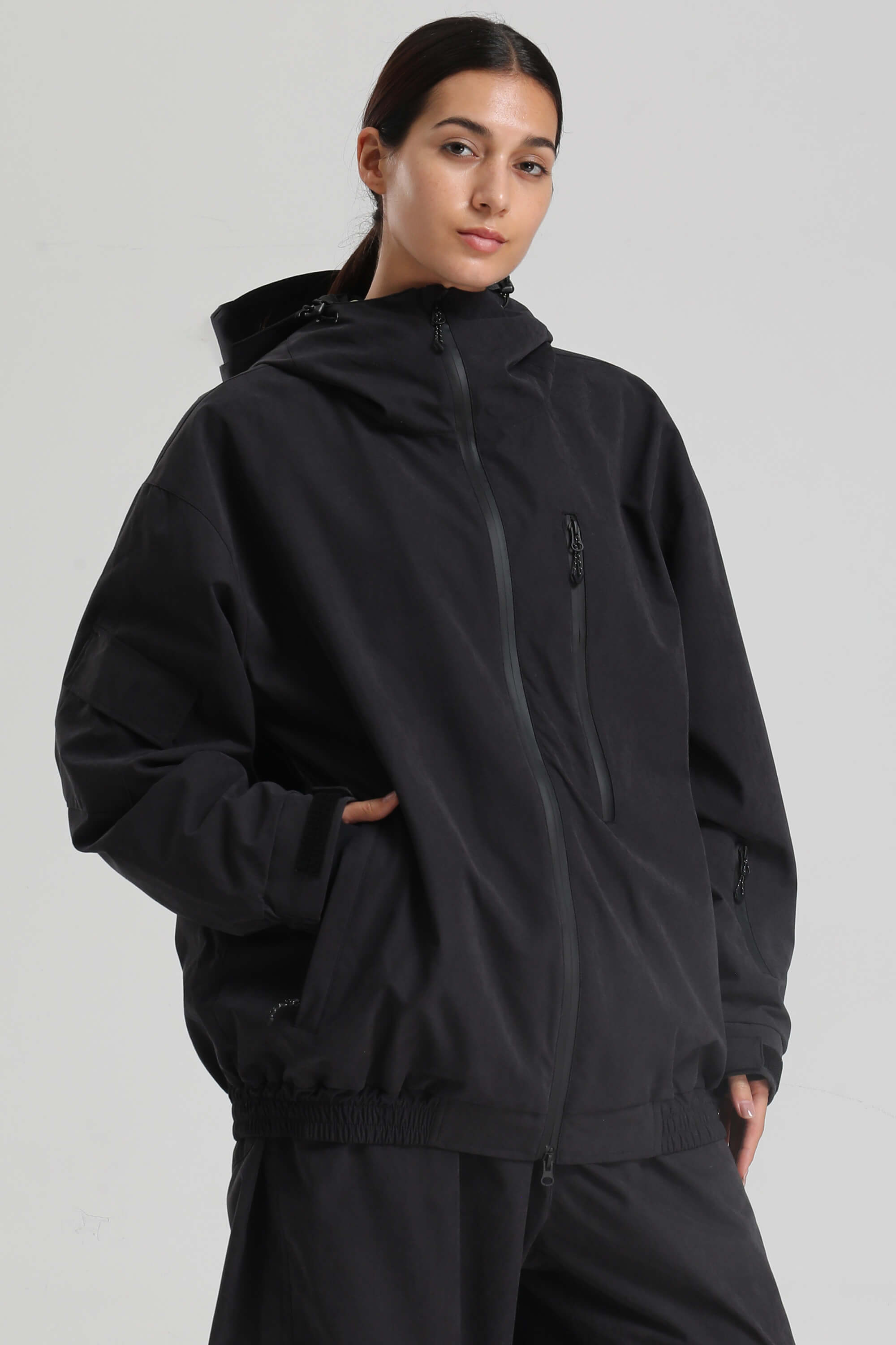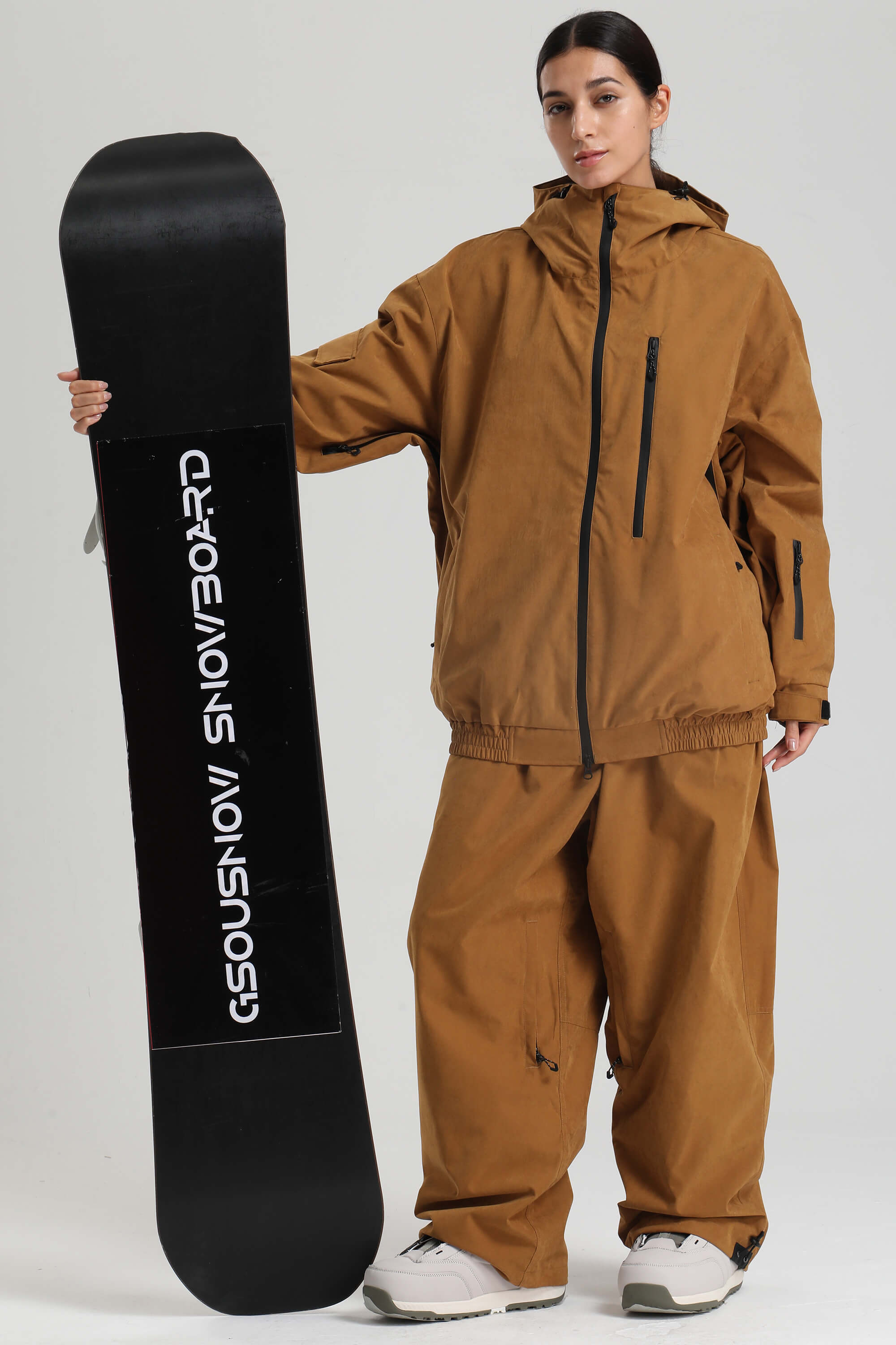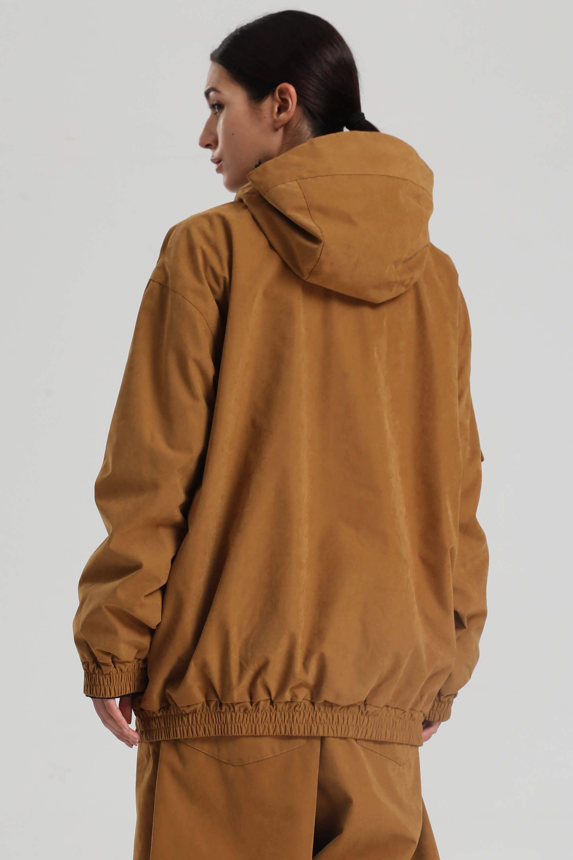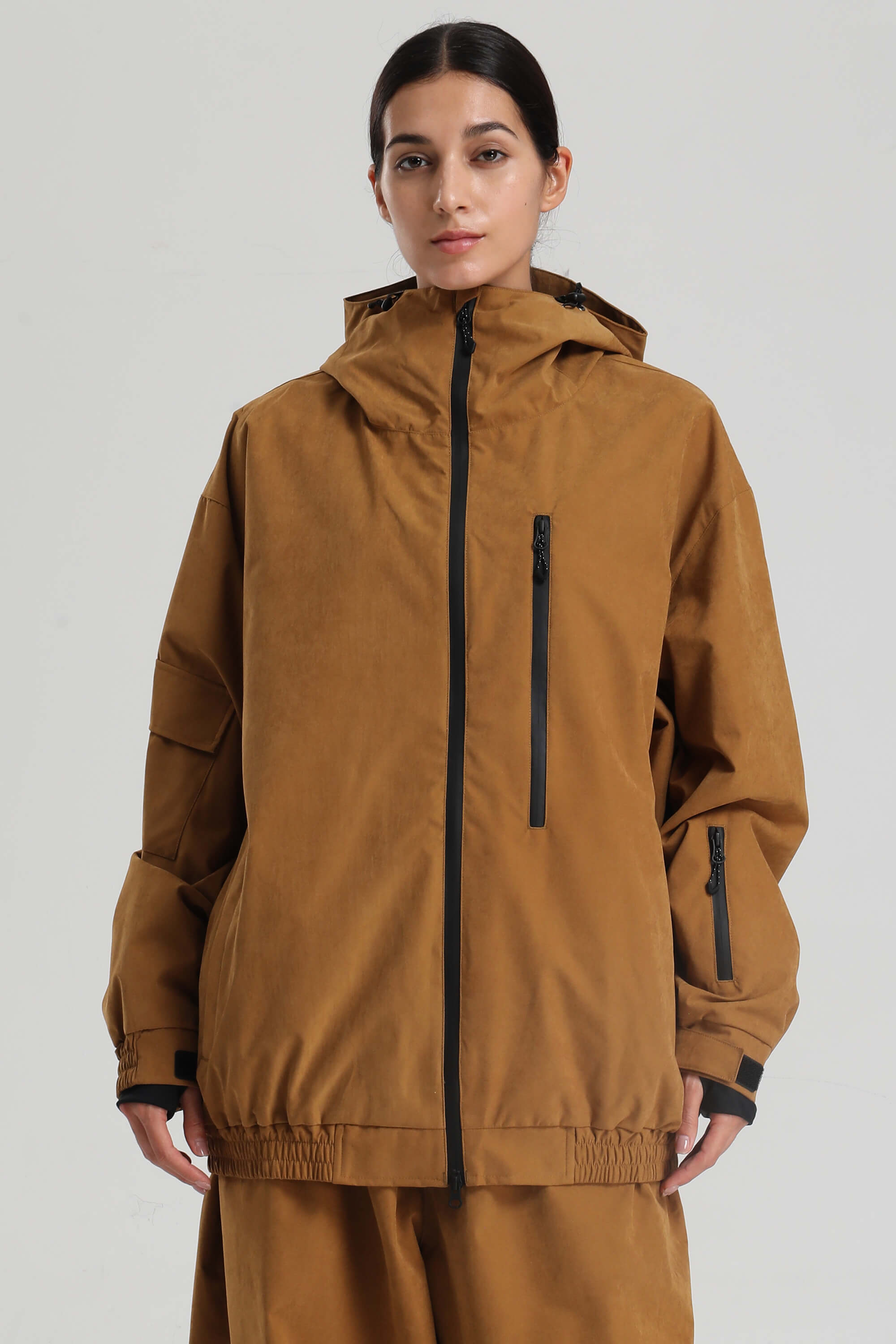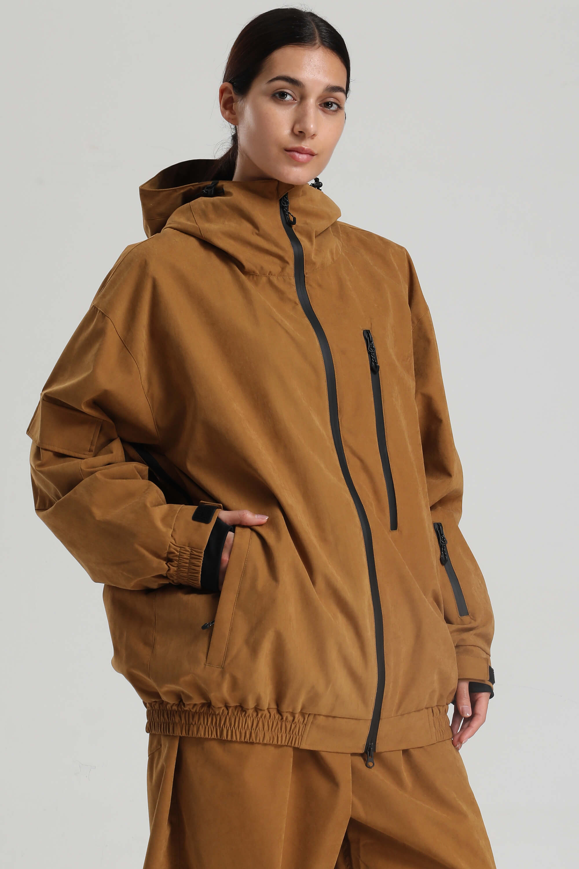 Women's Caramel Washed Effect Minimalist Multi-Pocket Waterproof Snow Jacket