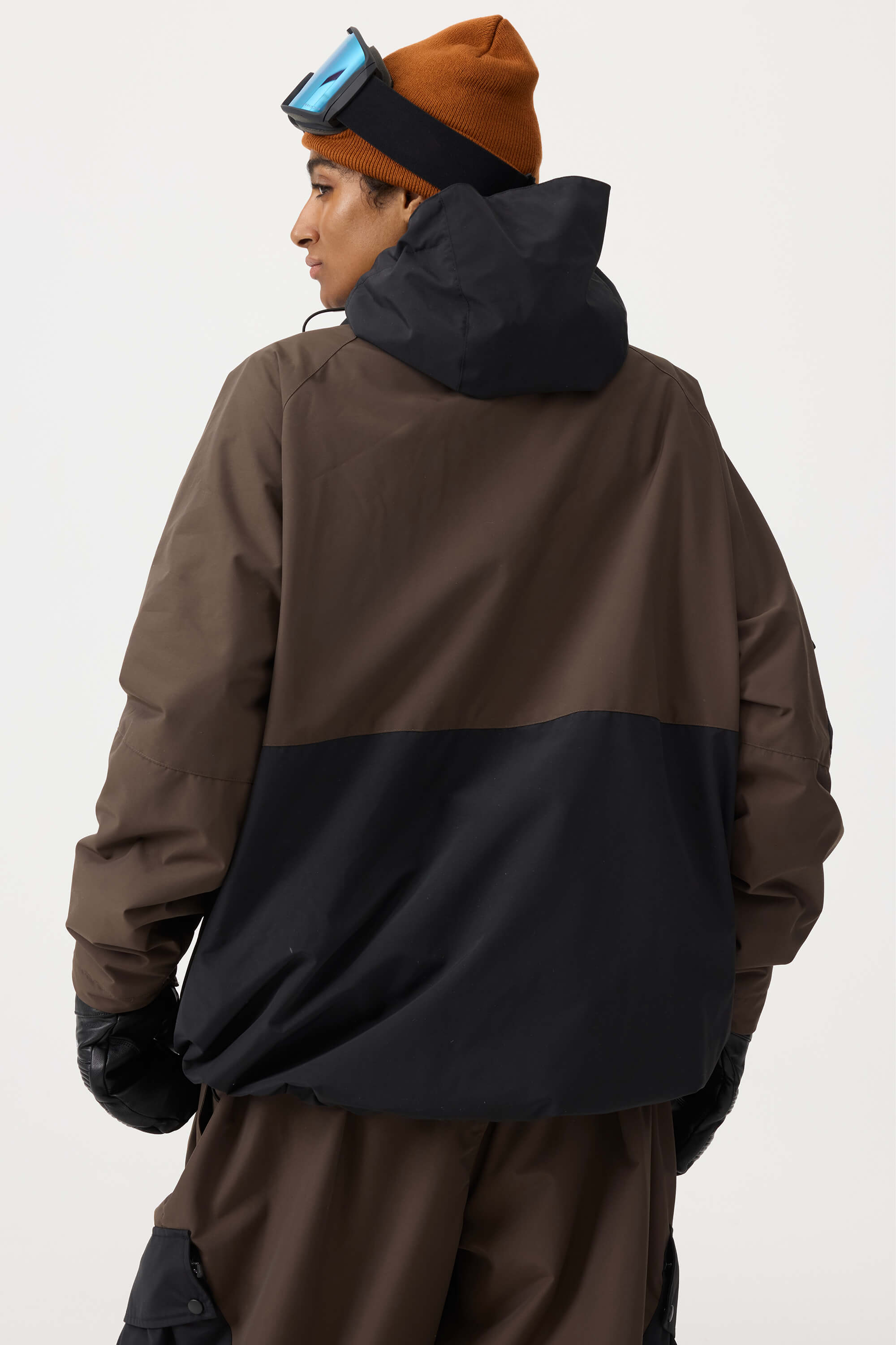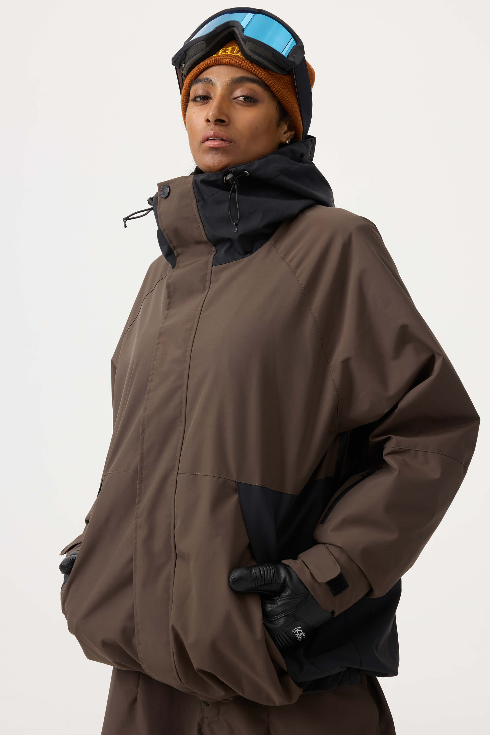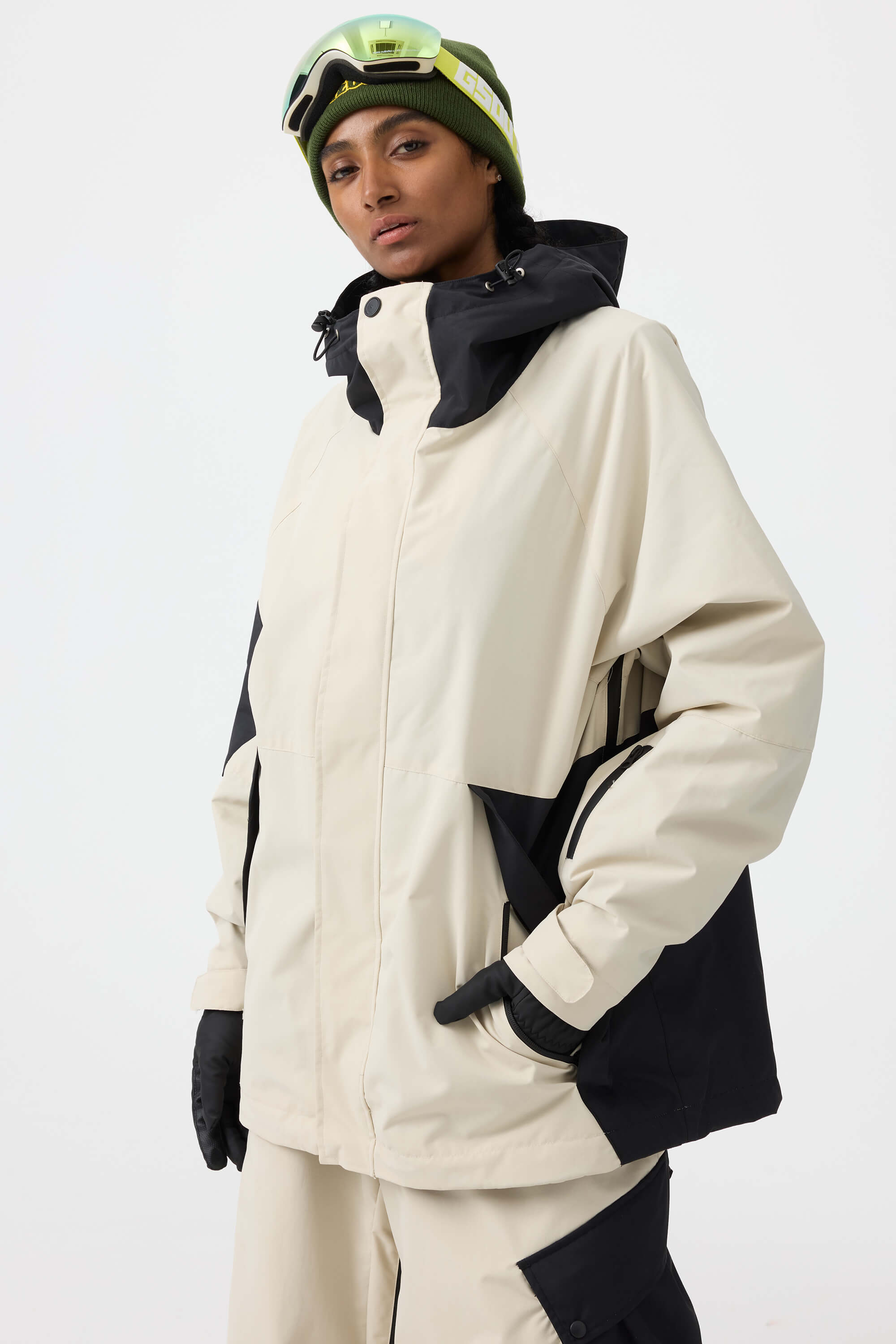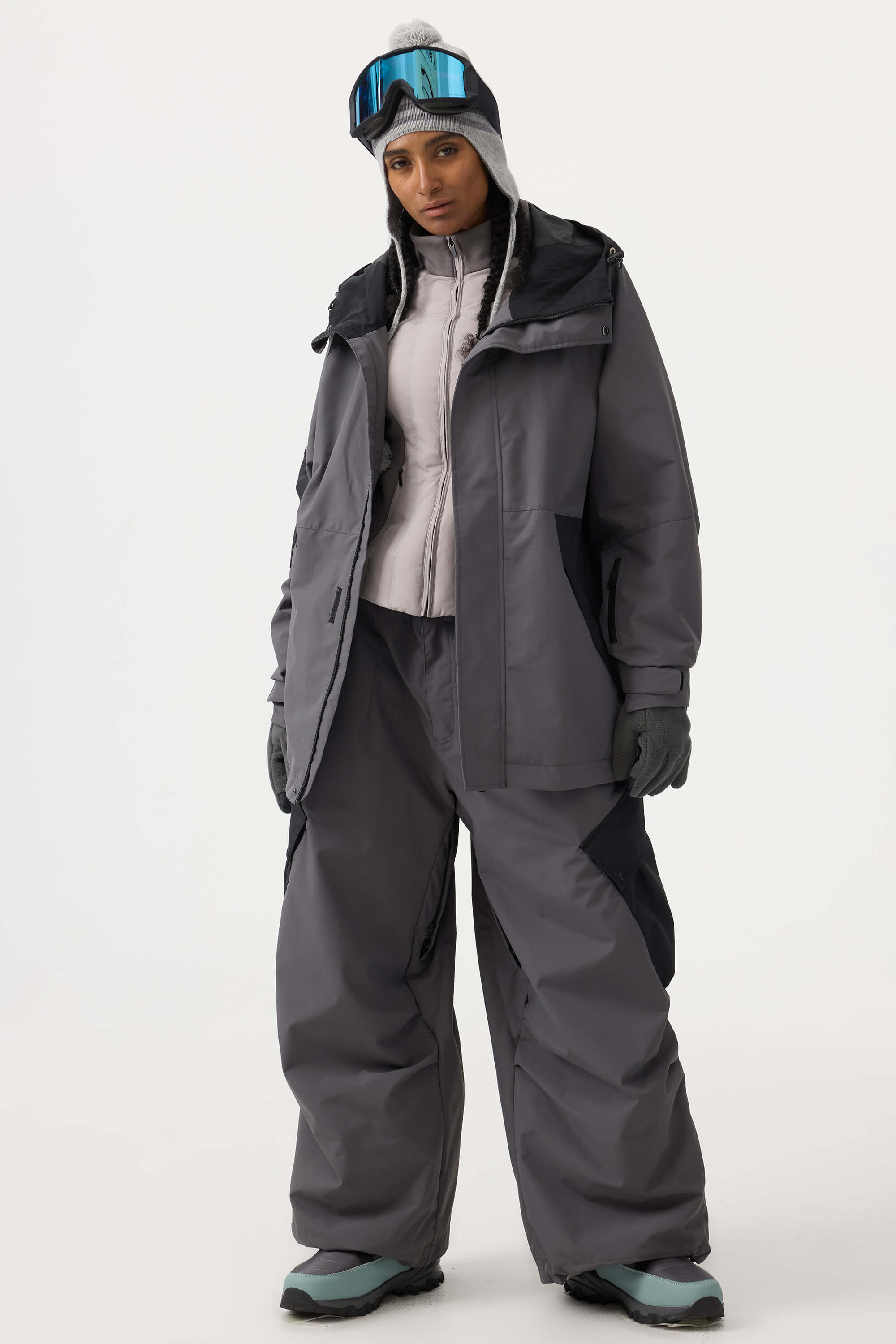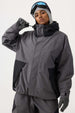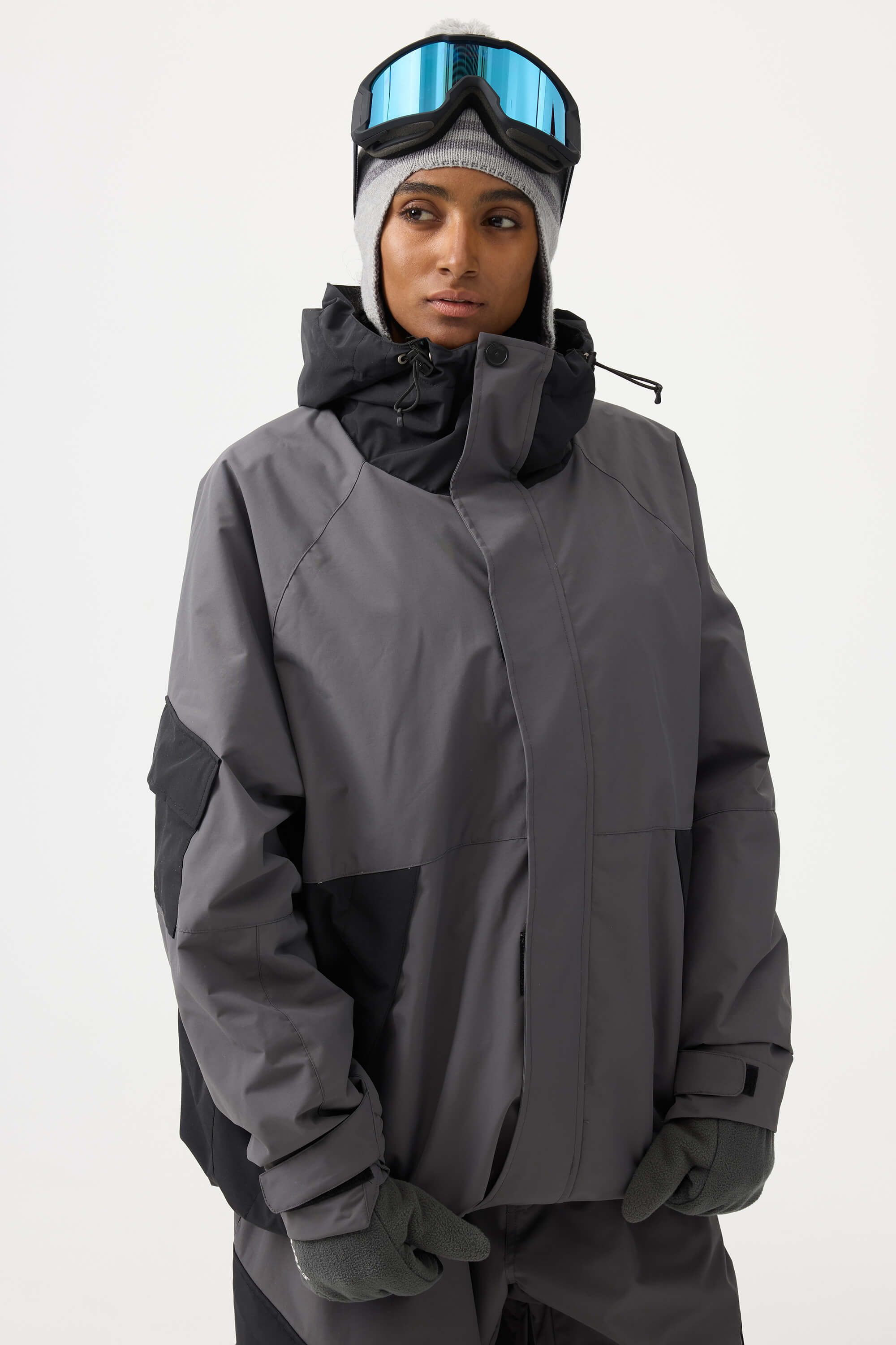 Women's Dark Gray Raglan Sleeve Color Block Waterproof Breathable Snow Jacket