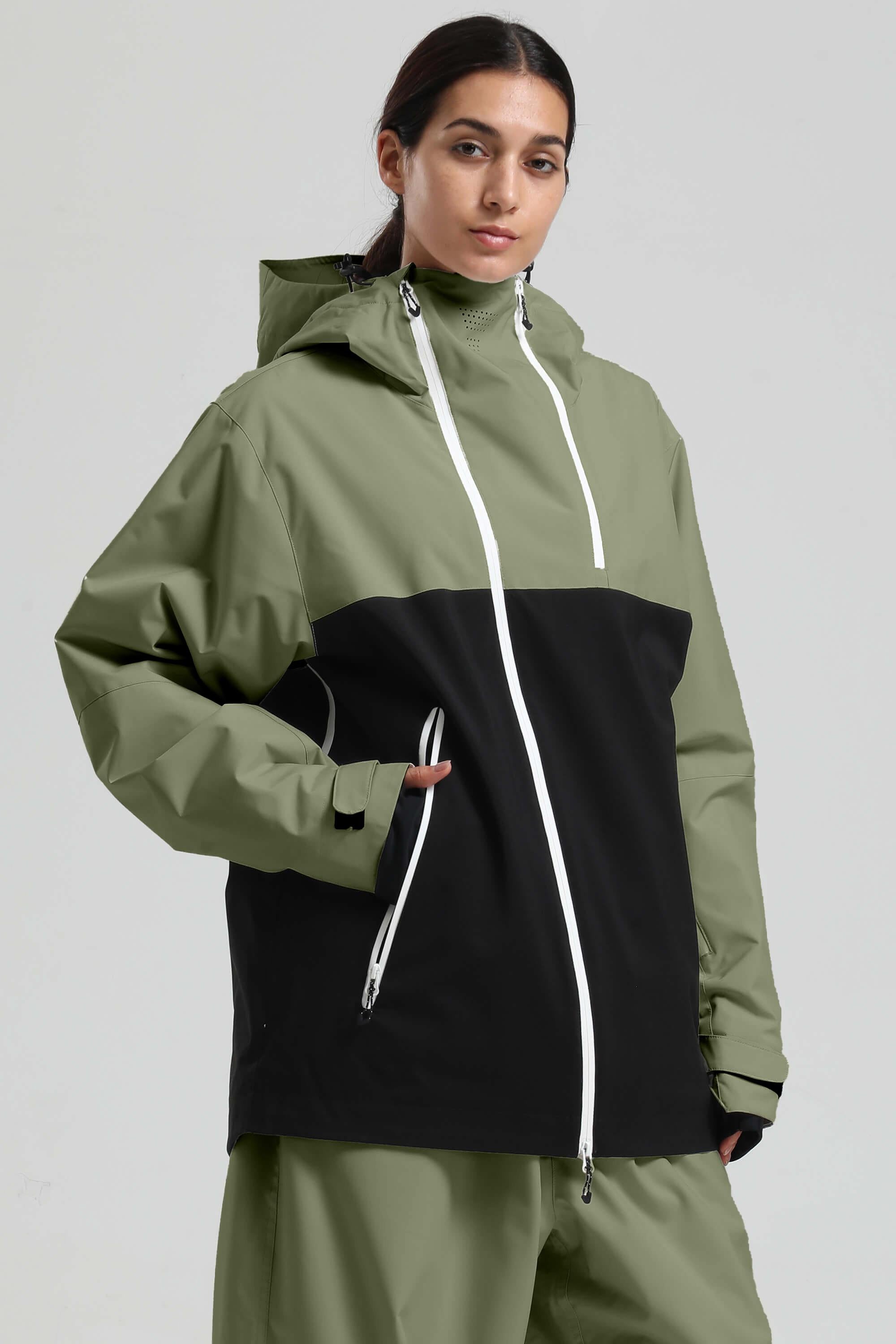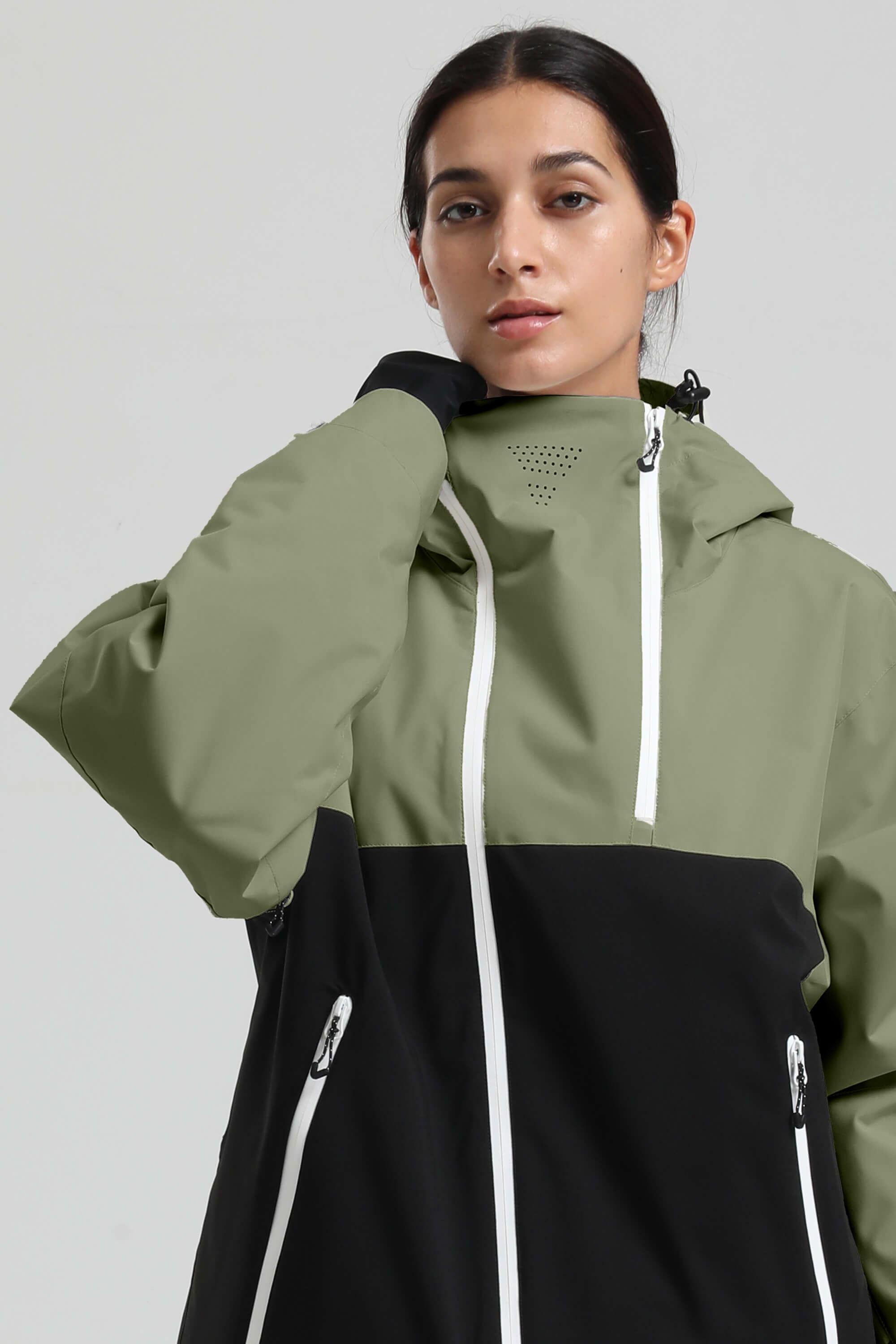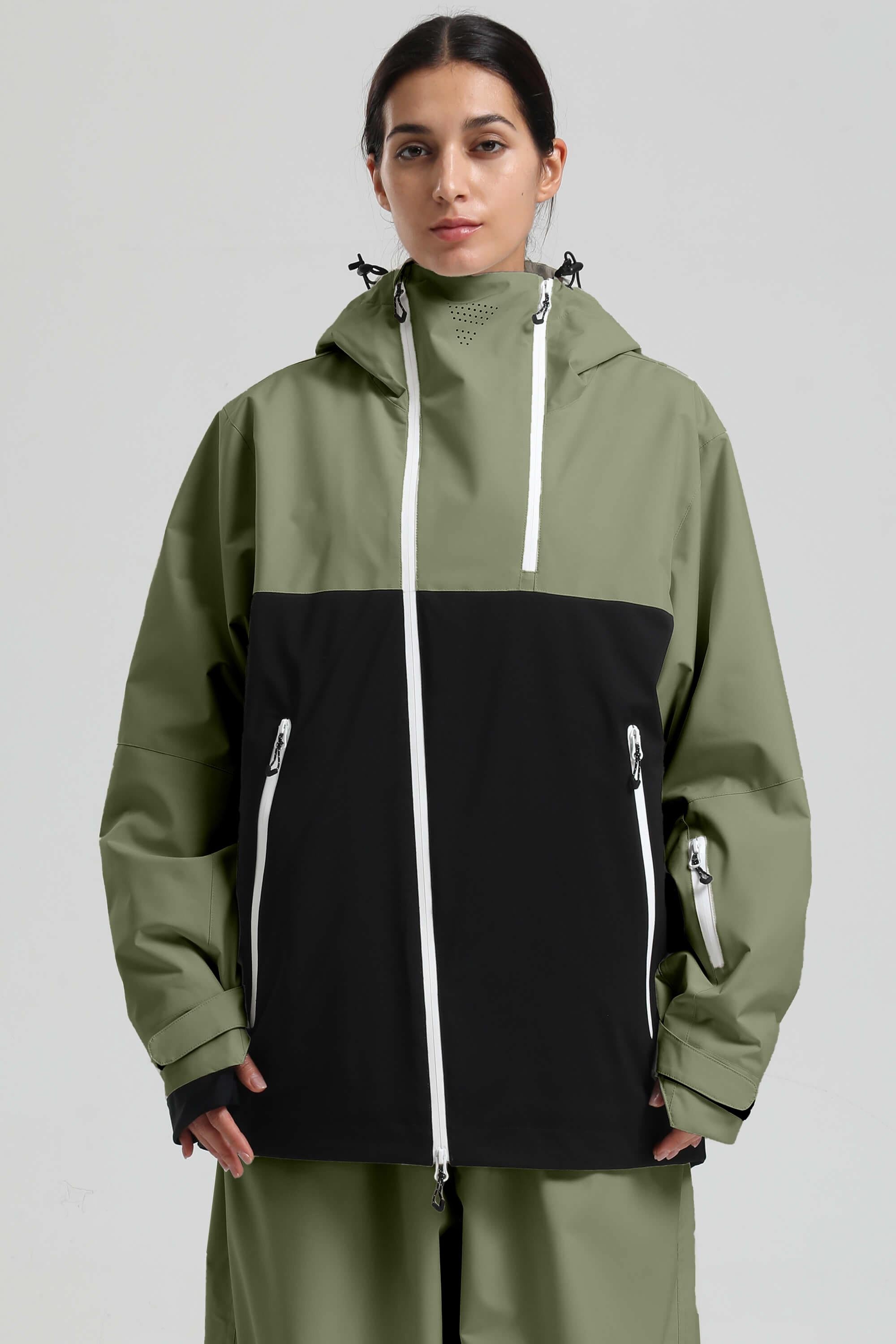 Women's Green & Black Face Vent Asym-Zip Waterproof Insulated Snow Jacket