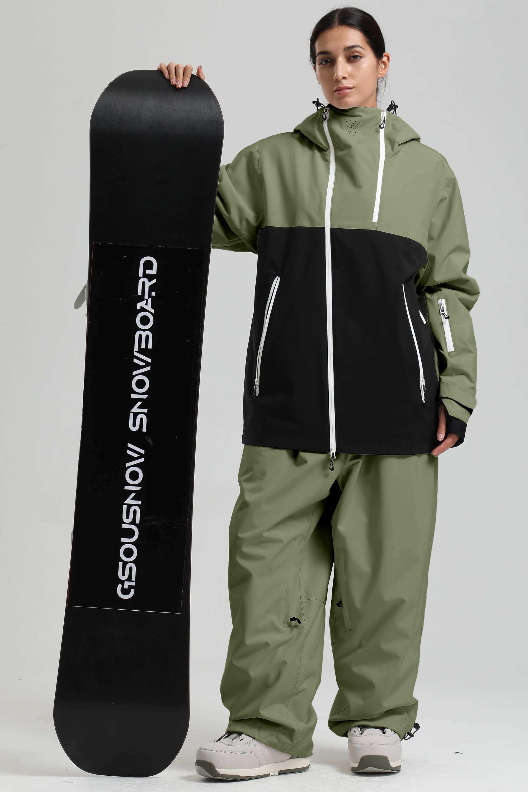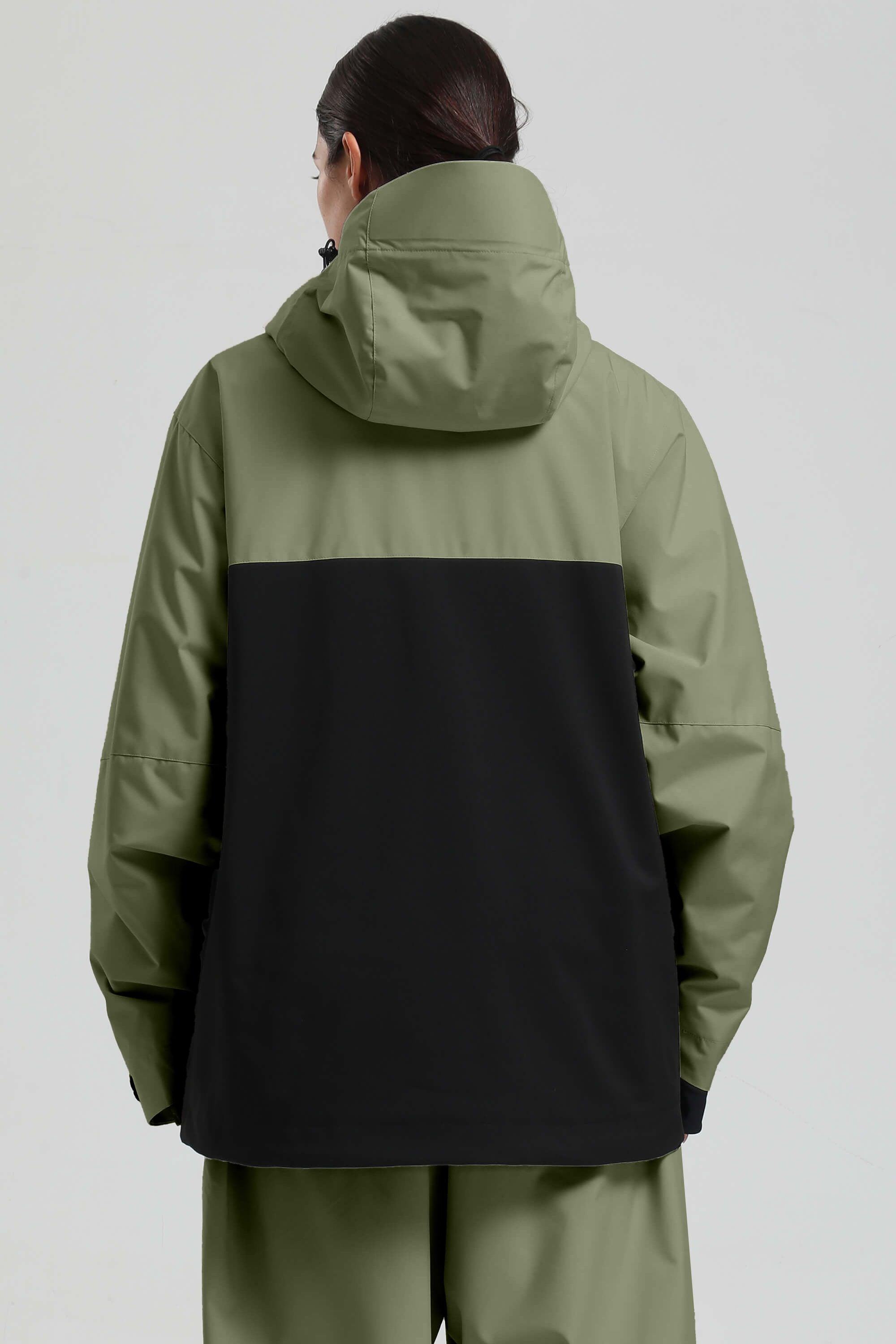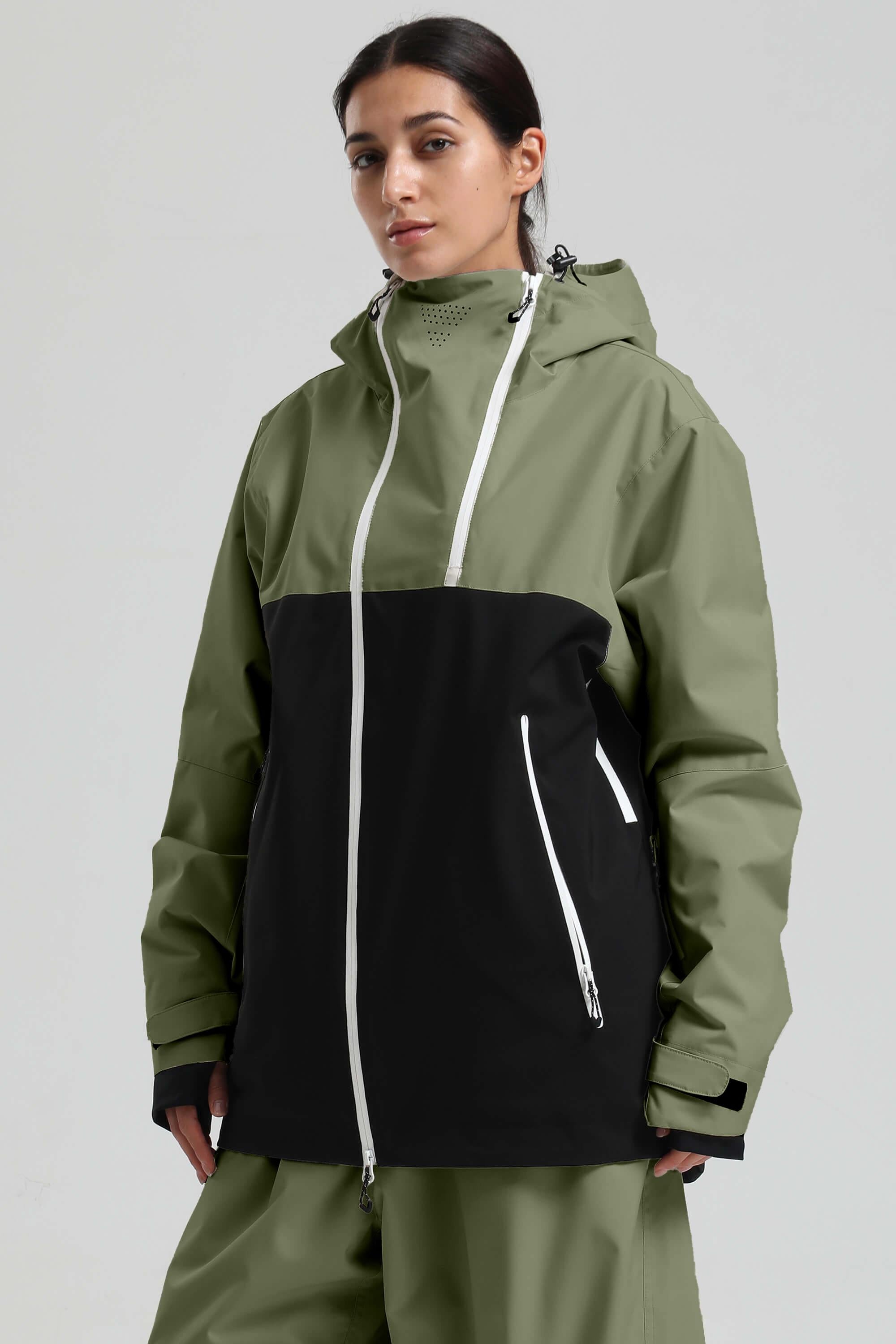 Women's Green & Black Face Vent Asym-Zip Waterproof Insulated Snow Jacket