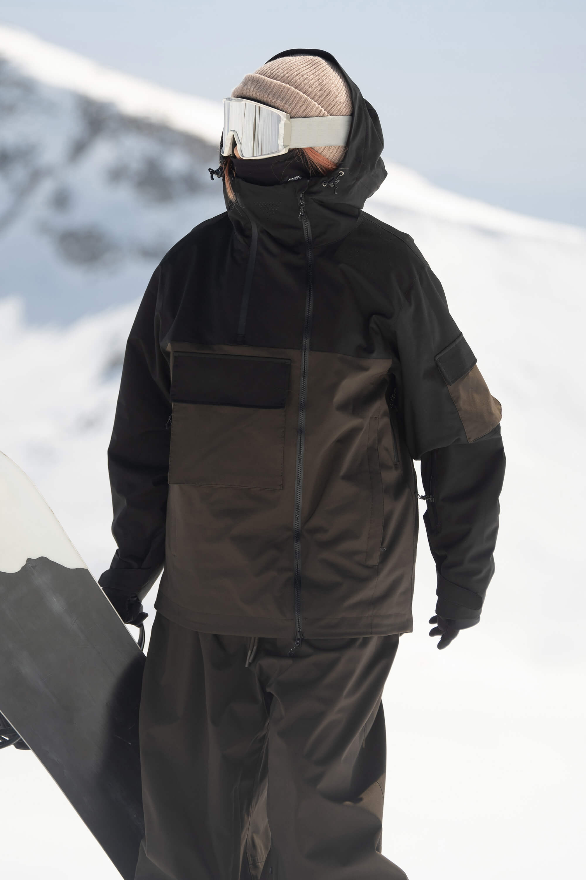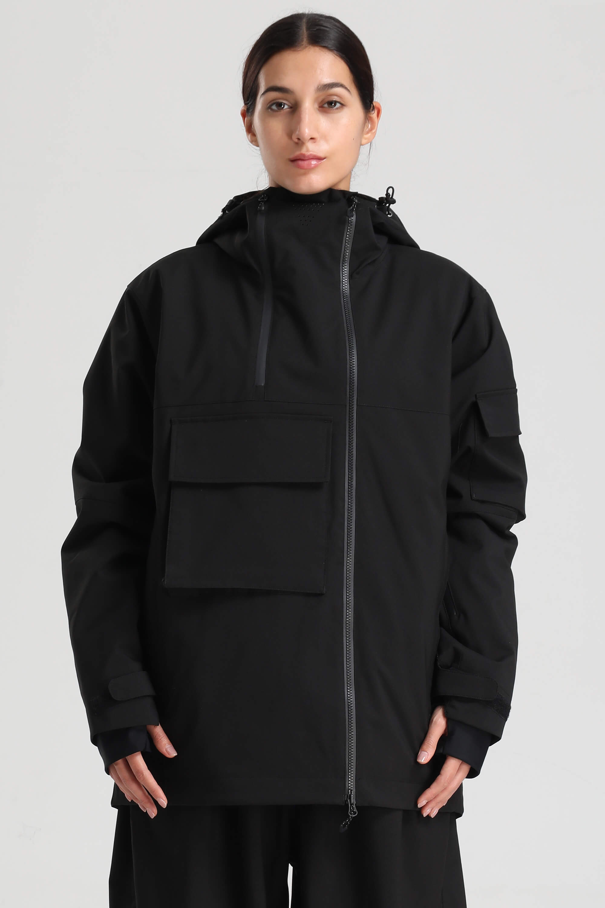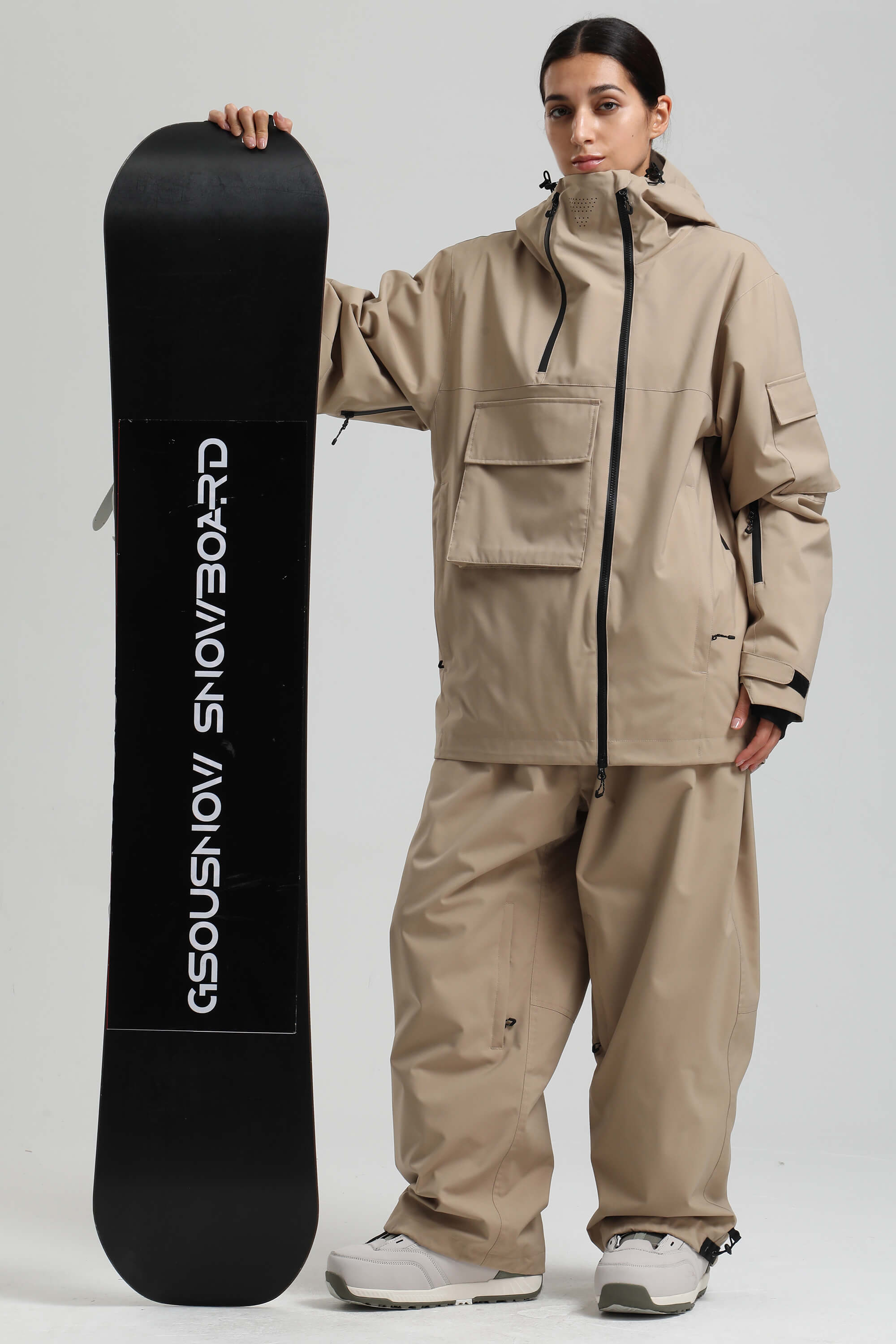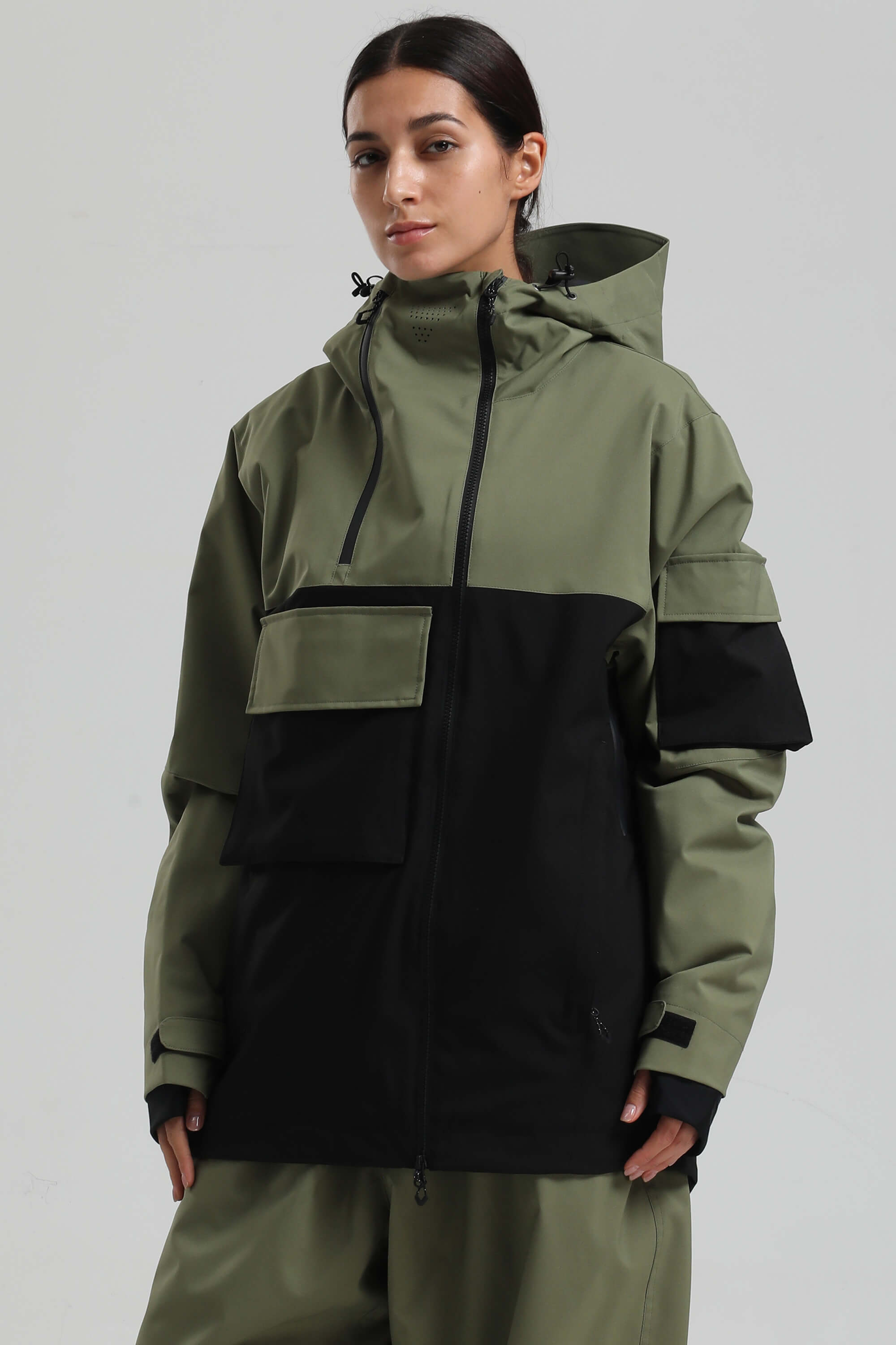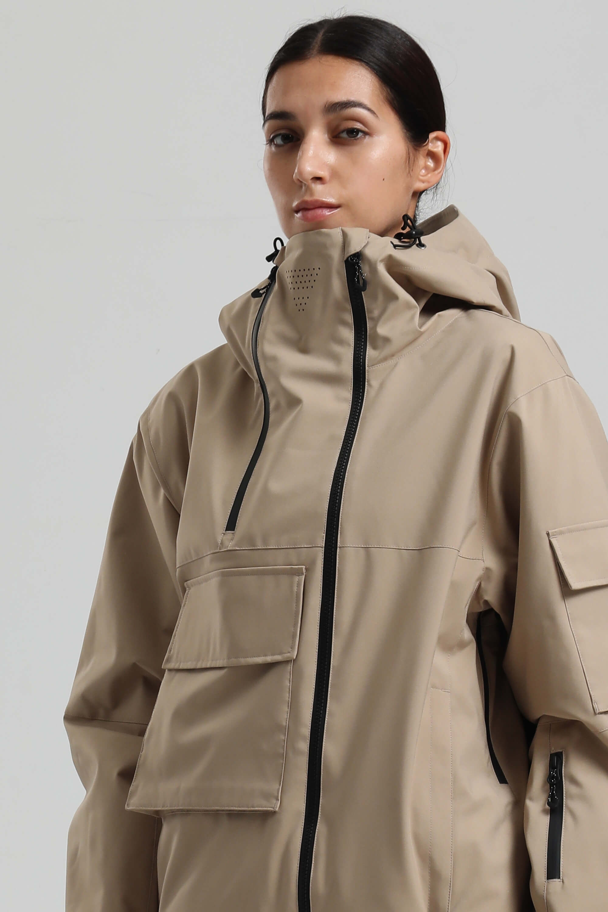 Women's Khaki Asym-Zip Utility Pocket Waterproof Snow Jacket