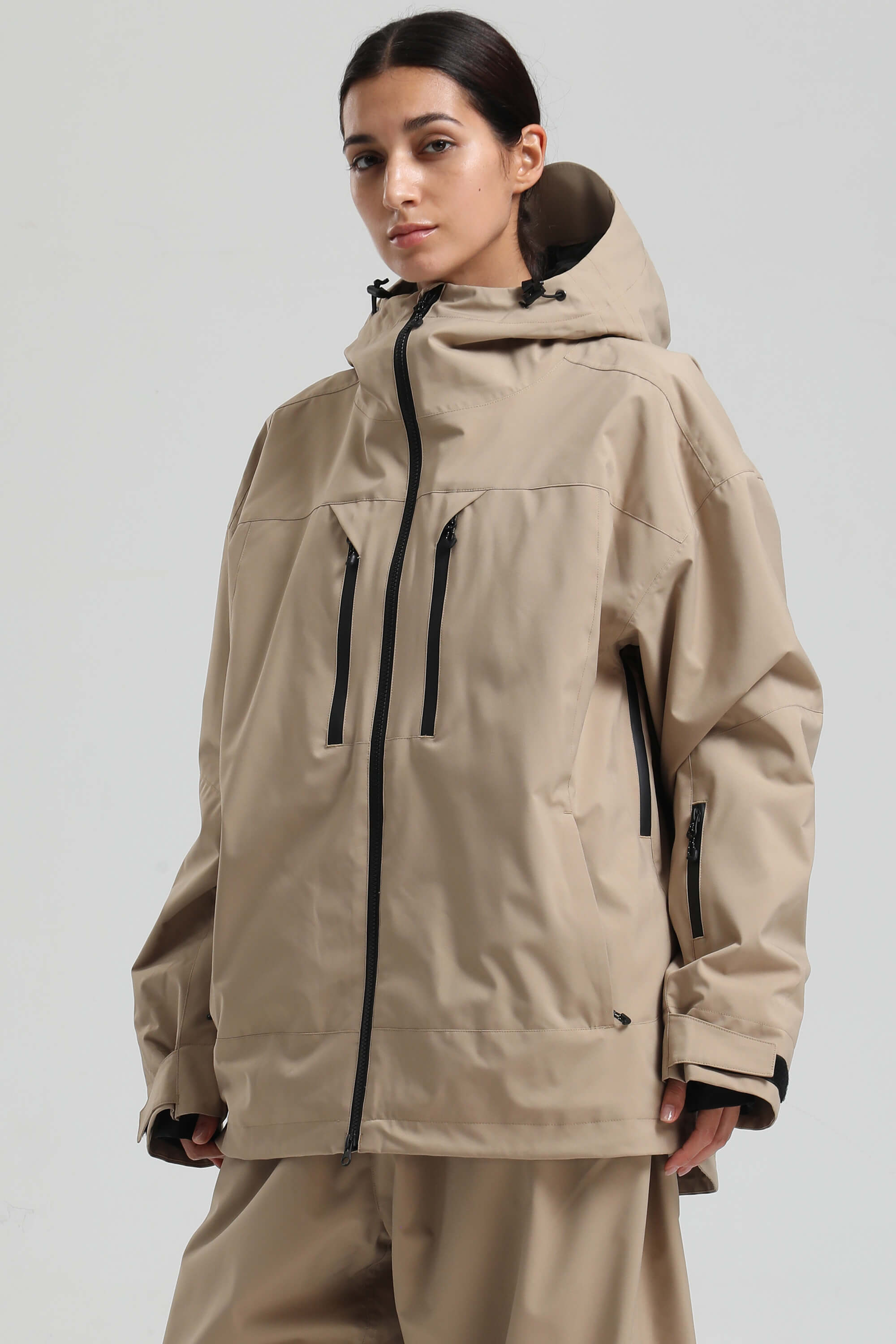 Women's Khaki Multi-Pocket Dual-Vent Waterproof Insulated Snow Jacket