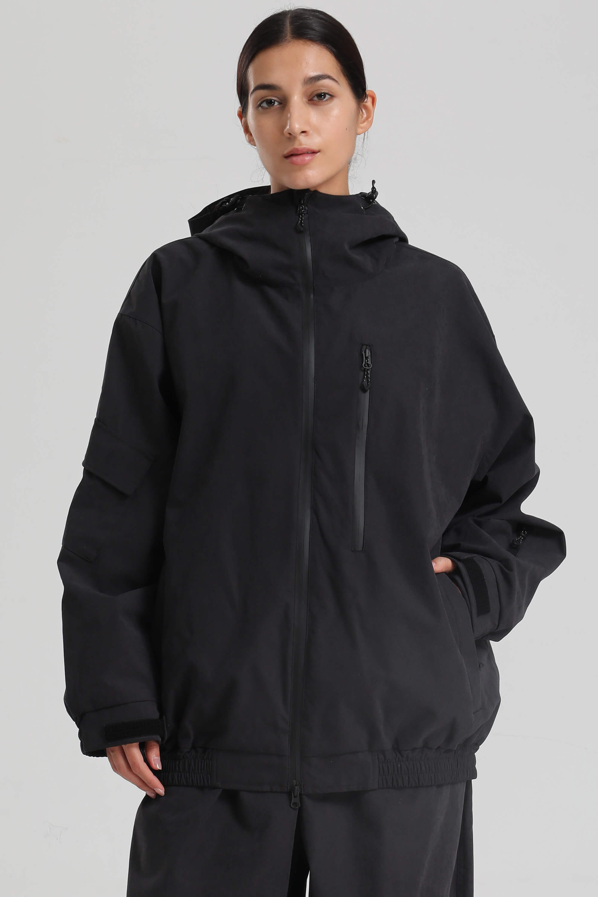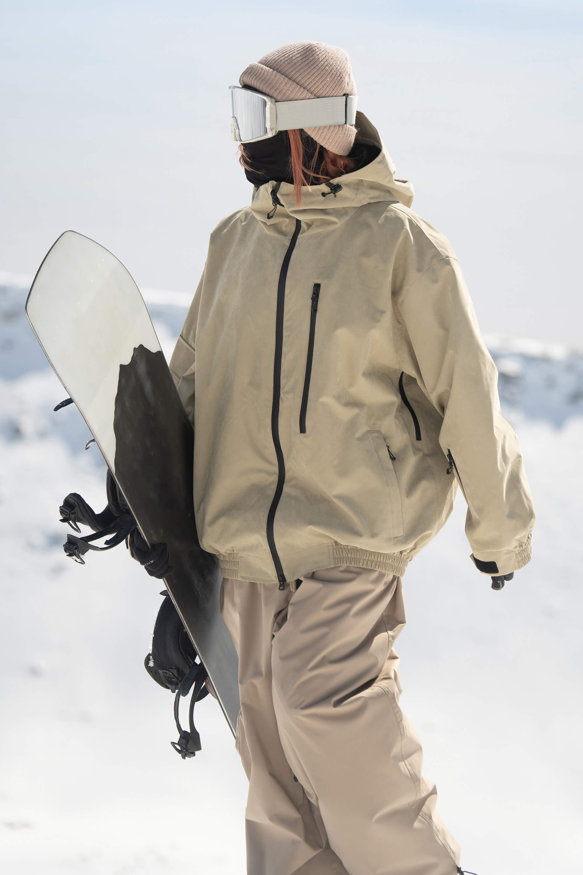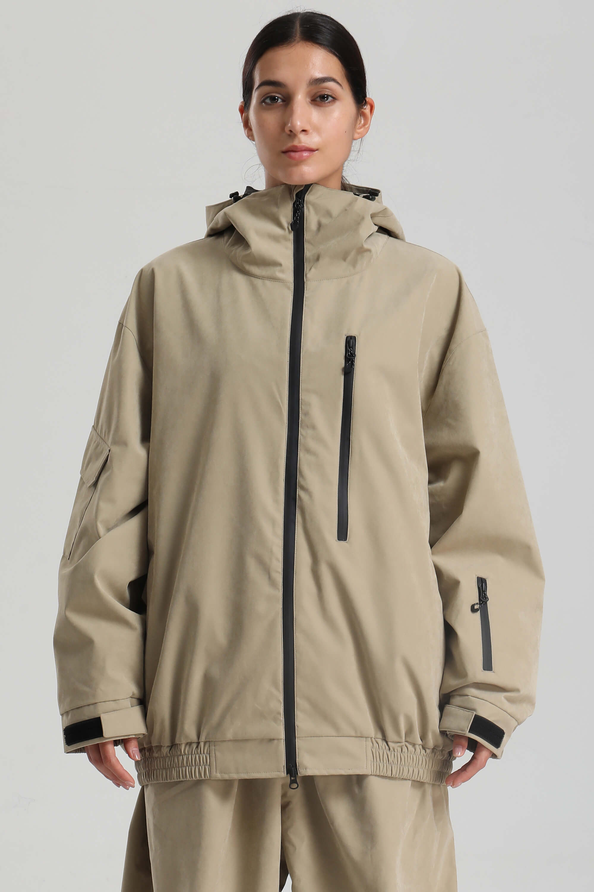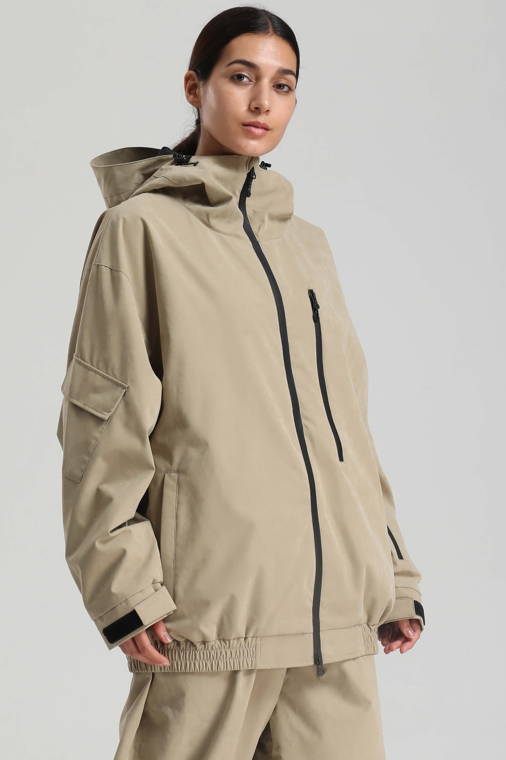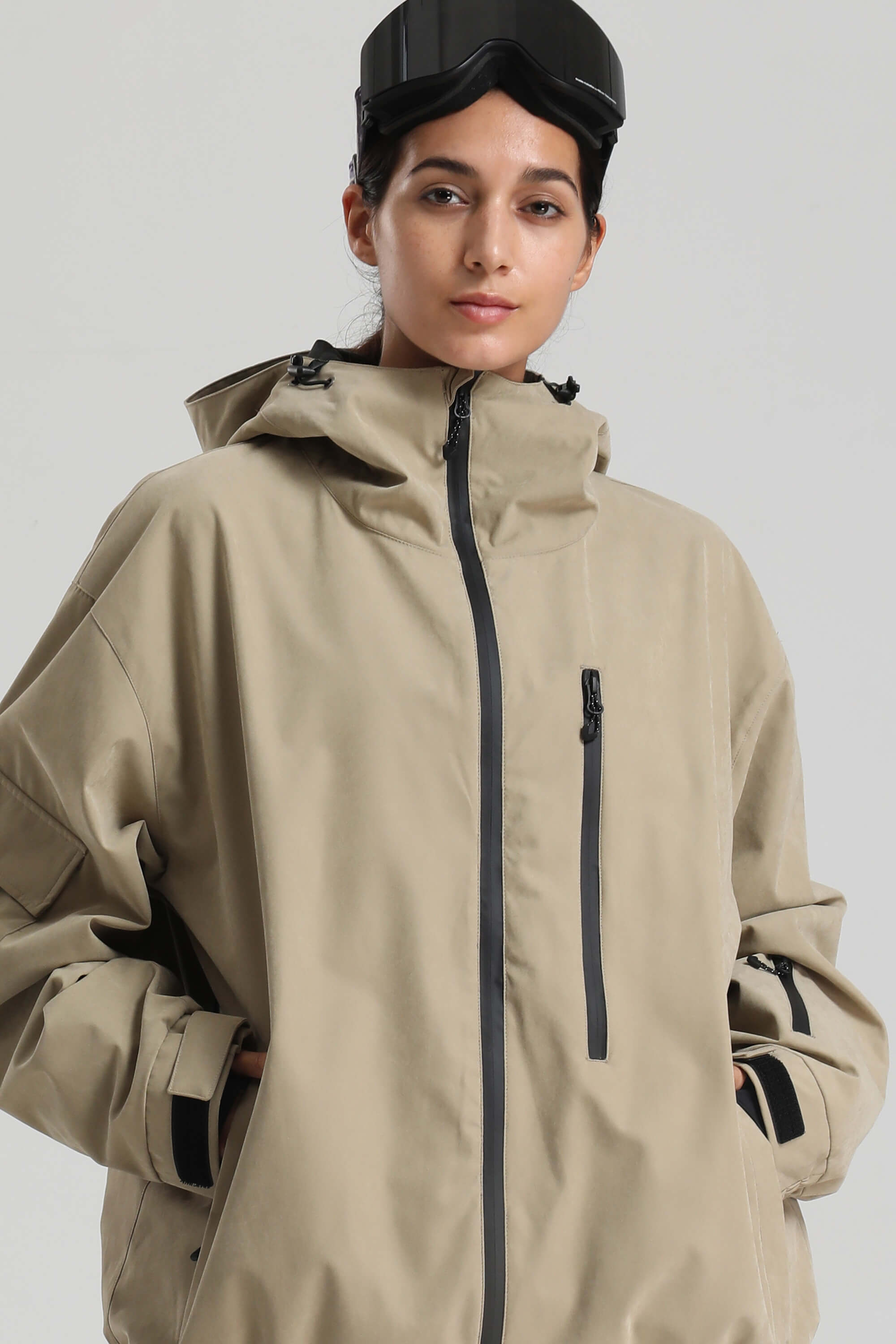 Women's Khaki Washed Effect Minimalist Multi-Pocket Waterproof Snow Jacket