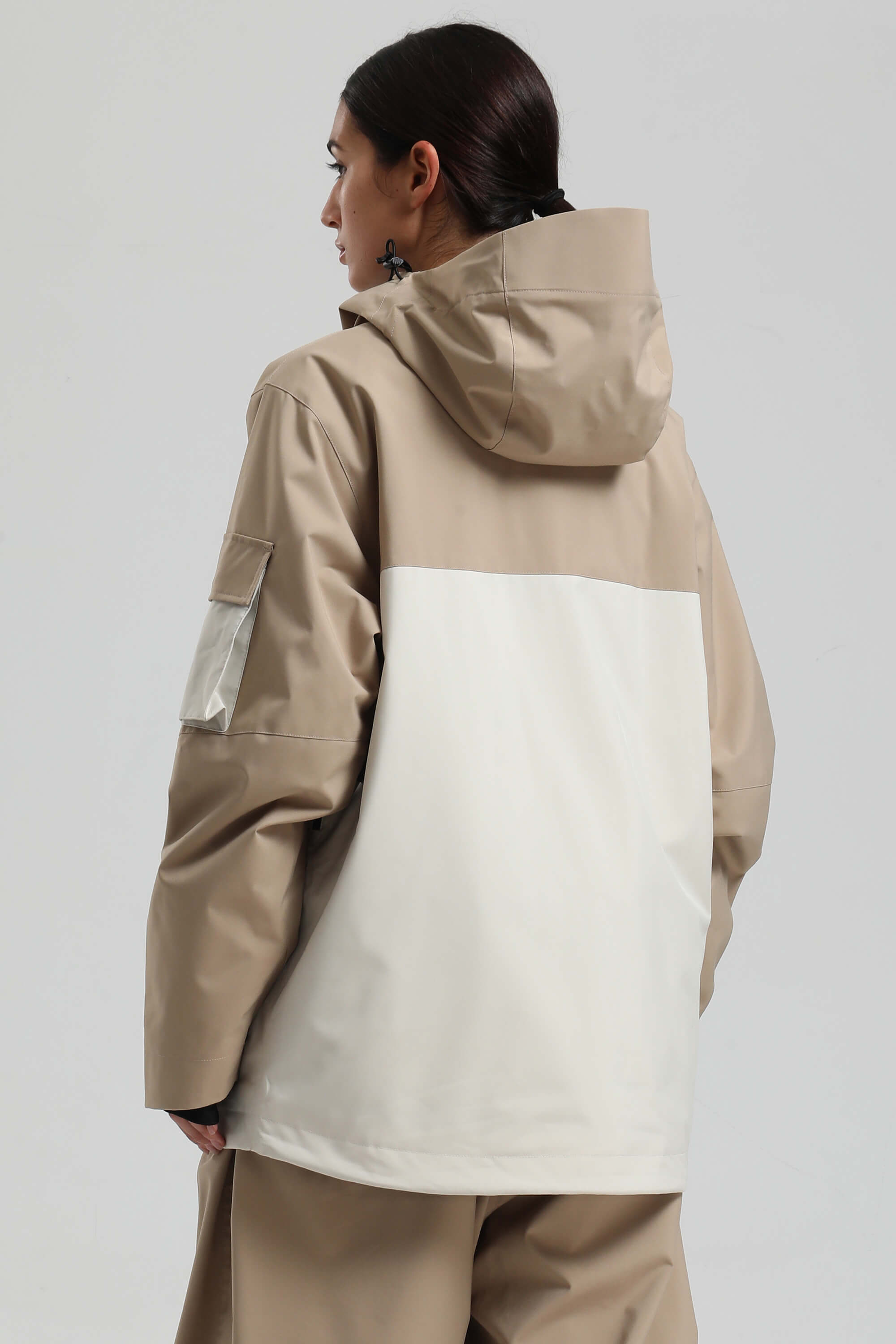 Women's Khaki & White Asym-Zip Utility Pocket Waterproof Snow Jacket