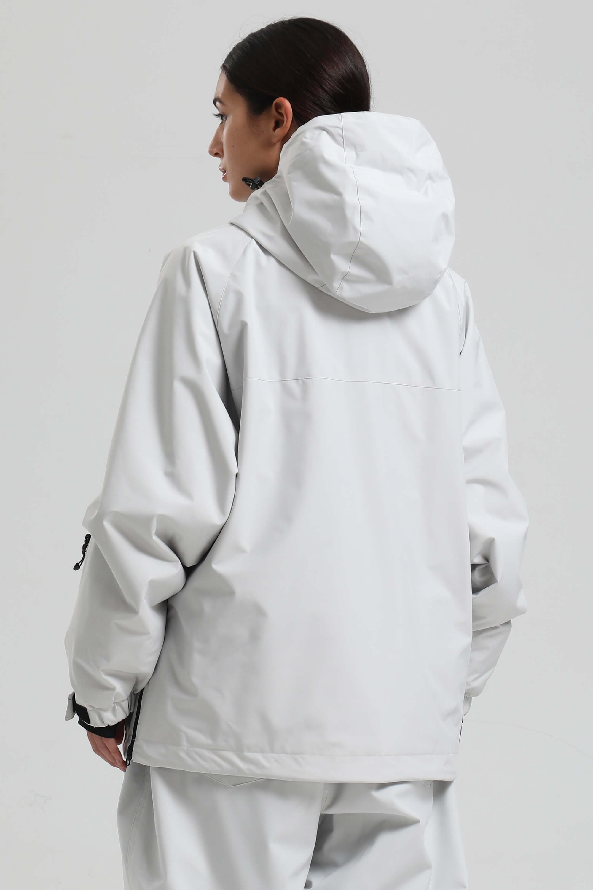 Women's Light Grey Minimalist Half-Zip Waterproof Insulated Snow Anorak