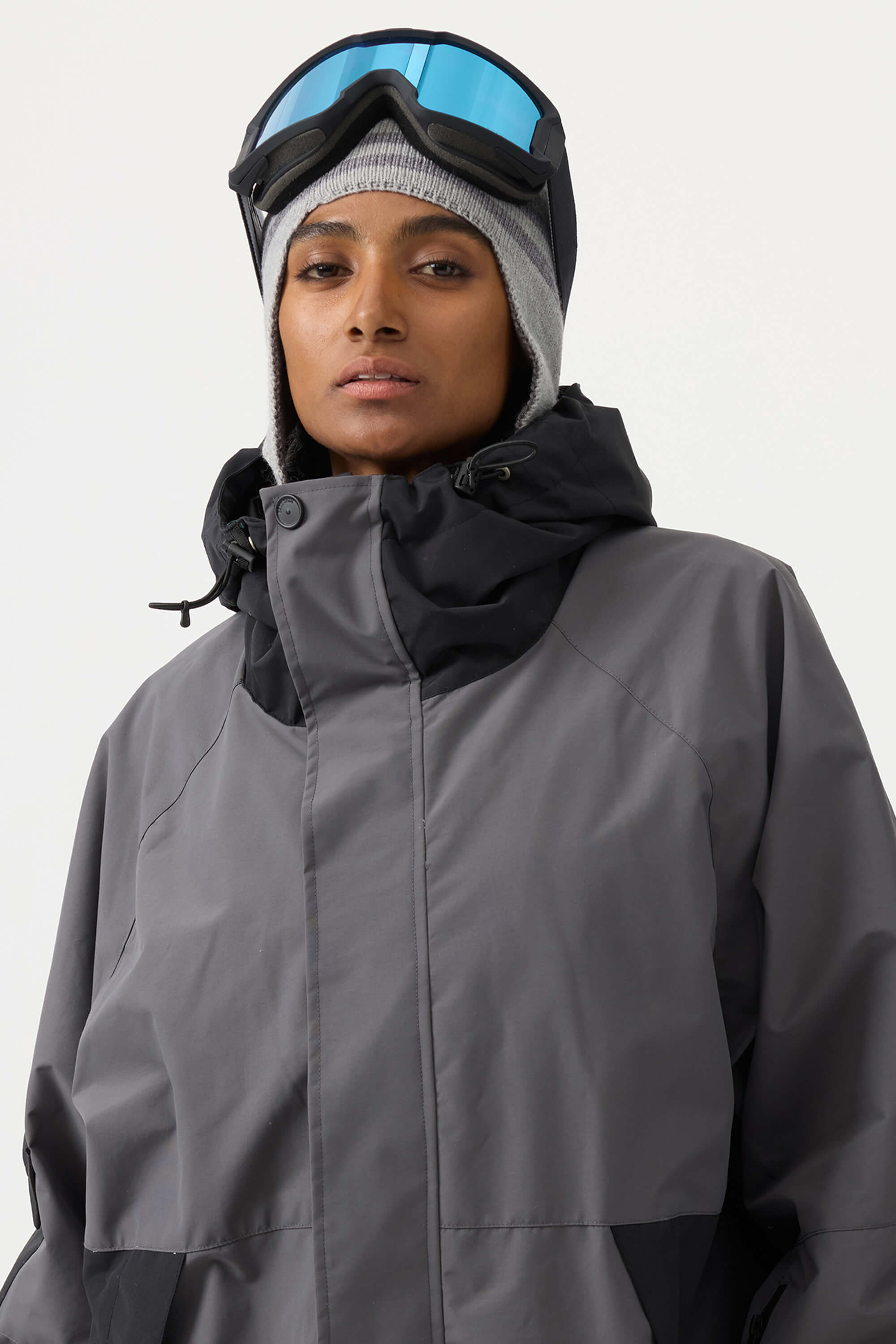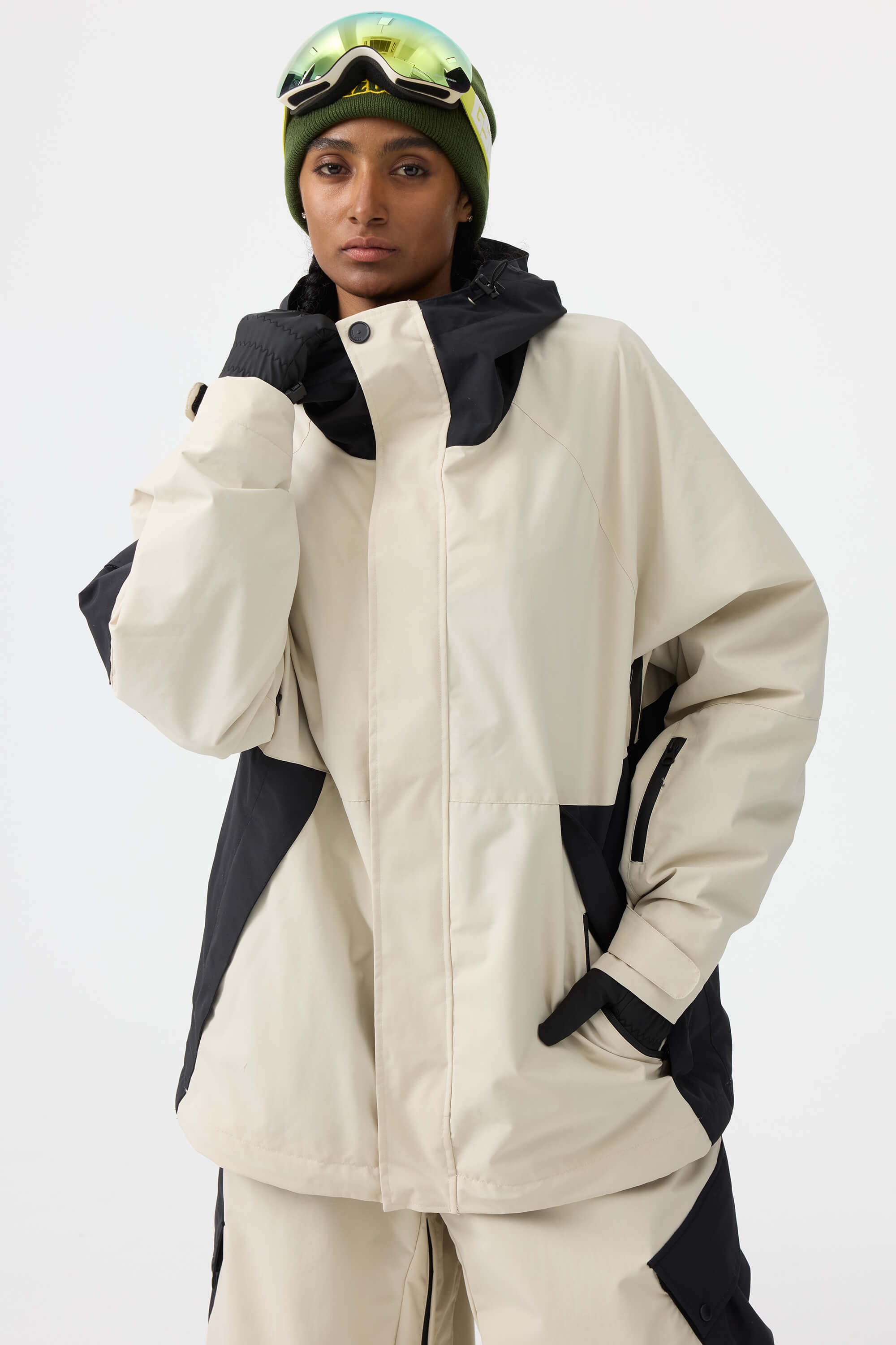 Women's Off White Raglan Sleeve Color Block Waterproof Breathable Snow Jacket