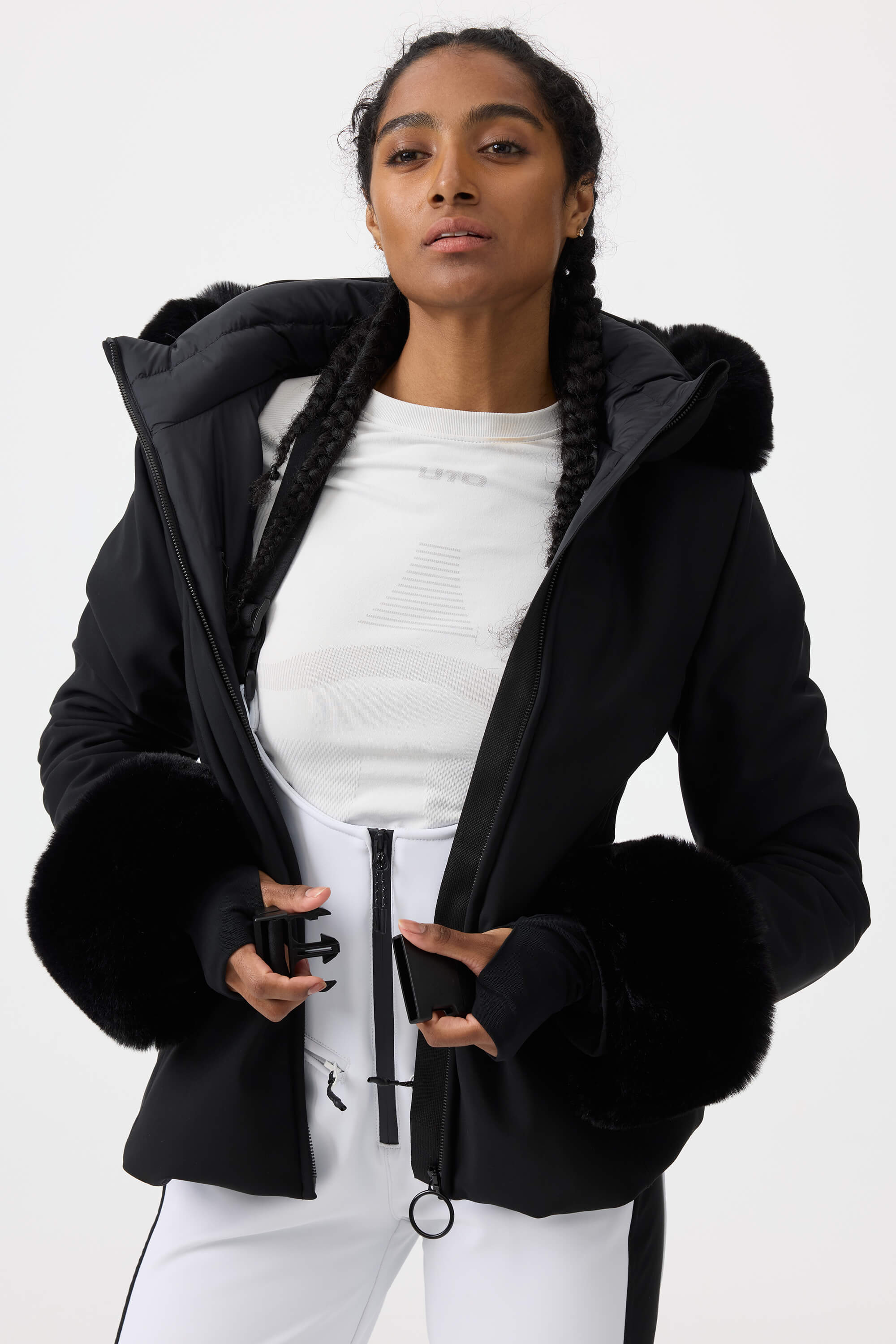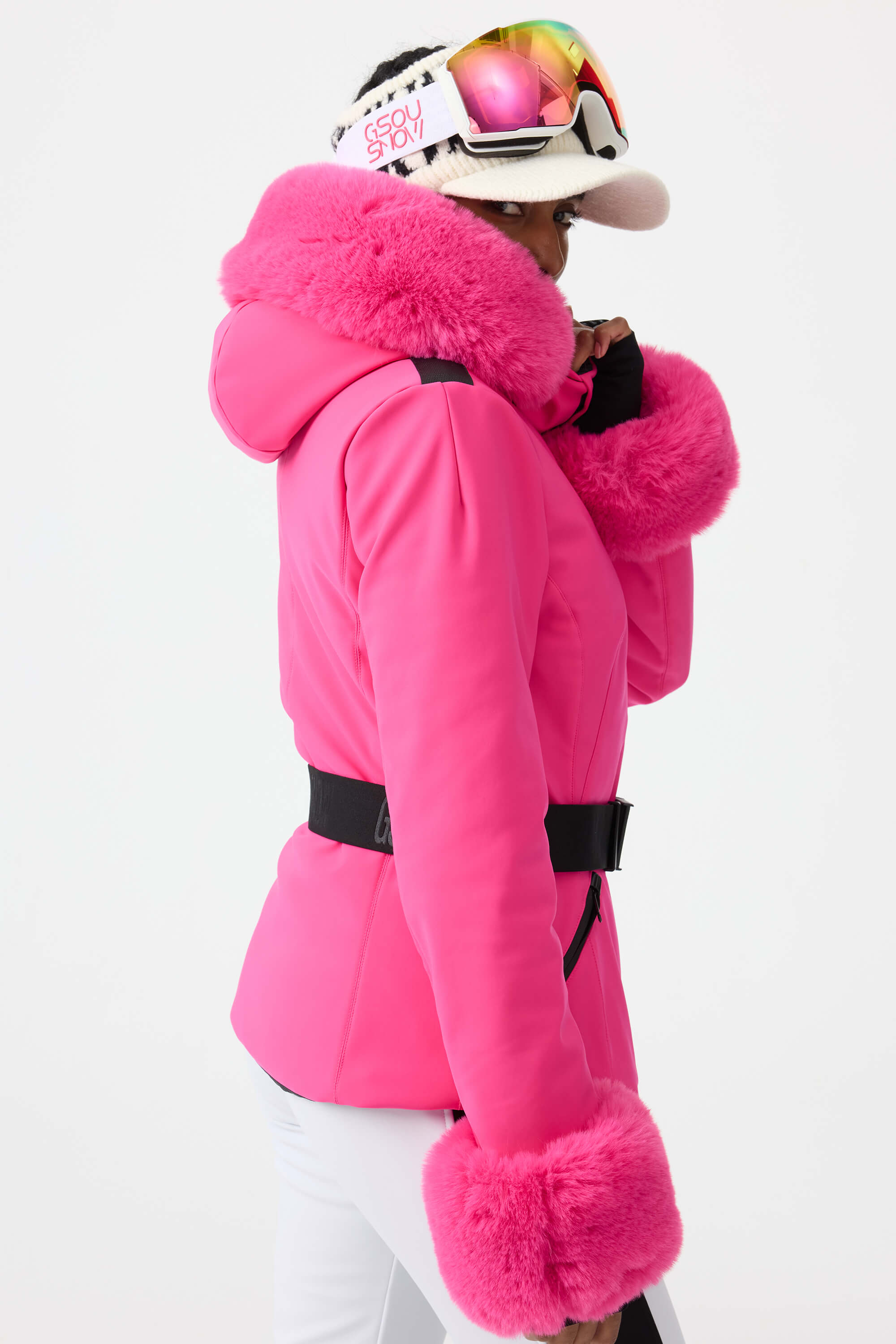 Chaqueta de esquí elástica con aislamiento de piel sintética cortada en 3D de color naranja para mujer