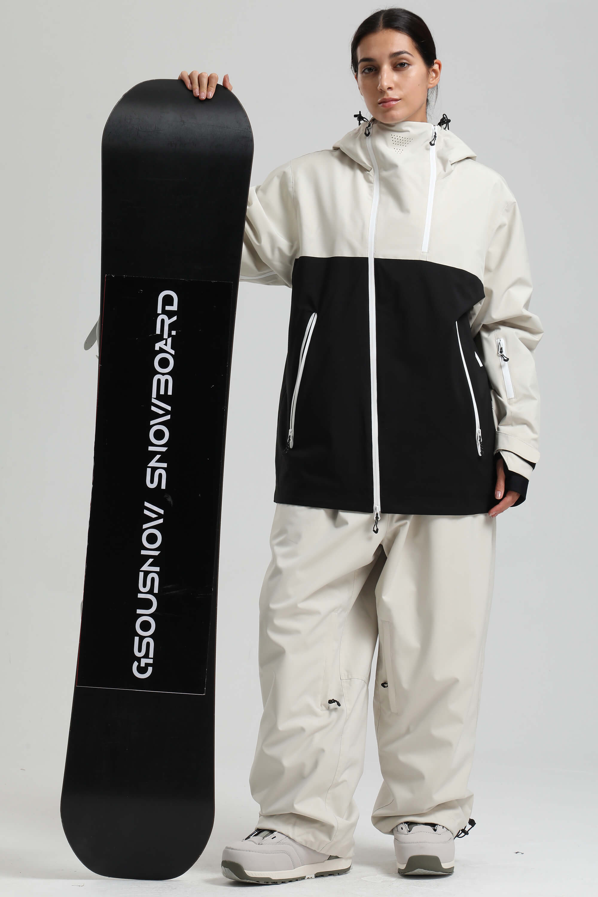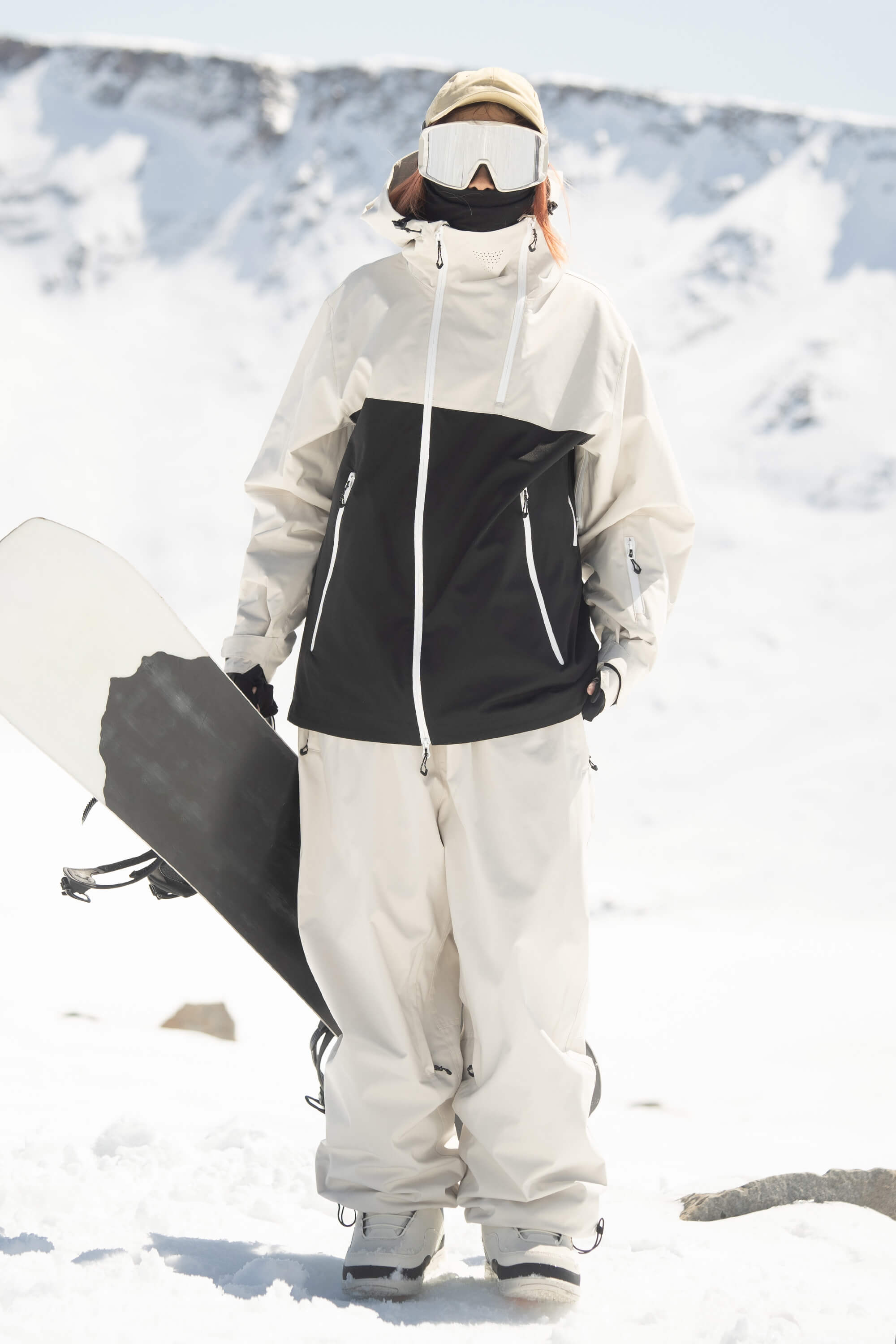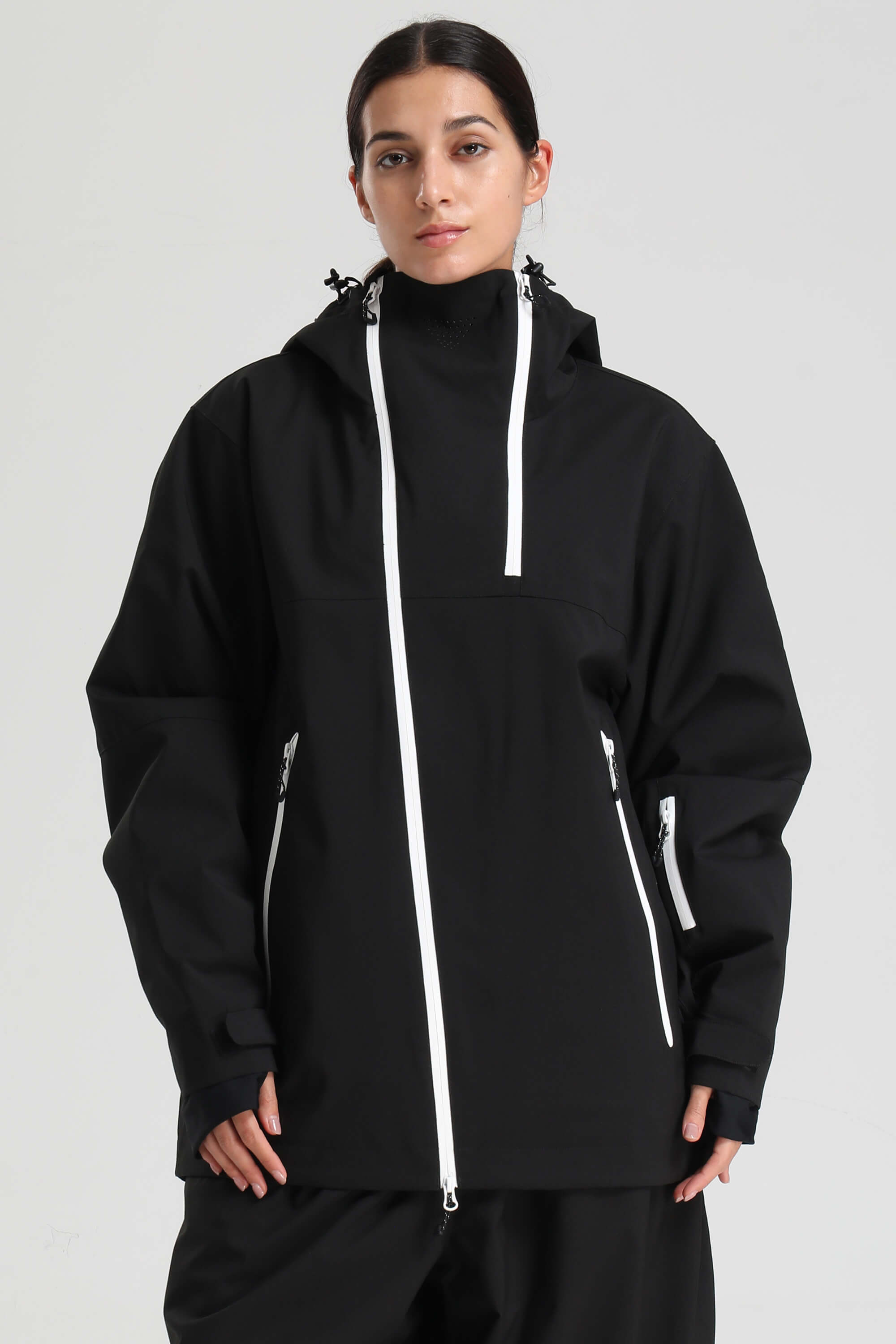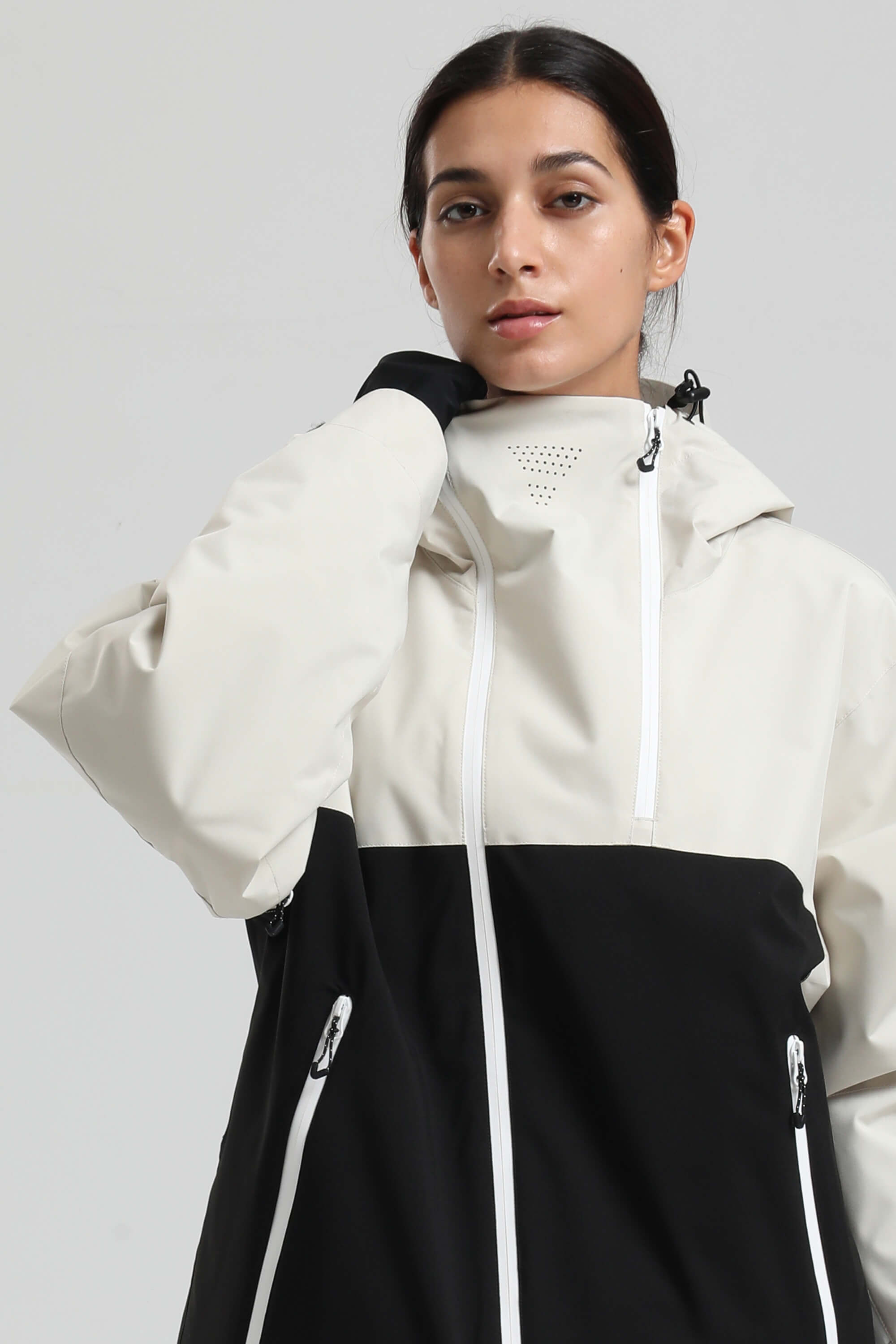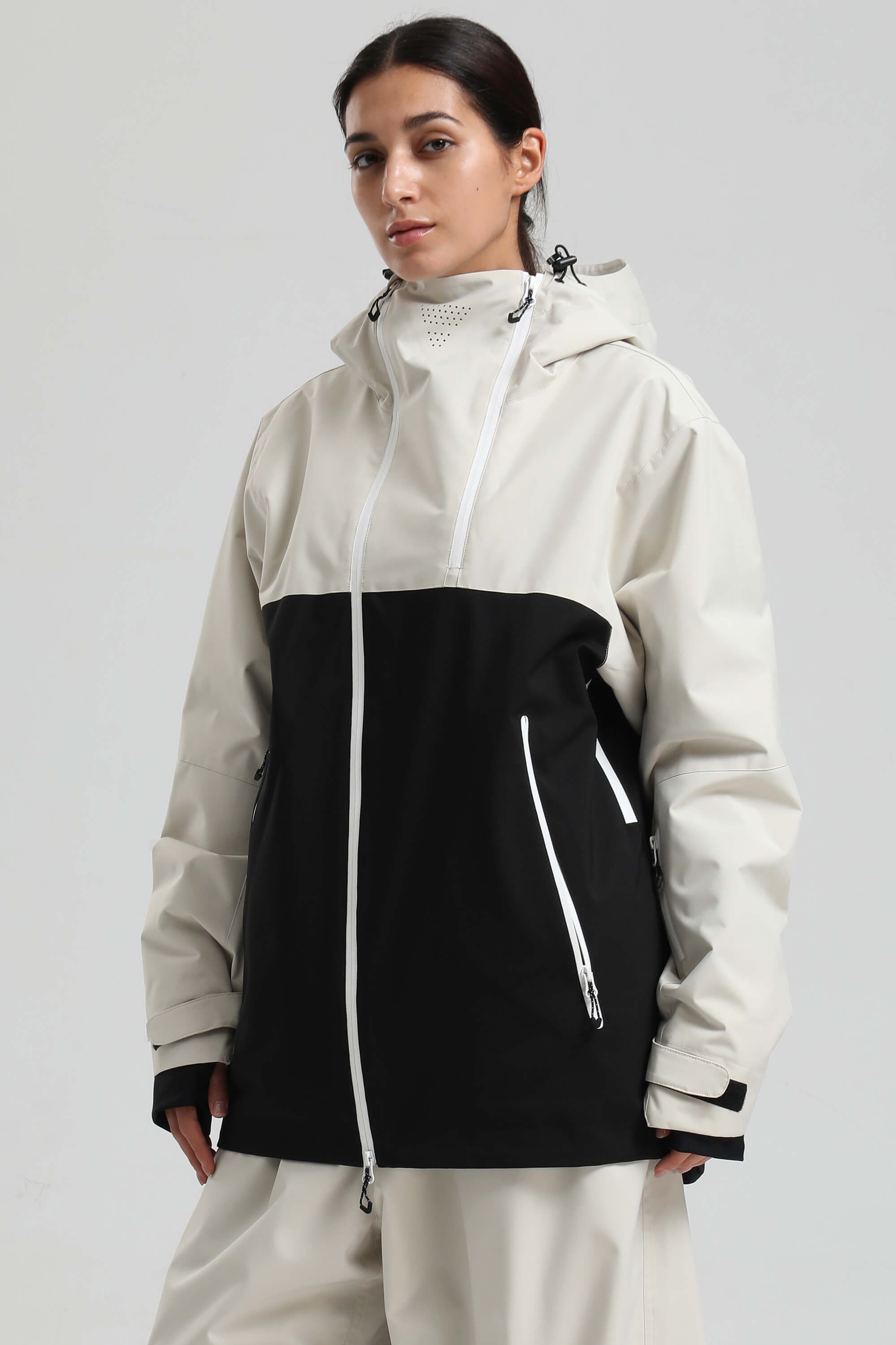 Women's White & Black Face Vent Asym-Zip Waterproof Insulated Snow Jacket