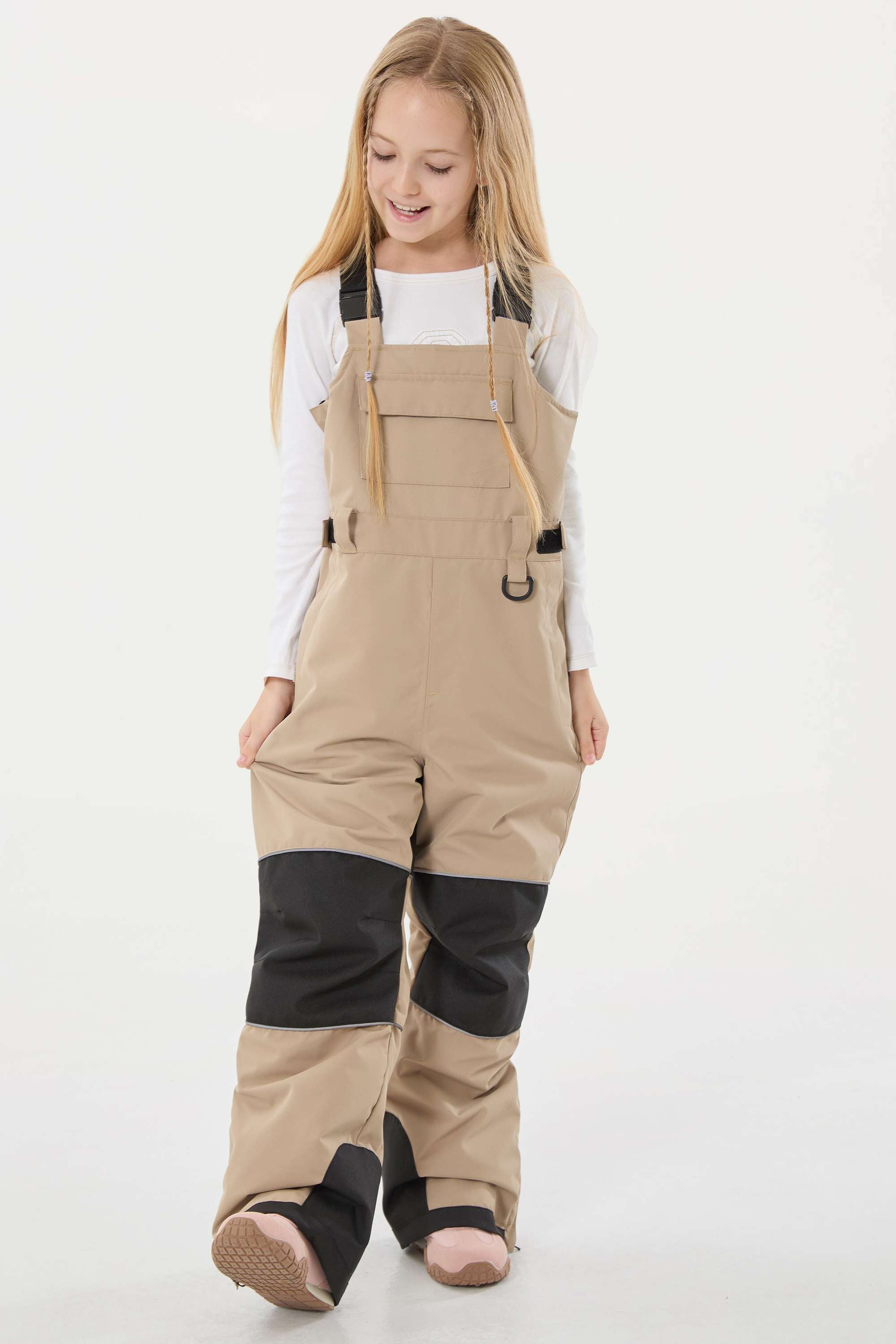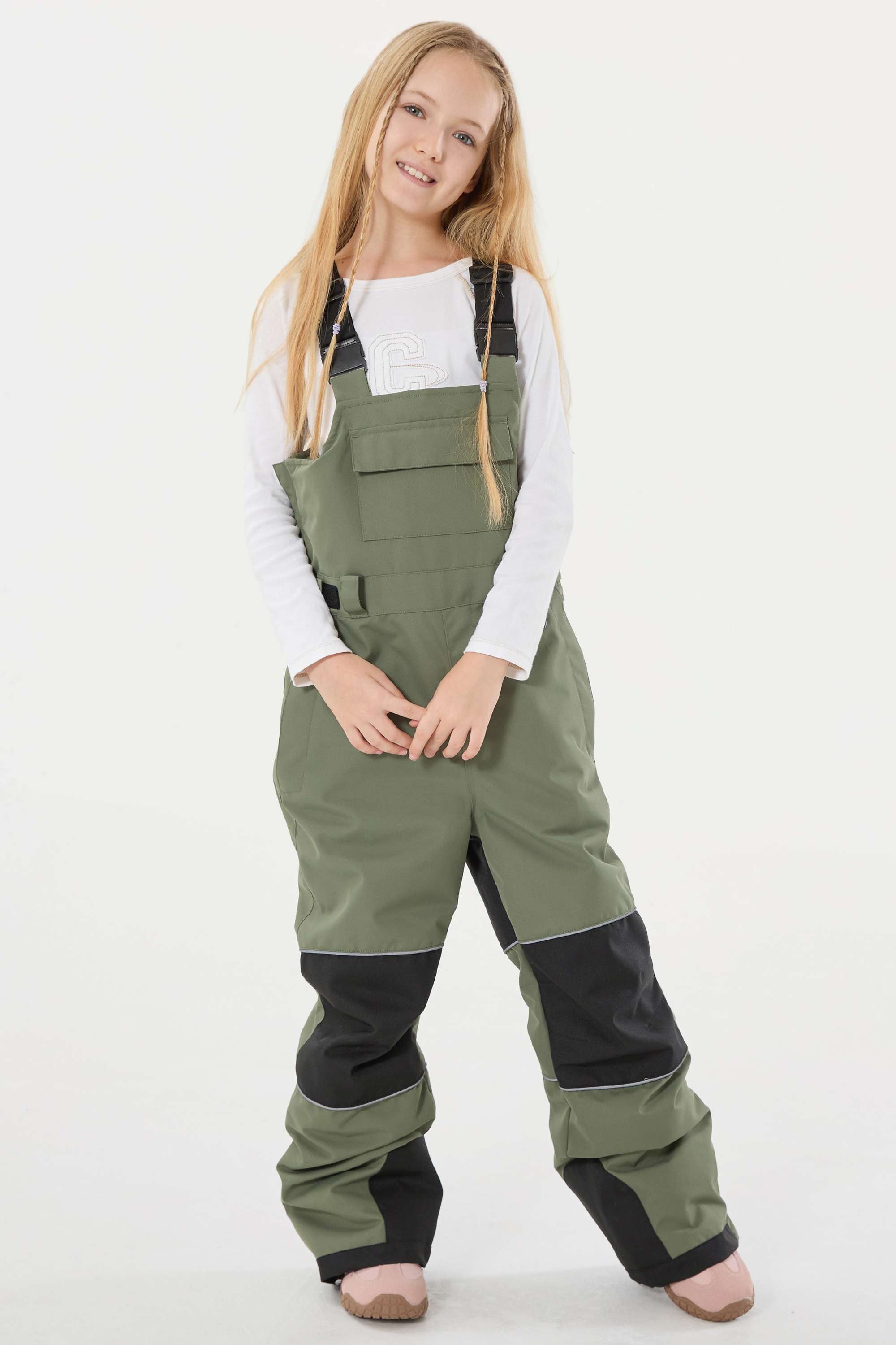 Girls’ Army Green Reflective Durable Workwear Snow Bibs