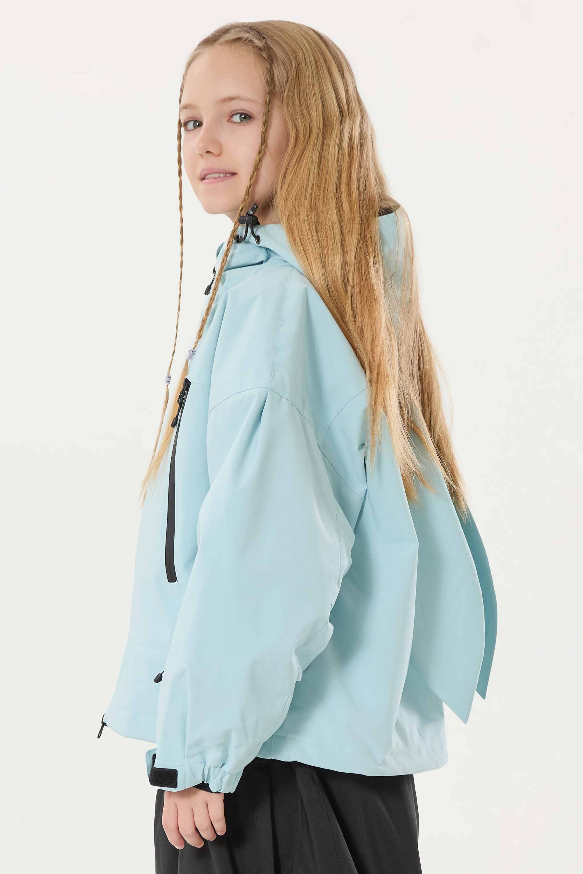 Girl's Ice Blue Detachable Ear Hood Waterproof Insulated Snow Jacket