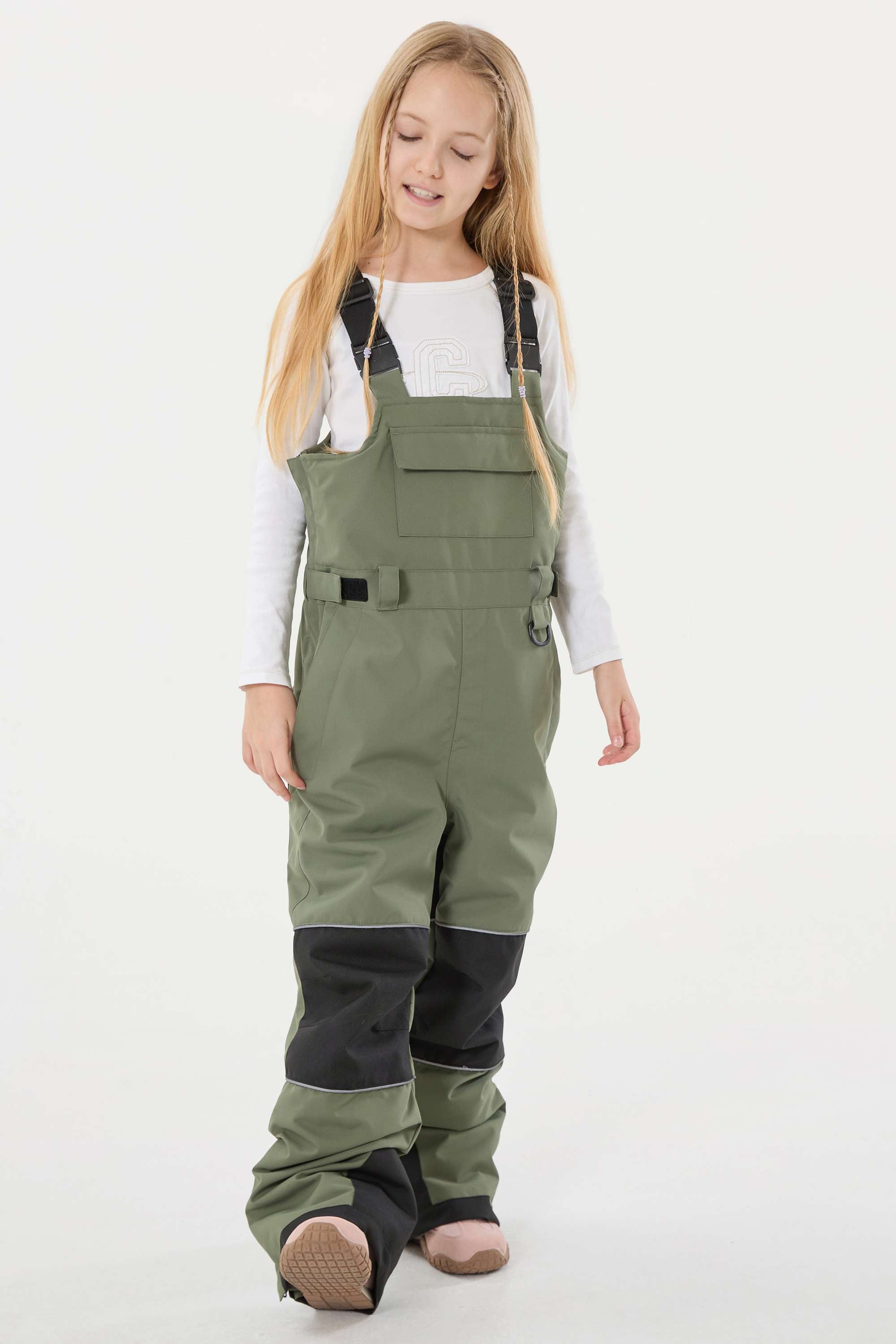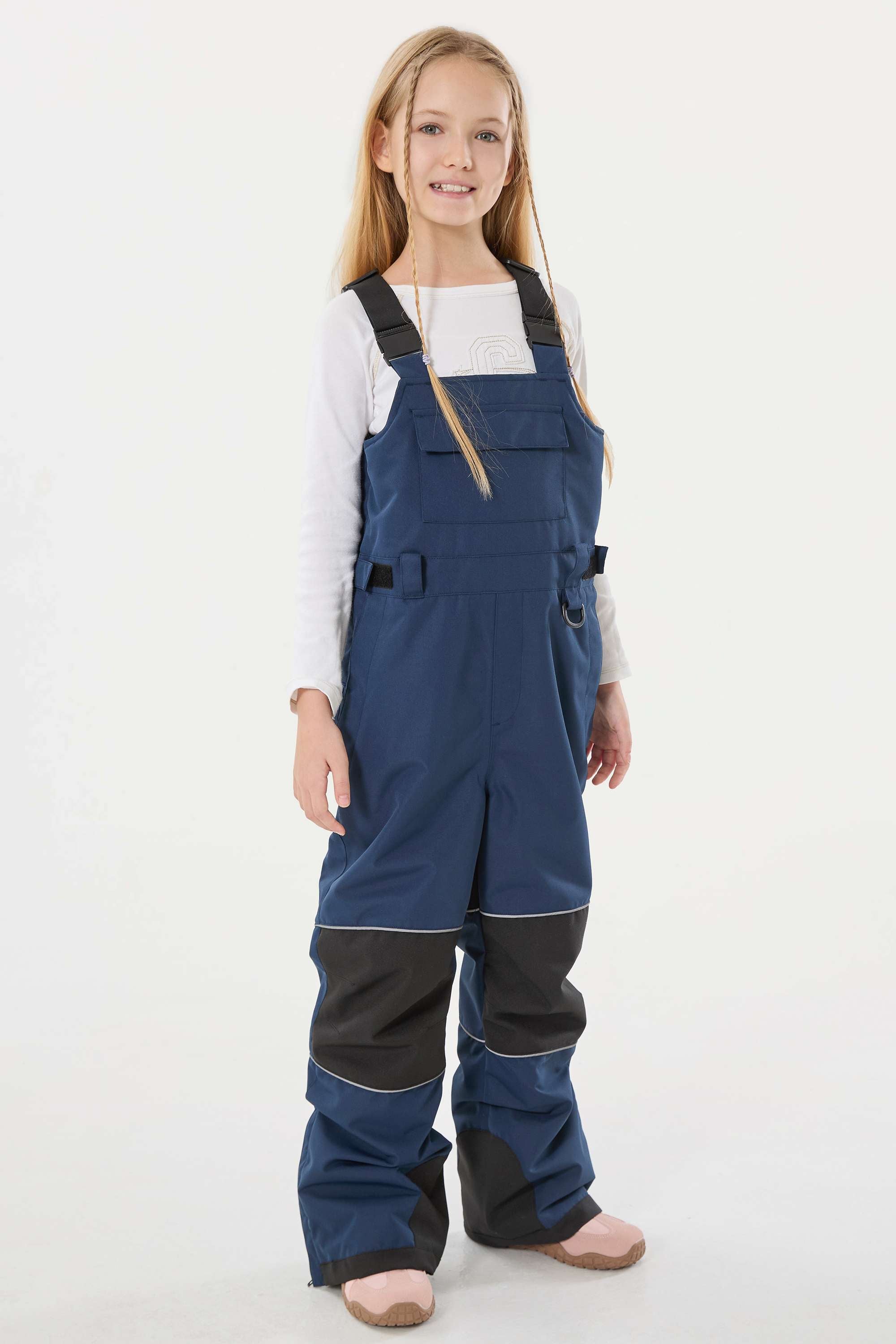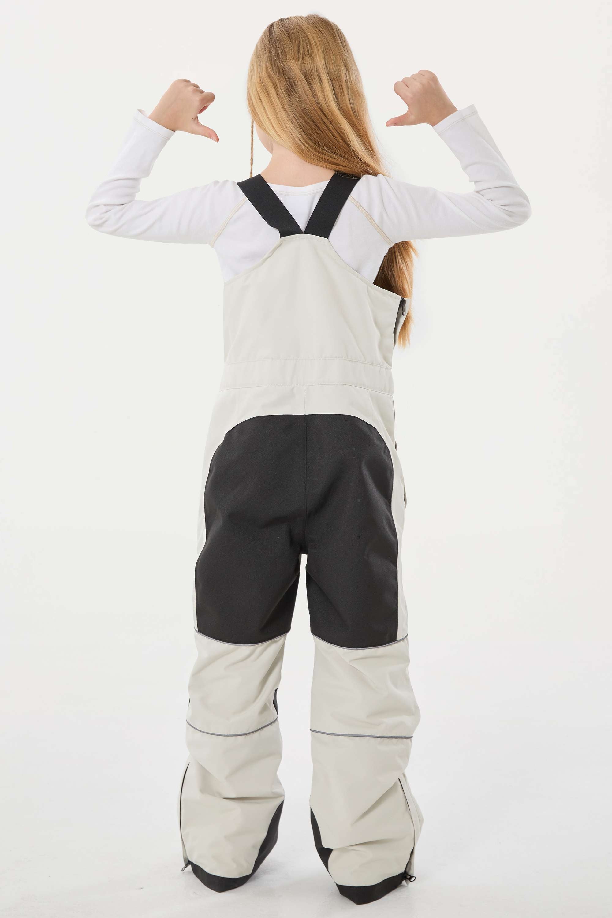 Girls’ Off White Reflective Durable Workwear Snow Bibs