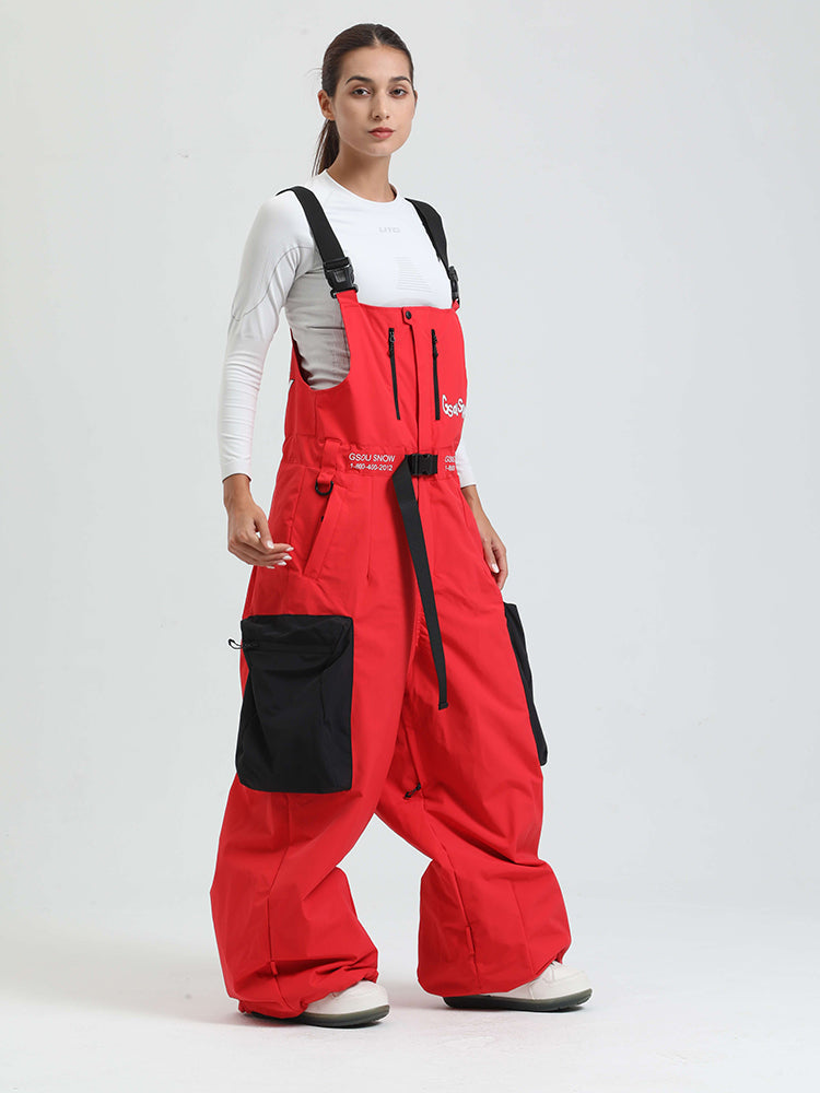GSOU SNOW Womens Snowboard Bibs Super Baggy Ski Bibs Loose Snow Pants Overalls Waterproof Insulated Winter