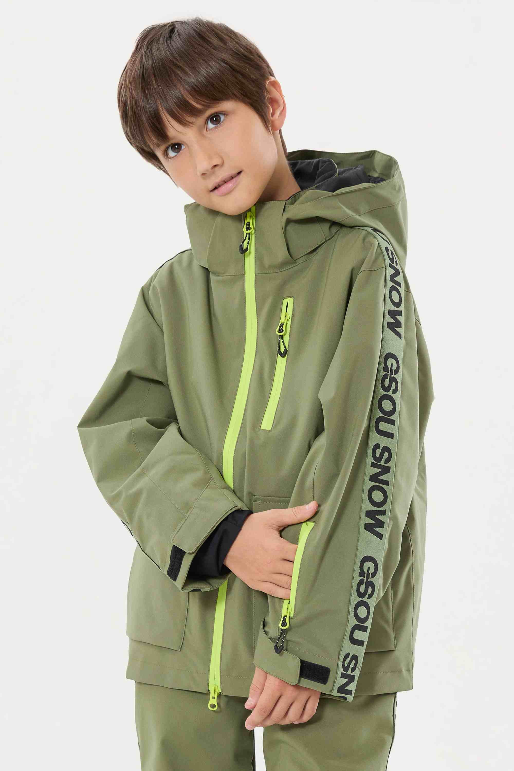 Kids' Khaki Sporty Logo Tape Waterproof Insulated Snow Jacket