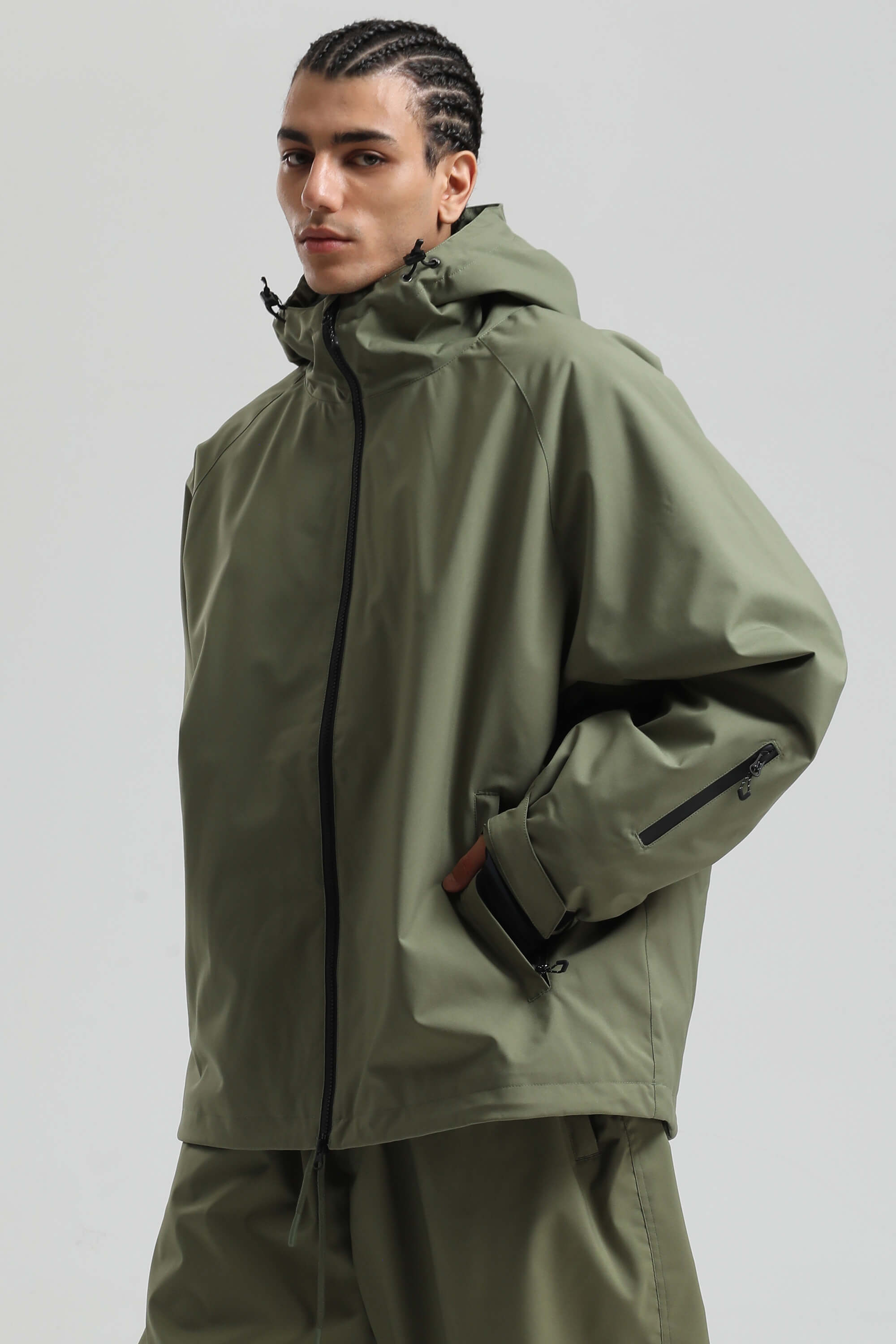 Men's Army Green Dual-Vent Minimalist Waterproof Insulated Snow Jacket