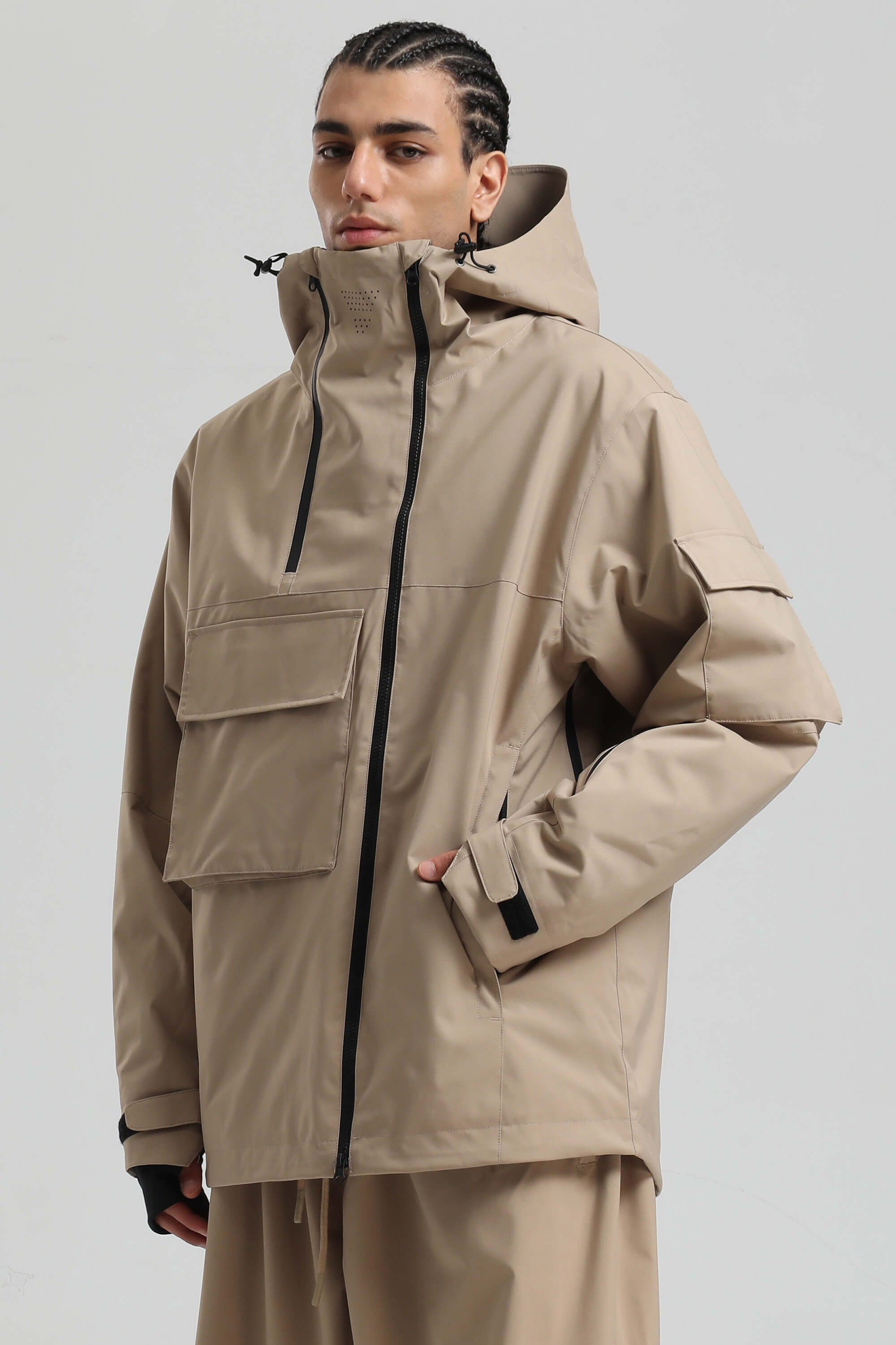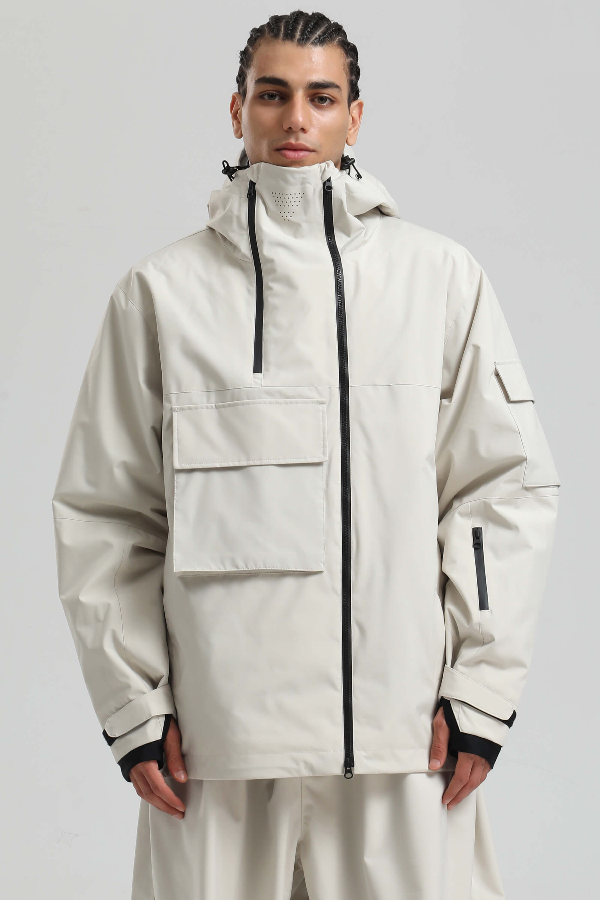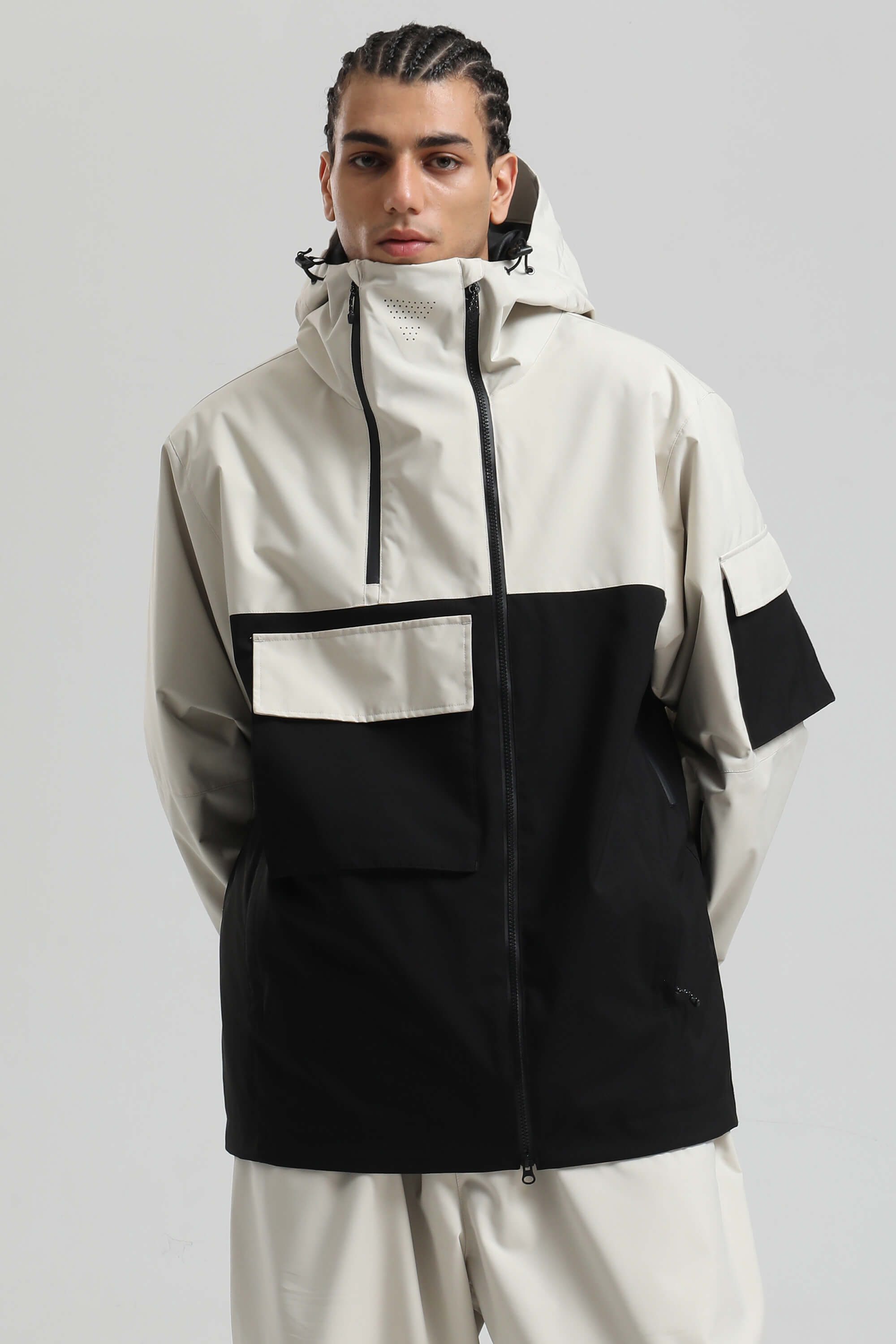 Men's Black Asym-Zip Utility Pocket Waterproof Snow Jacket