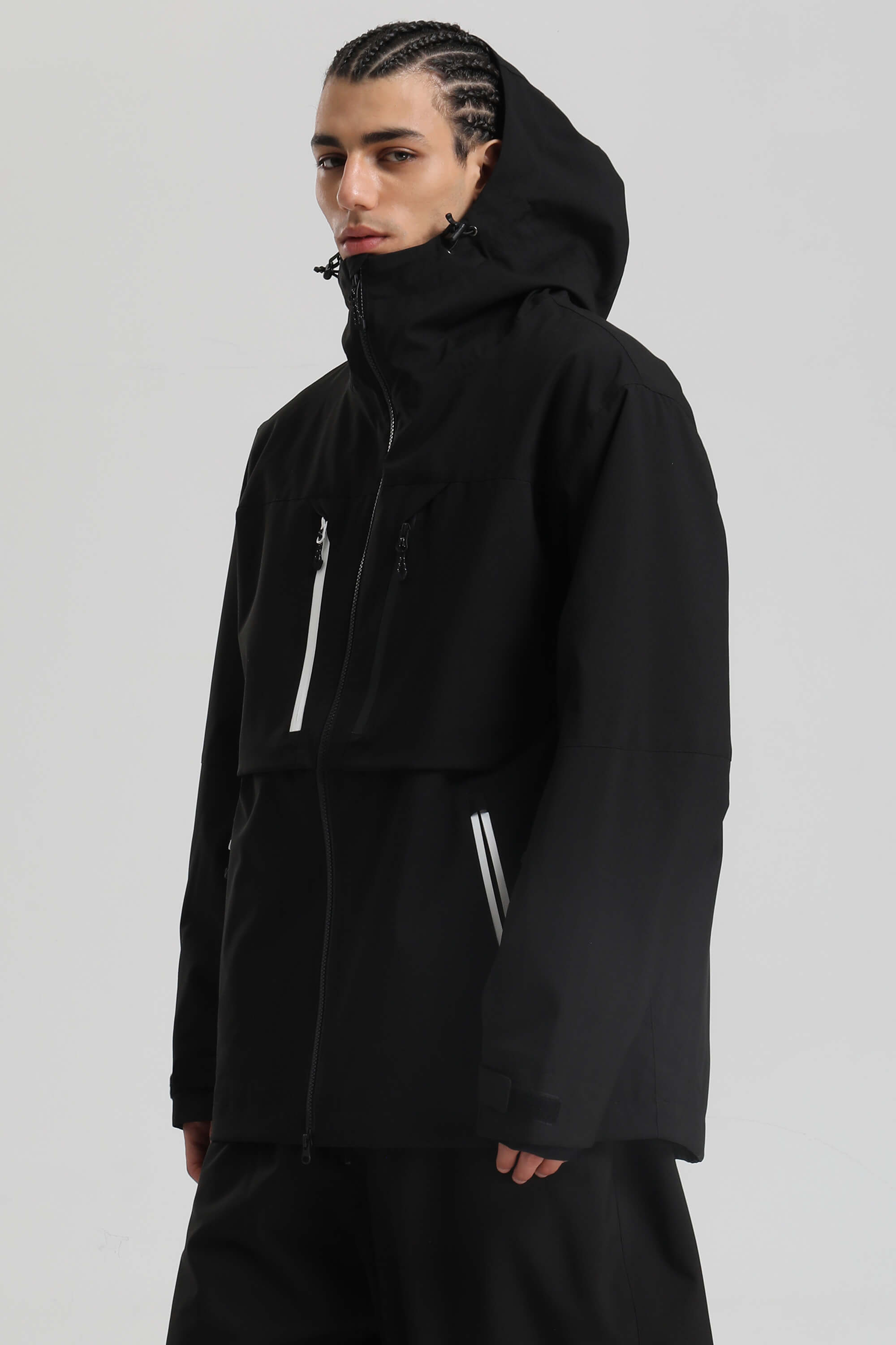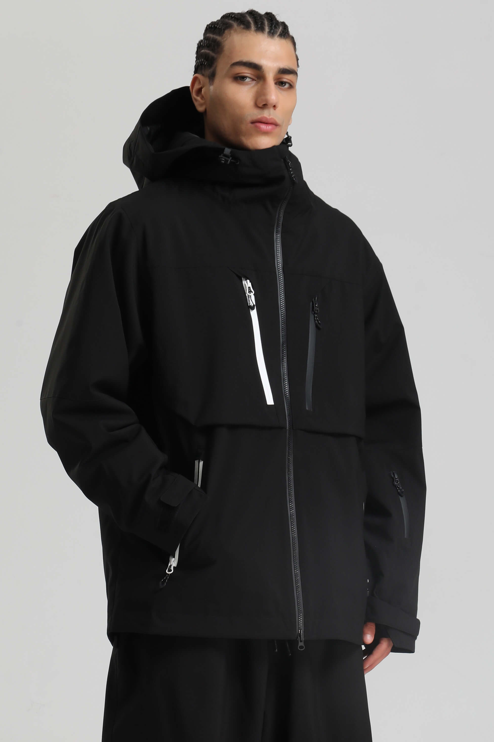 Men's Black Contrast-Zip Fully Sealed Waterproof Insulated Snow Jacket