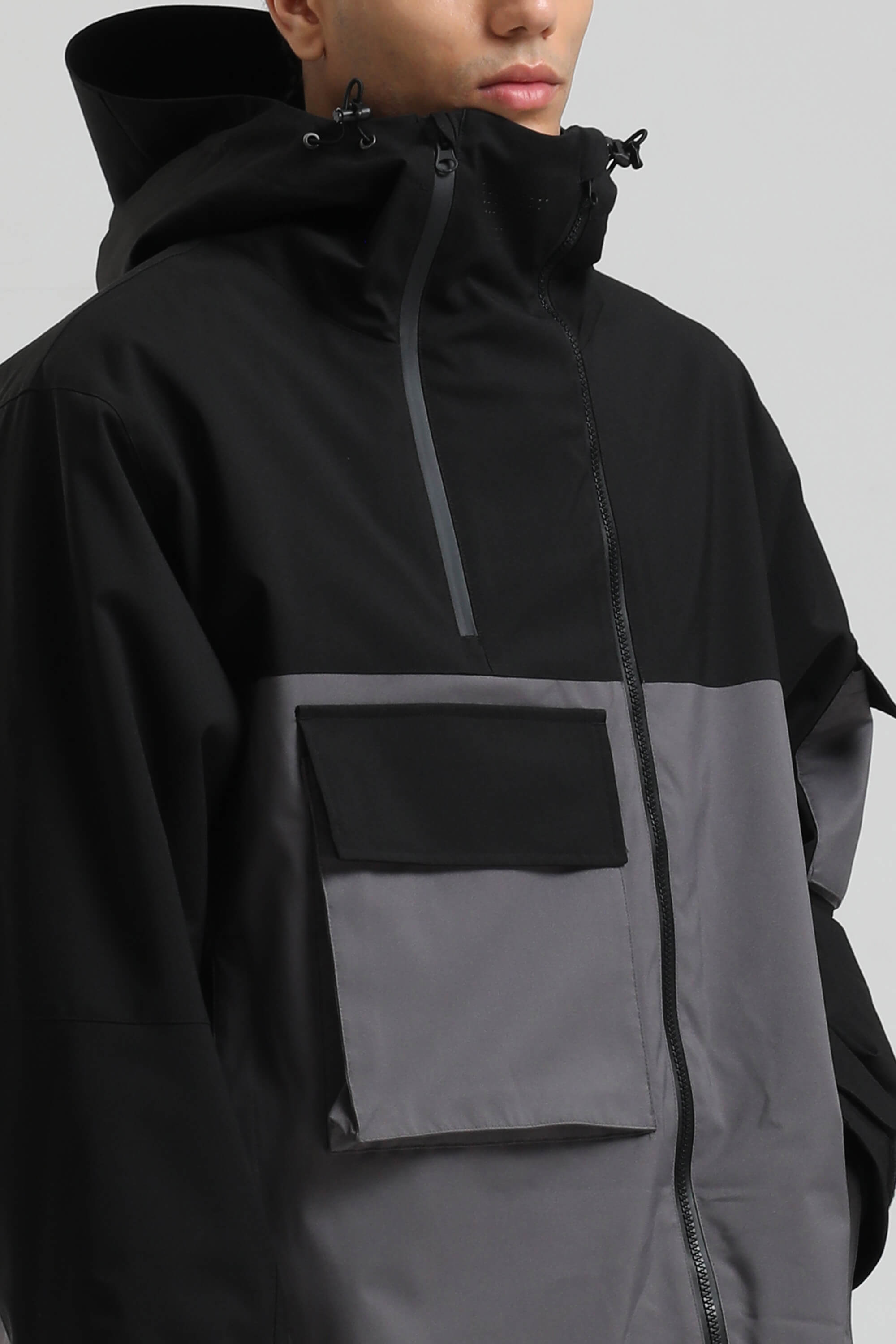 Men's Black & Grey Asym-Zip Utility Pocket Waterproof Snow Jacket