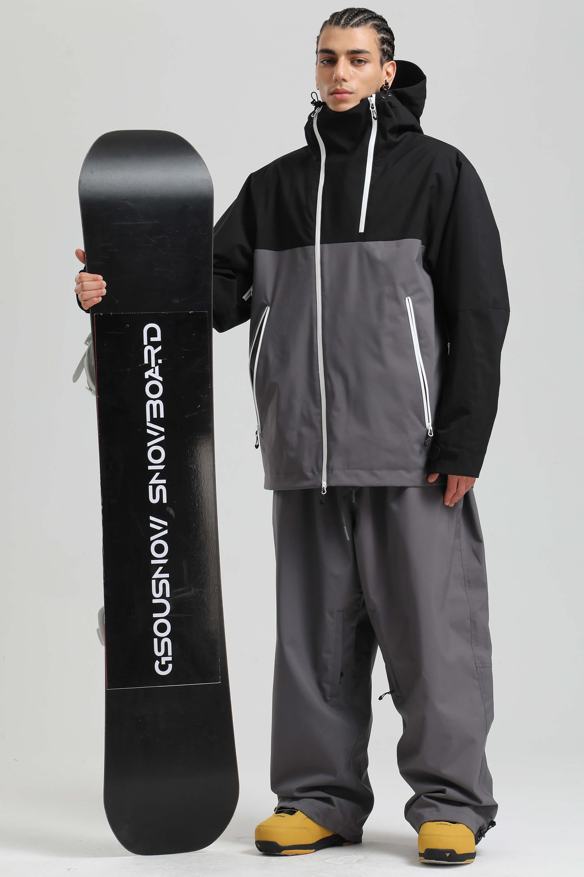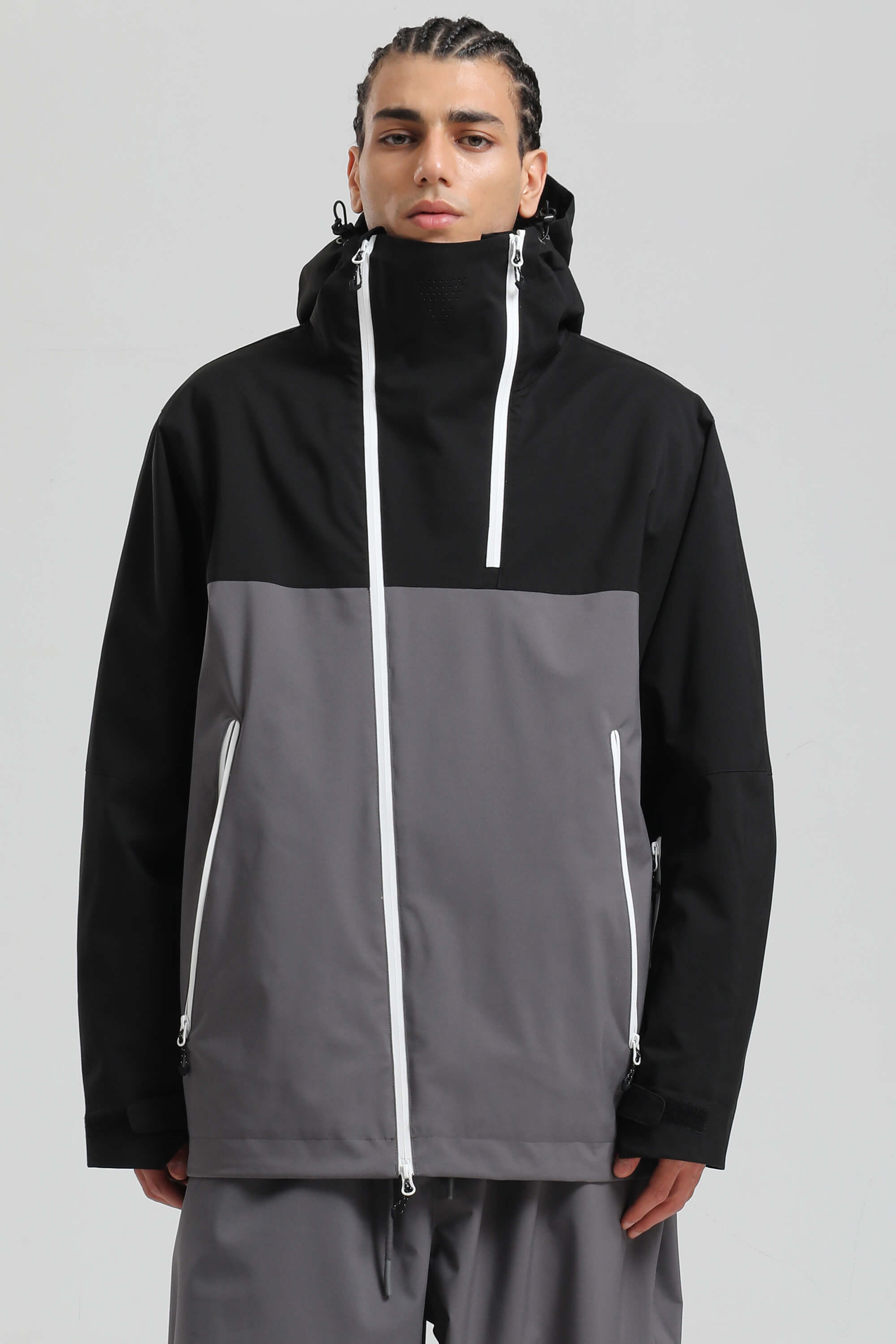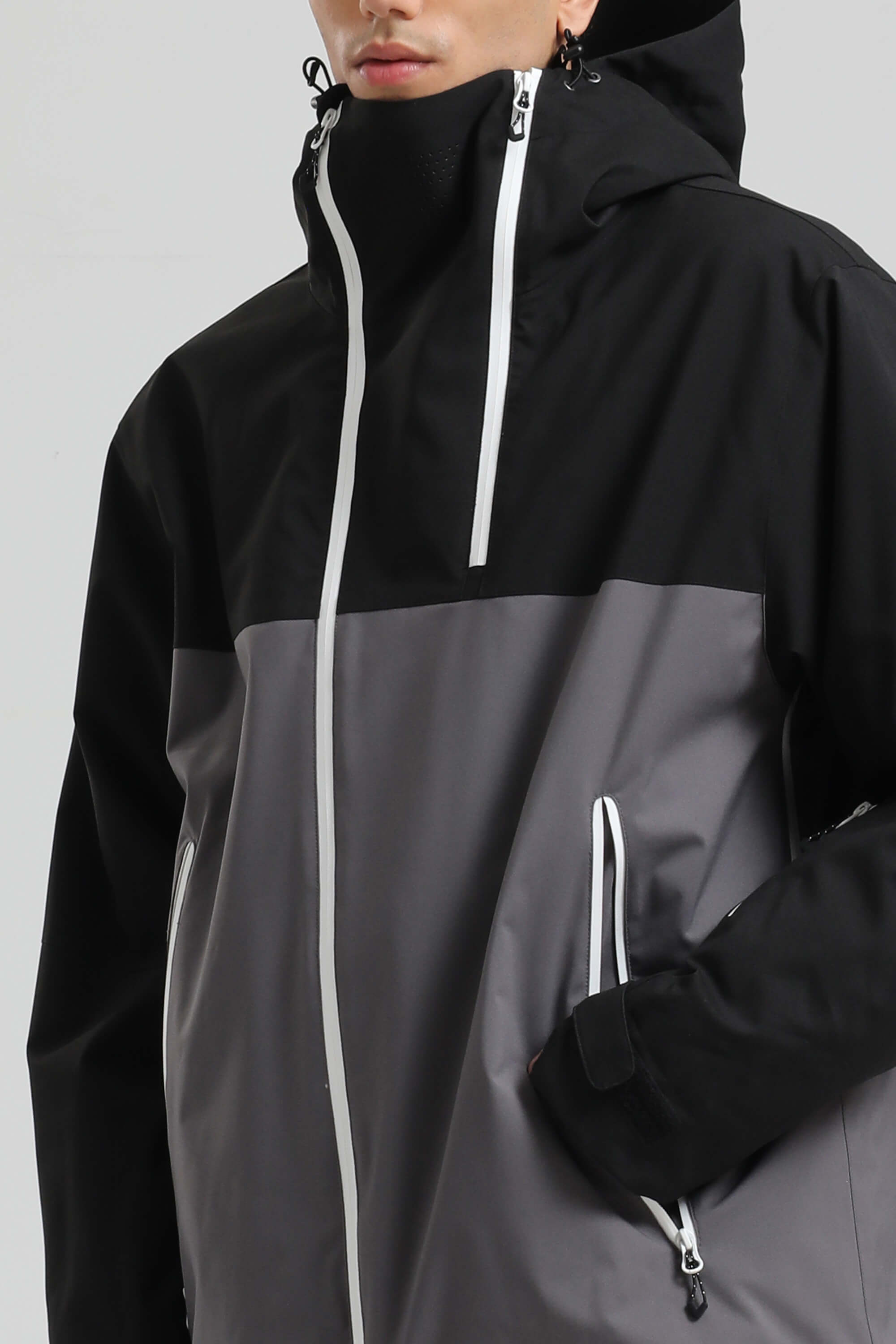 Men's Black & Grey Face Vent Asym-Zip Waterproof Insulated Snow Jacket