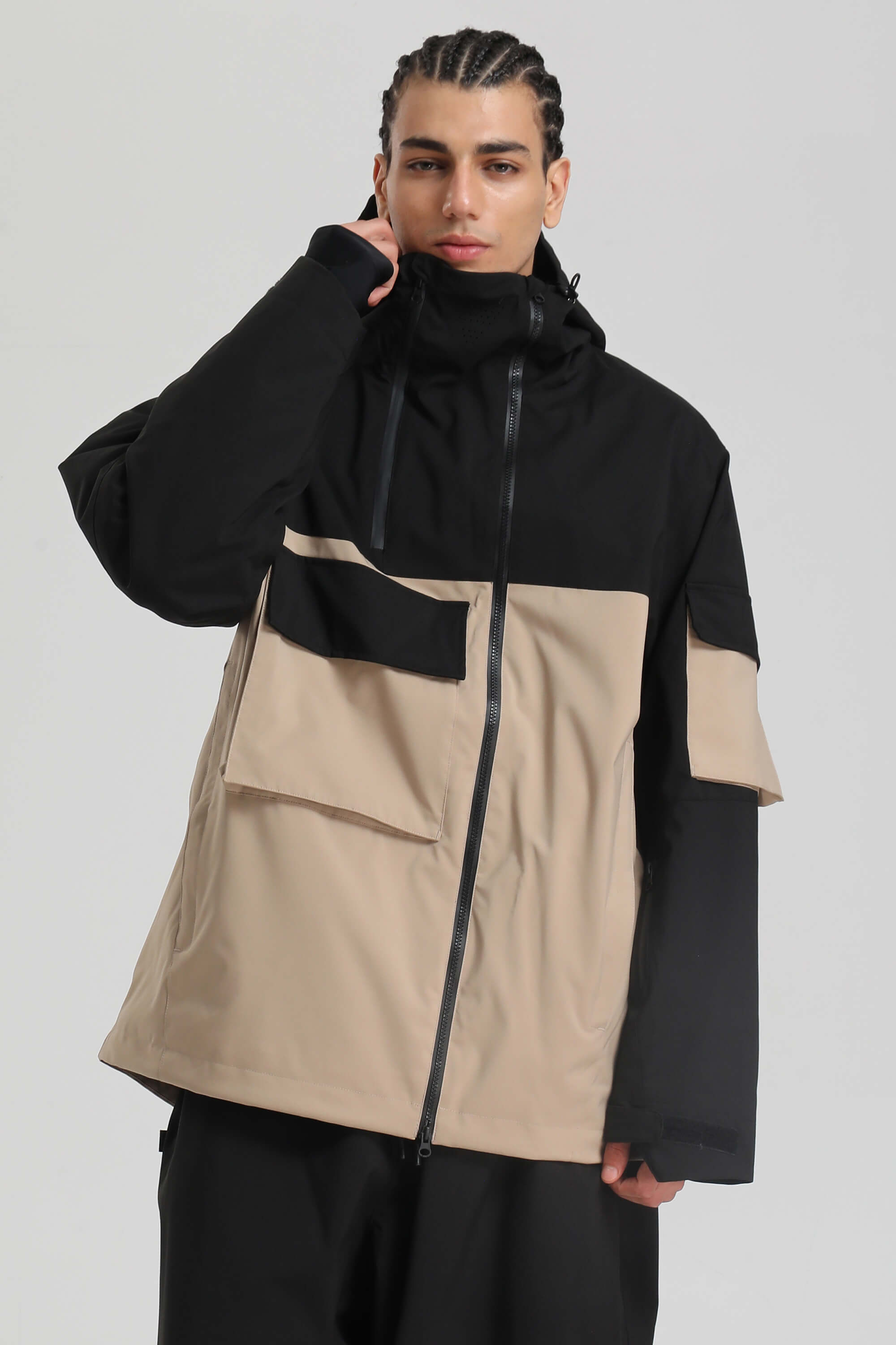 Men's Black & Khaki Asym-Zip Utility Pocket Waterproof Snow Jacket