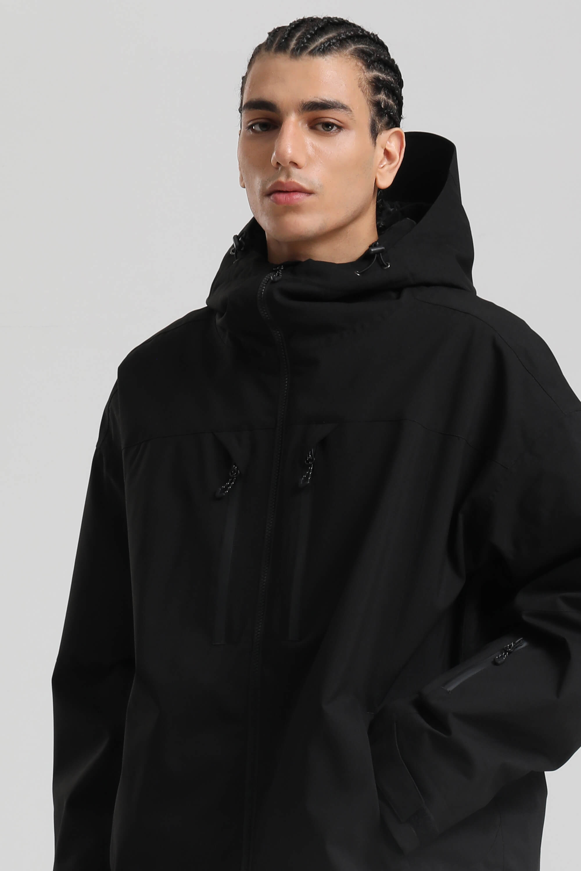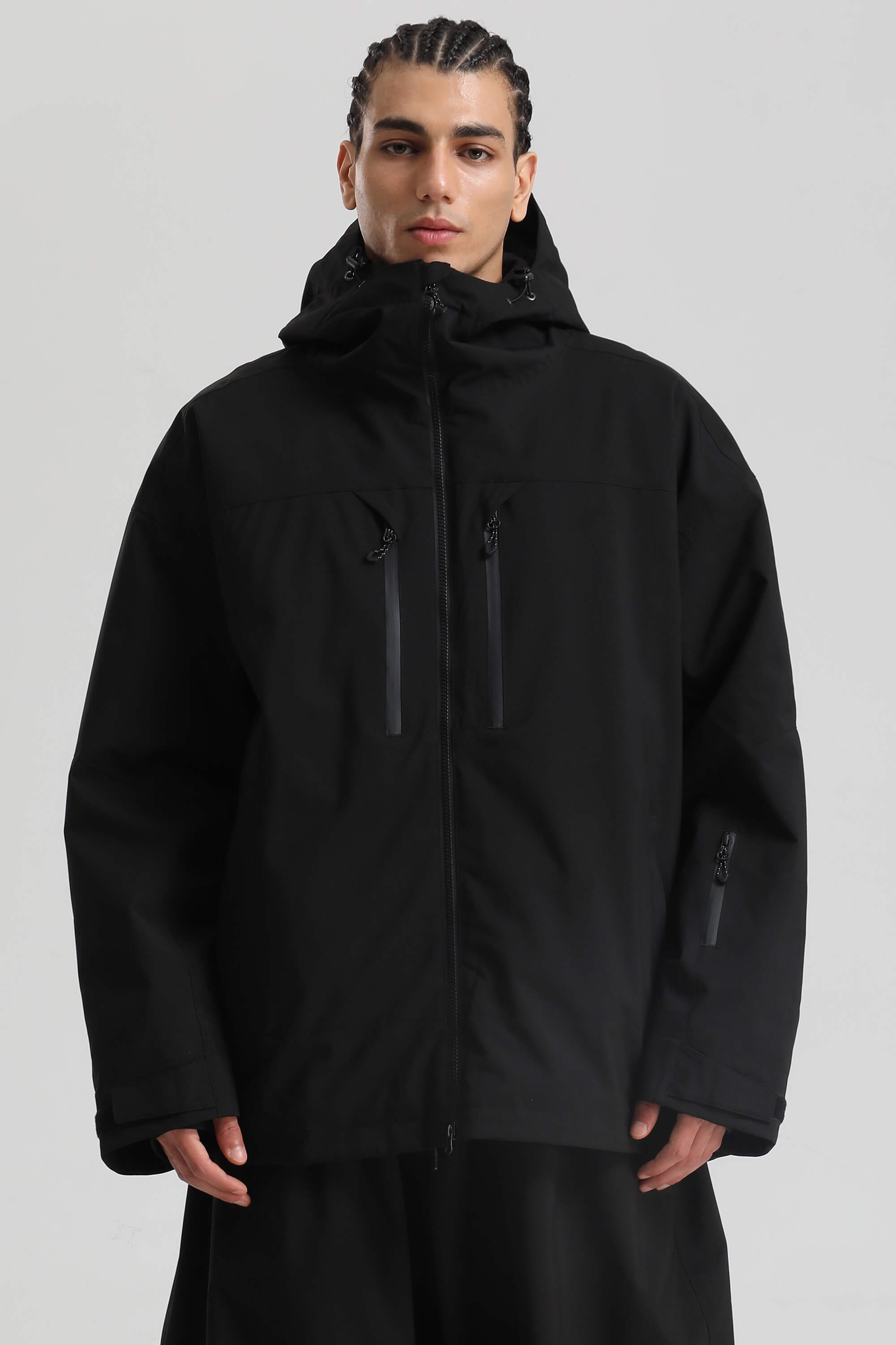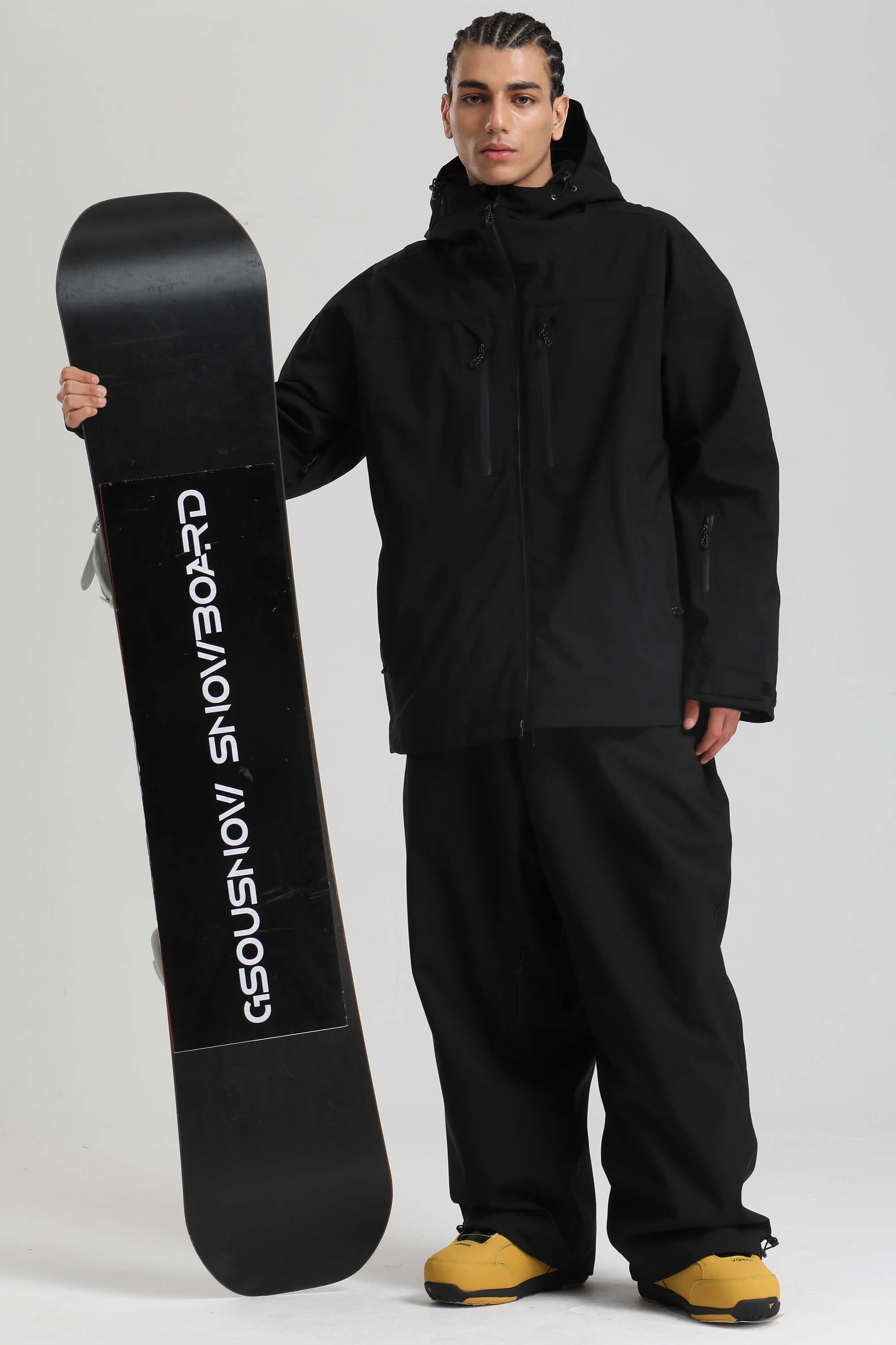 Men's Black Multi-Pocket Dual-Vent Waterproof Insulated Snow Jacket