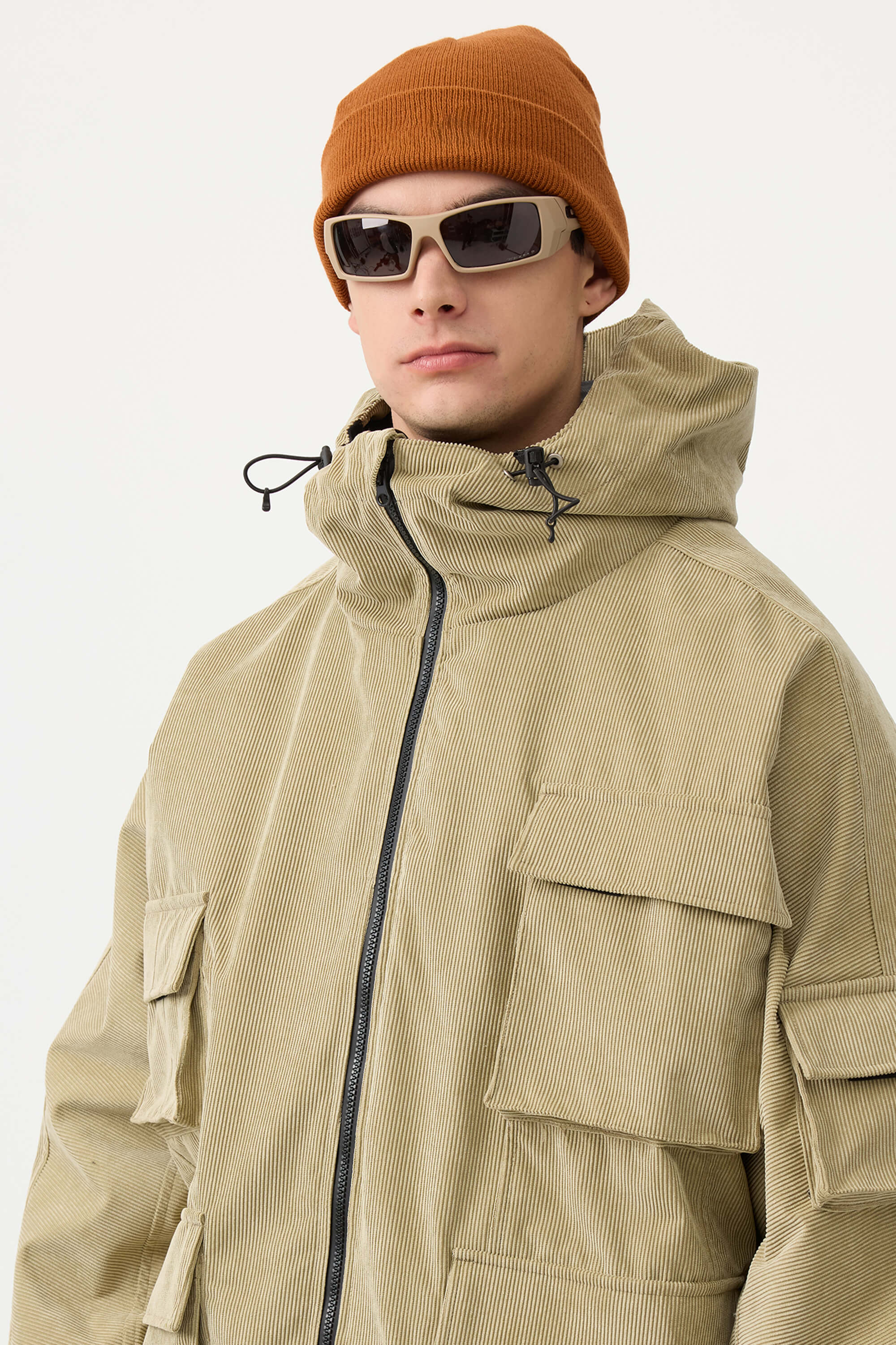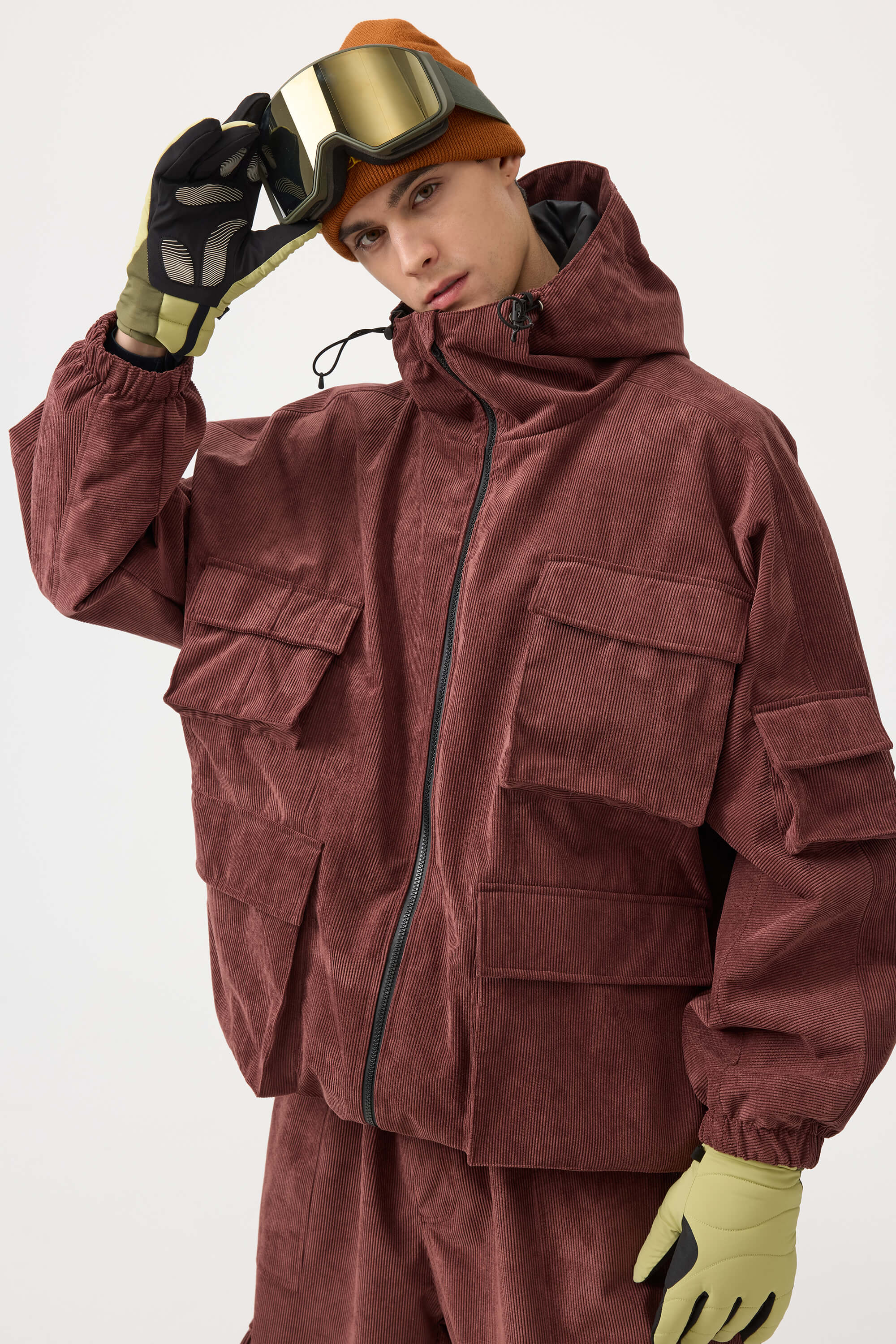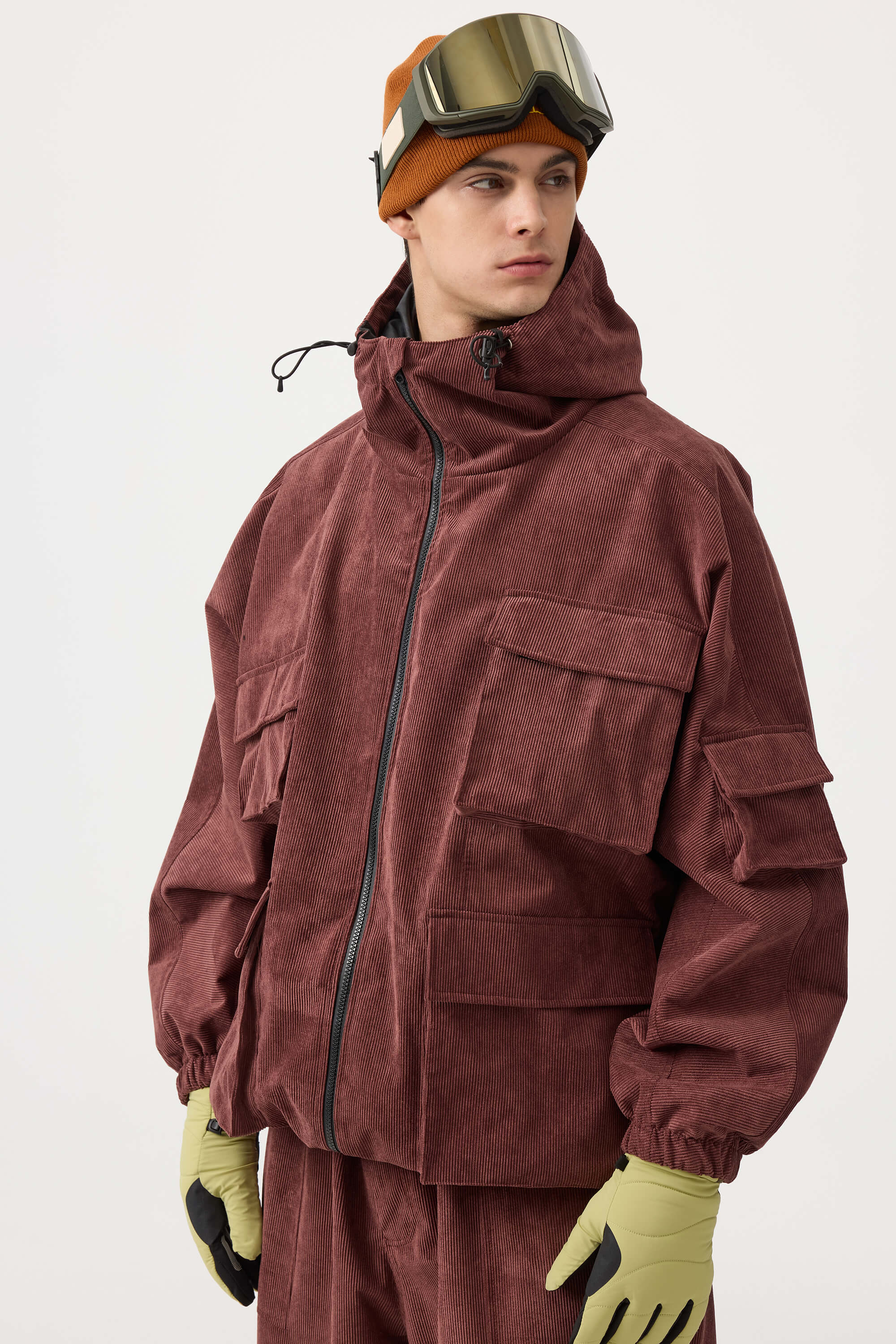 Men's Black Waterproof Corduroy Batwing Sleeve Large Pocket Snow Jacket